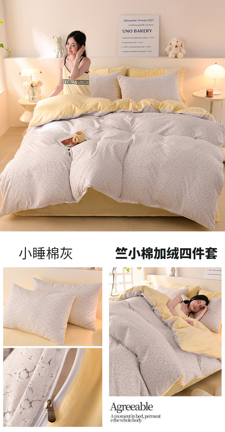 商品名称:圣楚 2024新款小竺棉加绒四件套 小睡棉灰