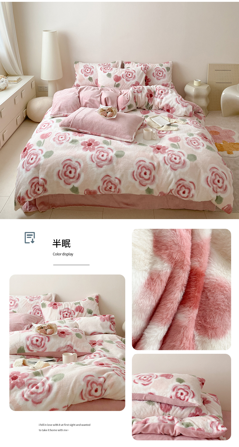 商品名称:潘朵拉 2023新款秋冬ins韩风专版印花保暖兔兔毛绒四件套 半眠
