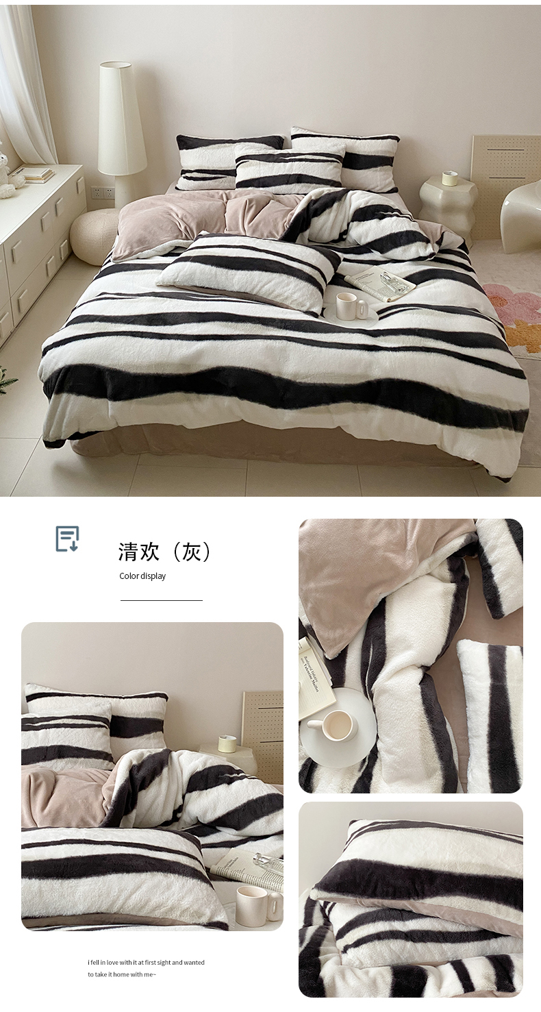 商品名称:潘朵拉 2023新款秋冬ins韩风专版印花保暖兔兔毛绒四件套 清欢(灰)