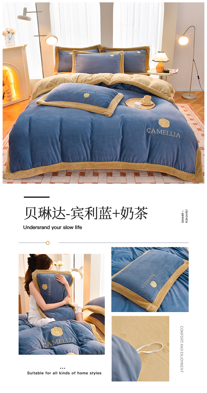 当前位置: 91家纺网 > 商品网购 > 床品套件 > 四件套 > 牛奶绒四件套 > 笙意 新款加厚牛奶绒刺绣四件套-贝琳达系列贝琳达-宾利蓝+奶茶