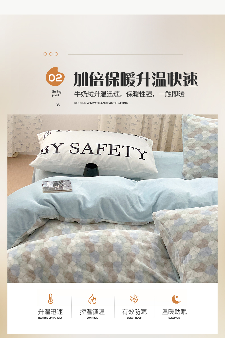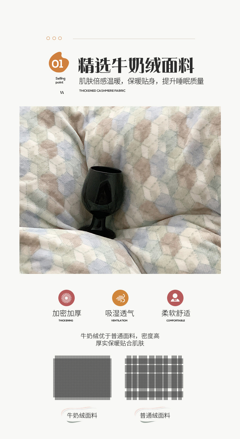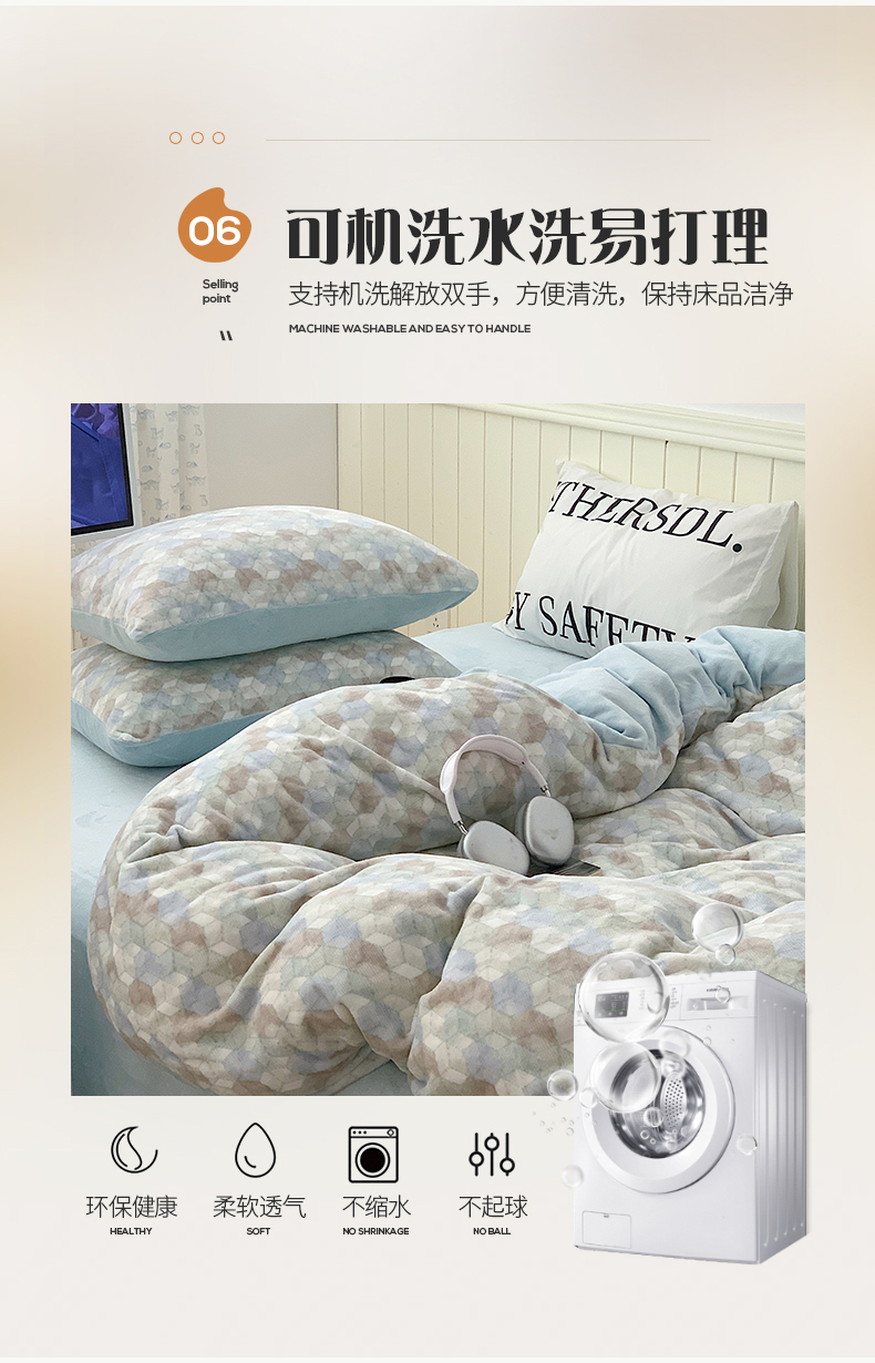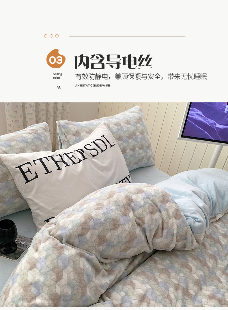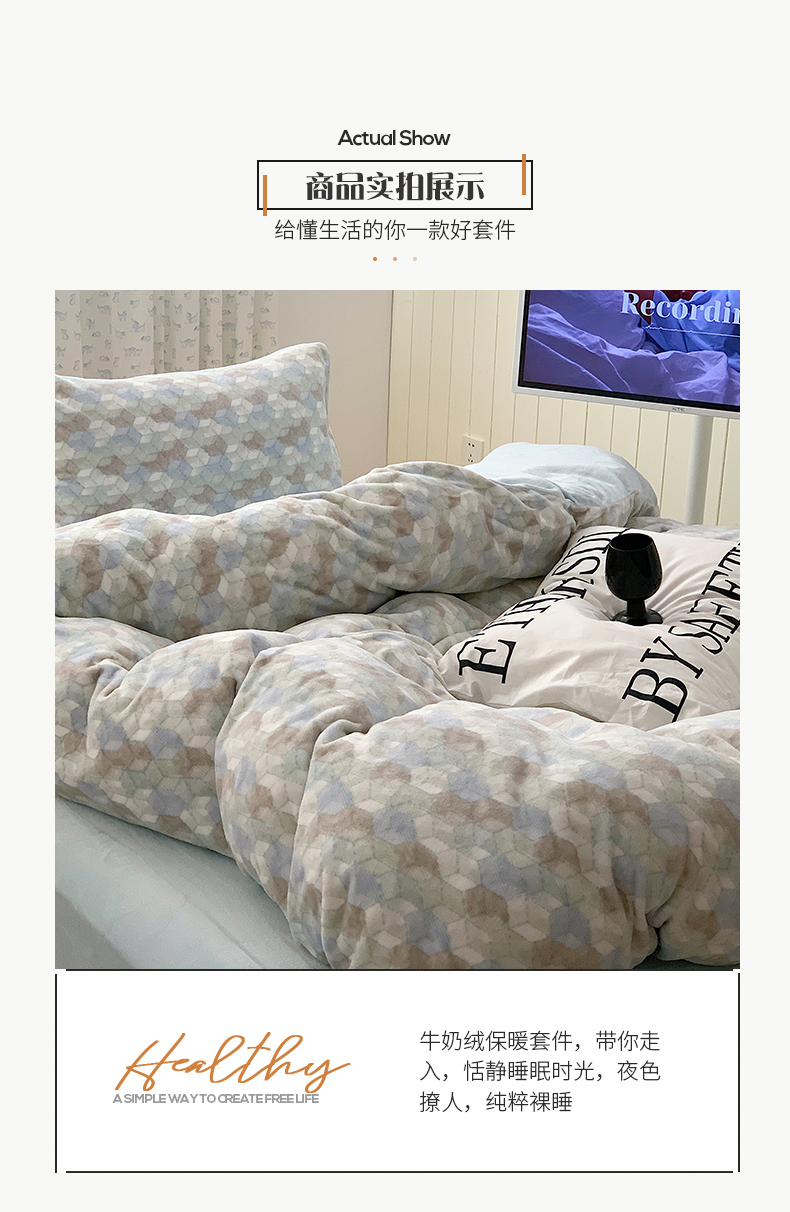 商品名称:桃子家居 2023新款ins简约时尚奶油格子北欧极简加厚牛奶绒四件套 卡特