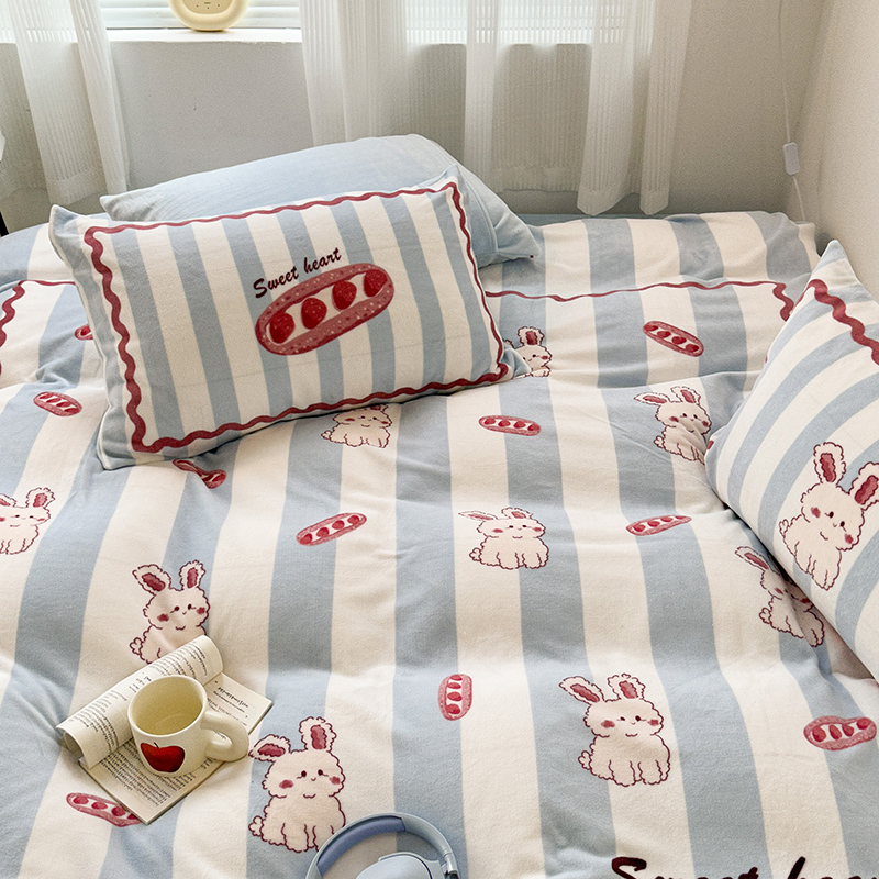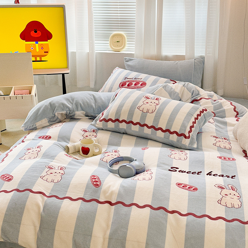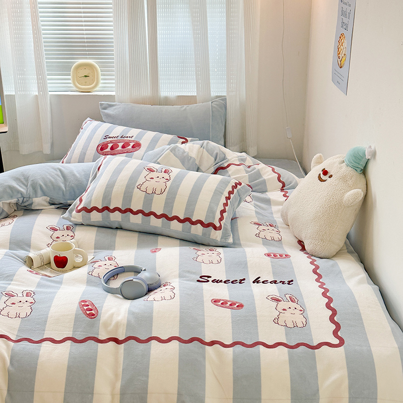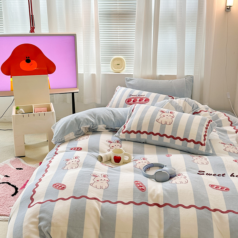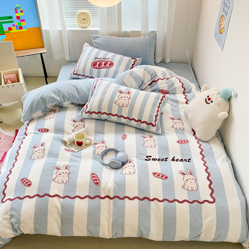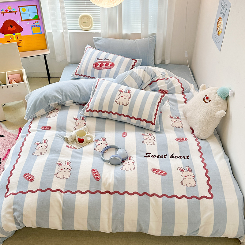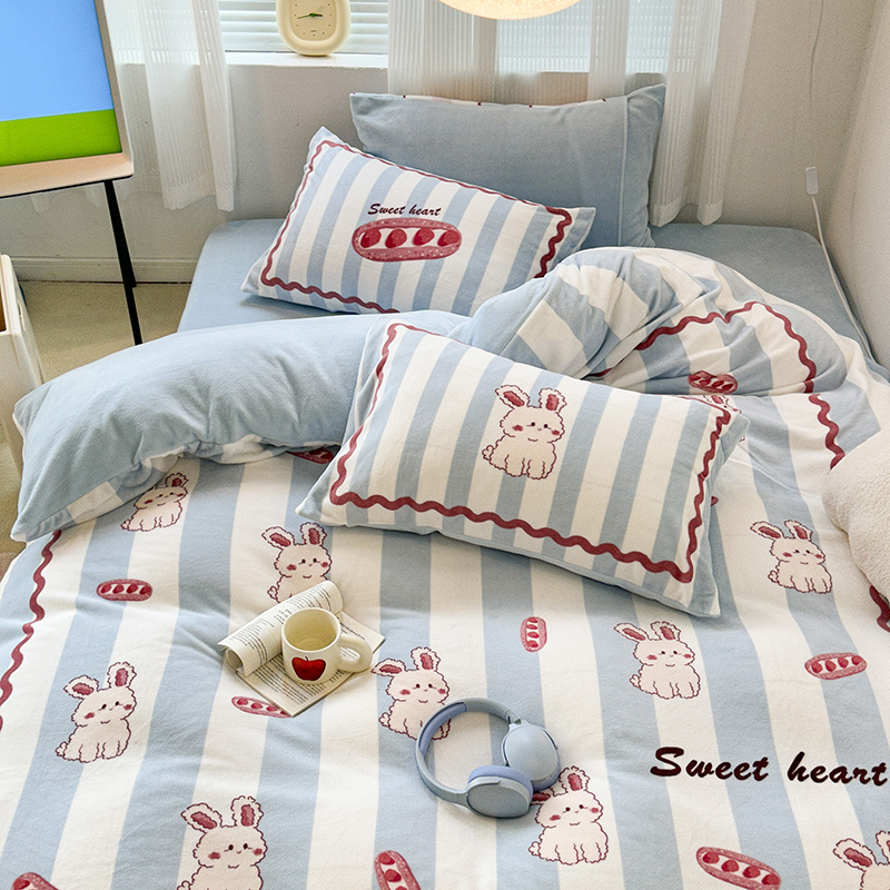 (总)昔可家纺 2024新款印花牛奶绒四件套系列-洛丽塔风,萝莉小兔,小熊烘焙屋,小熊玩偶屋