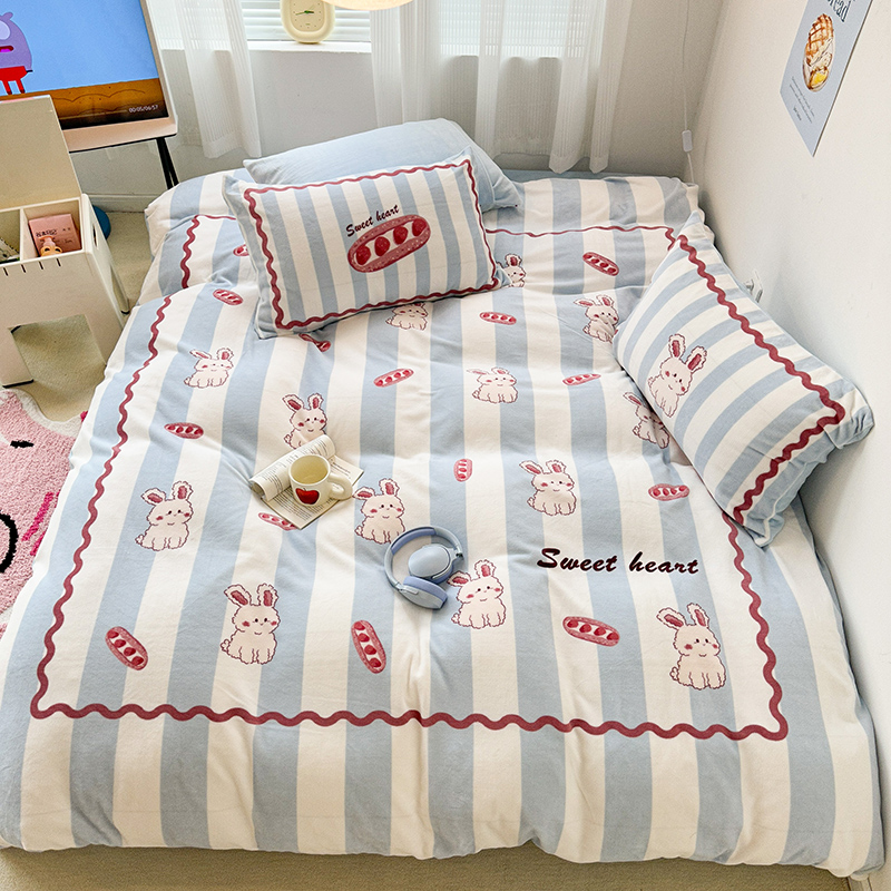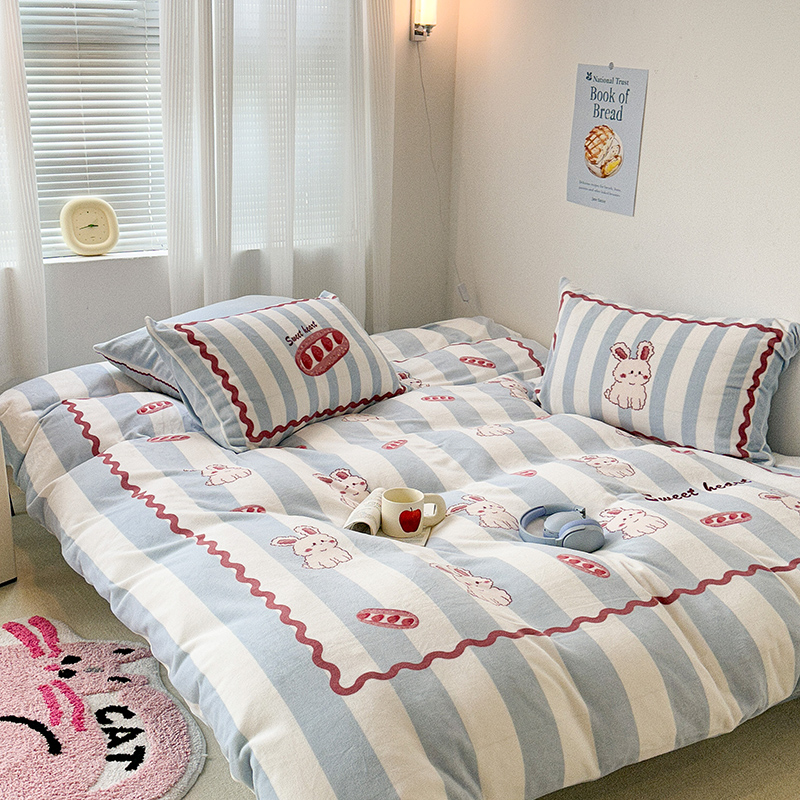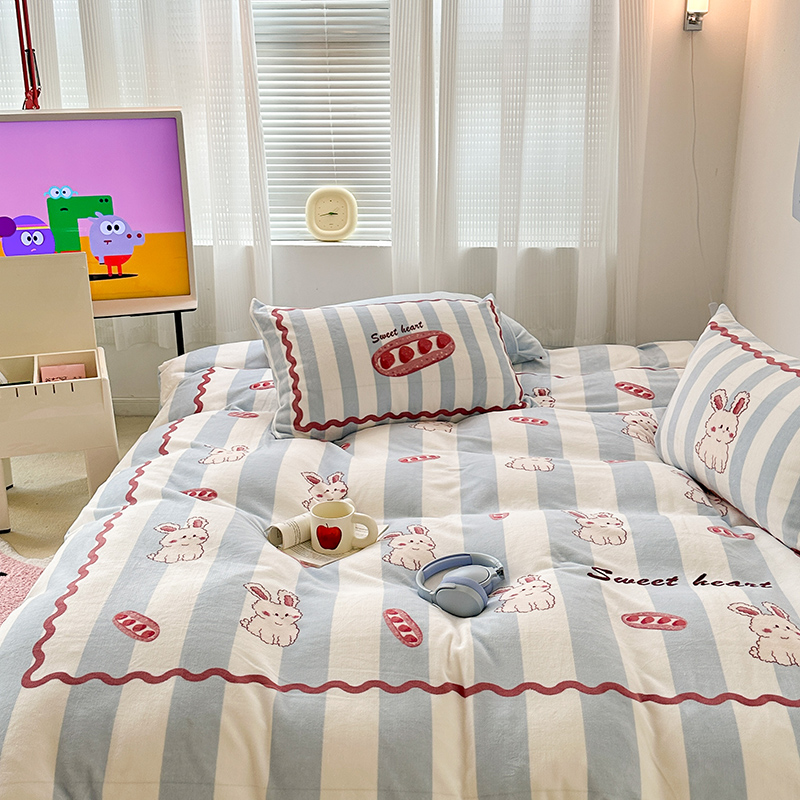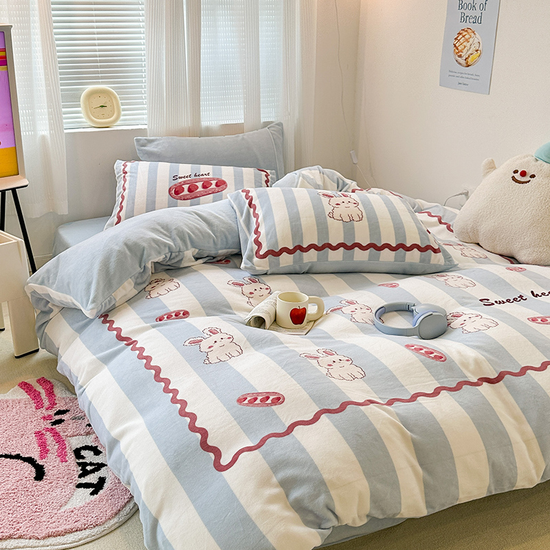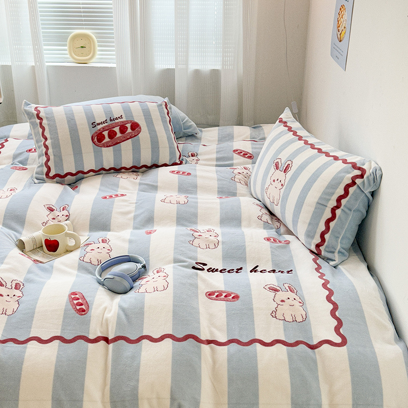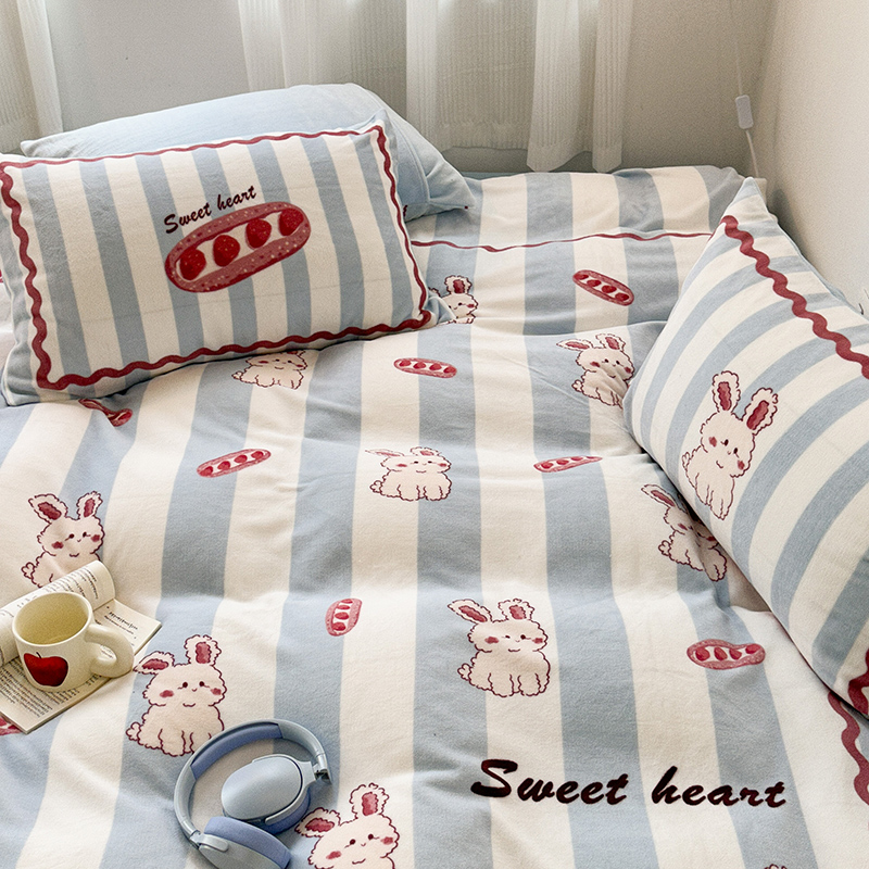 (总)昔可家纺 2024新款印花牛奶绒四件套系列-洛丽塔风,萝莉小兔,小熊烘焙屋,小熊玩偶屋