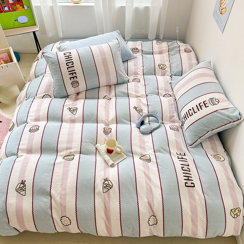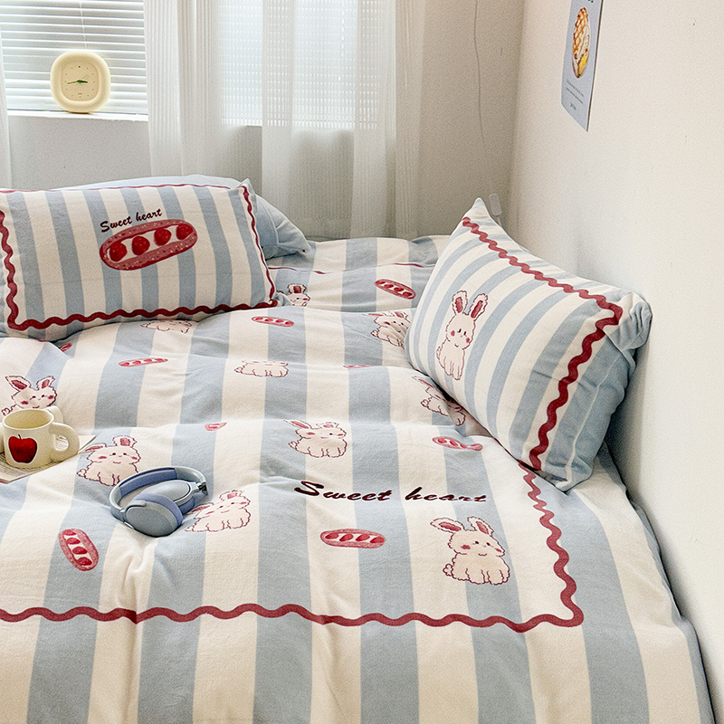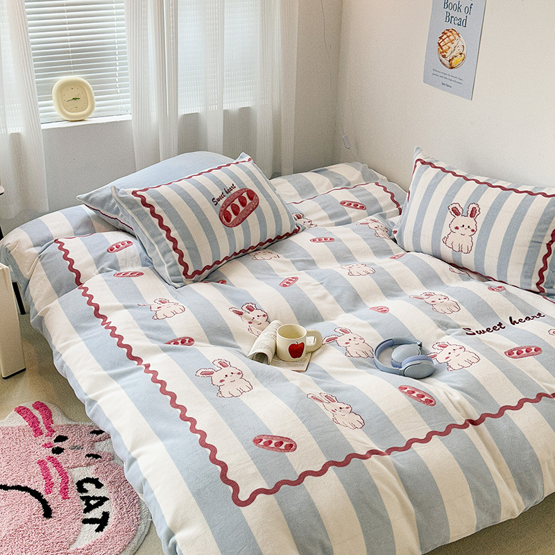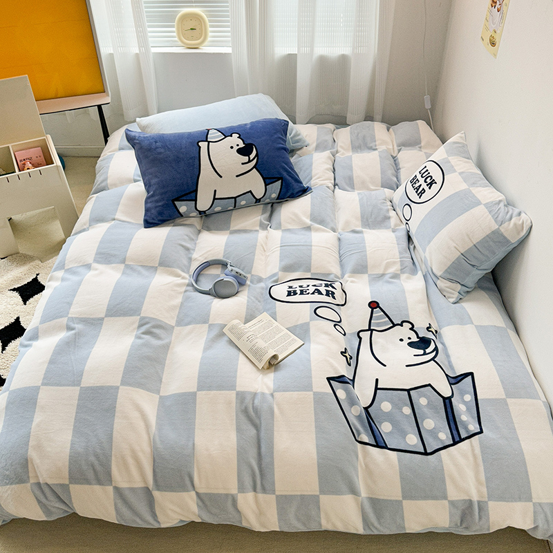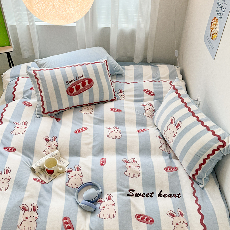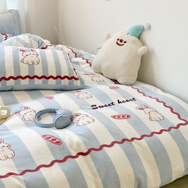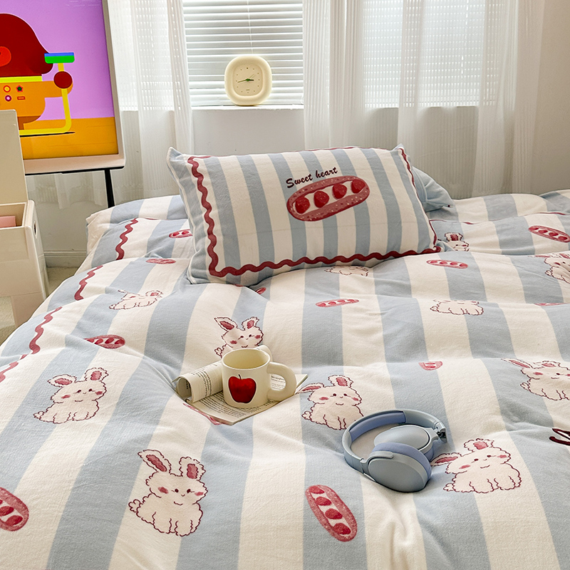 (总)昔可家纺 2024新款印花牛奶绒四件套系列-洛丽塔风,萝莉小兔,小熊烘焙屋,小熊玩偶屋