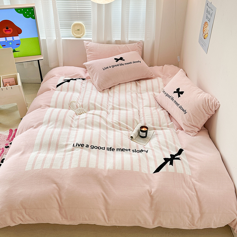 (总)昔可家纺 2024新款印花牛奶绒四件套系列-ins少女系列,芭蕾蛋糕,芭蕾美学,粉格蝴蝶结,黑粉芭蕾蝴蝶结,蓝格蝴蝶结,樱桃奶油蛋糕