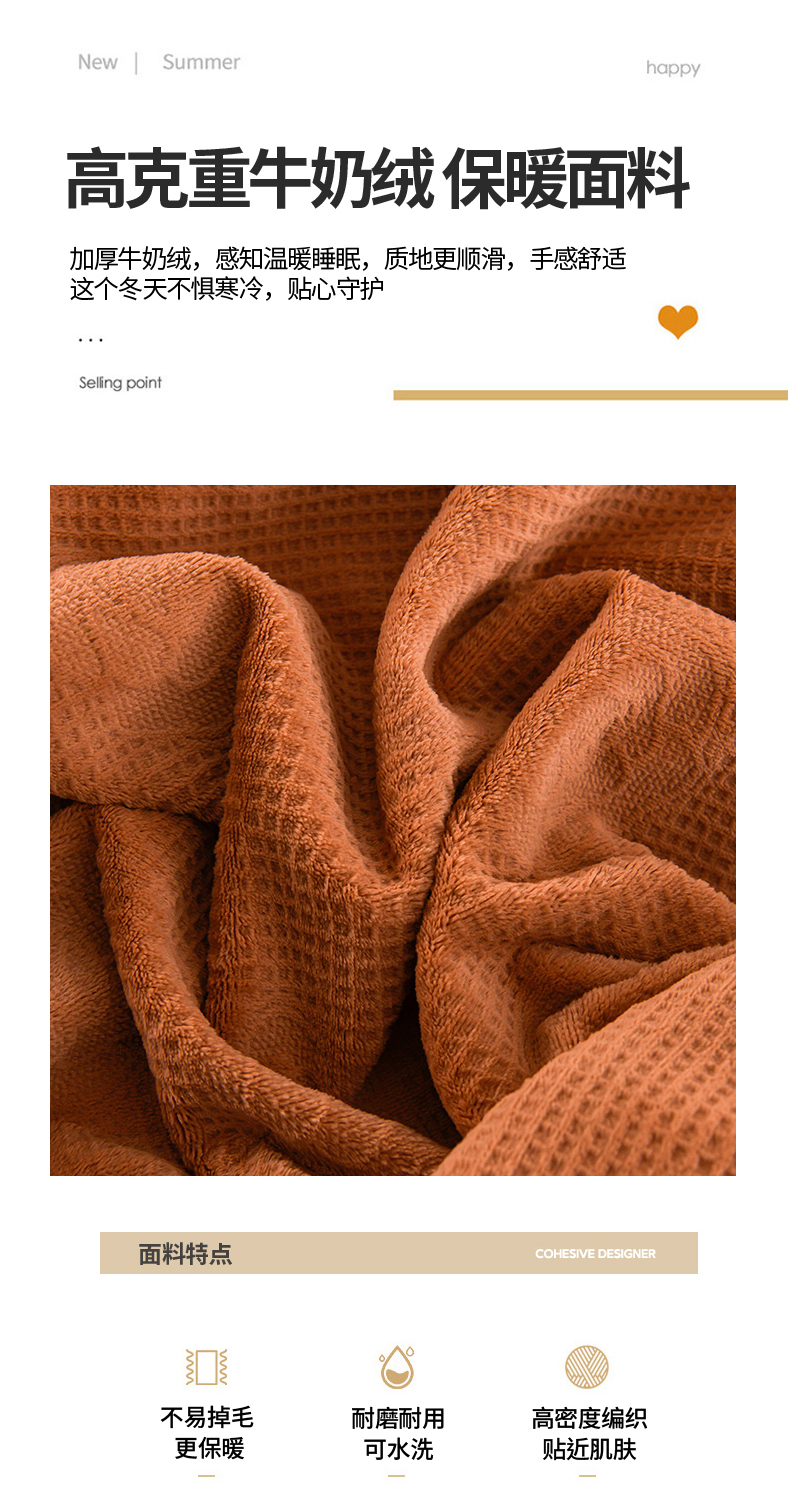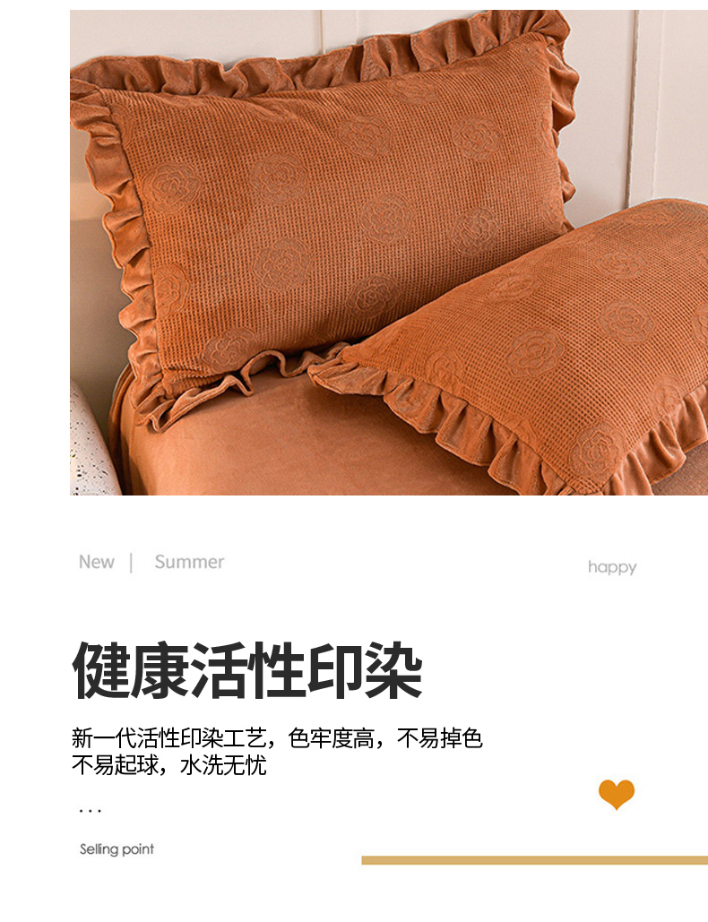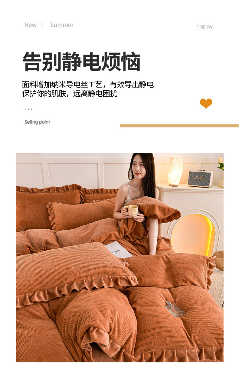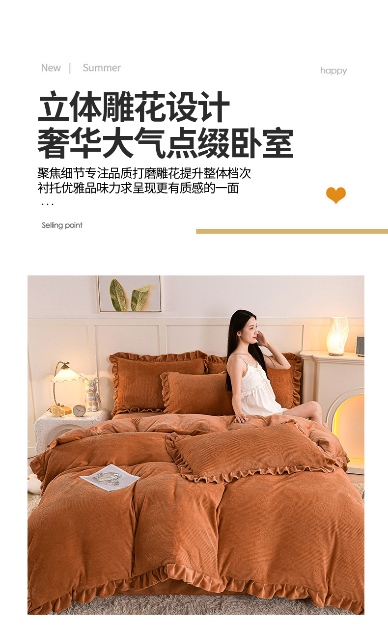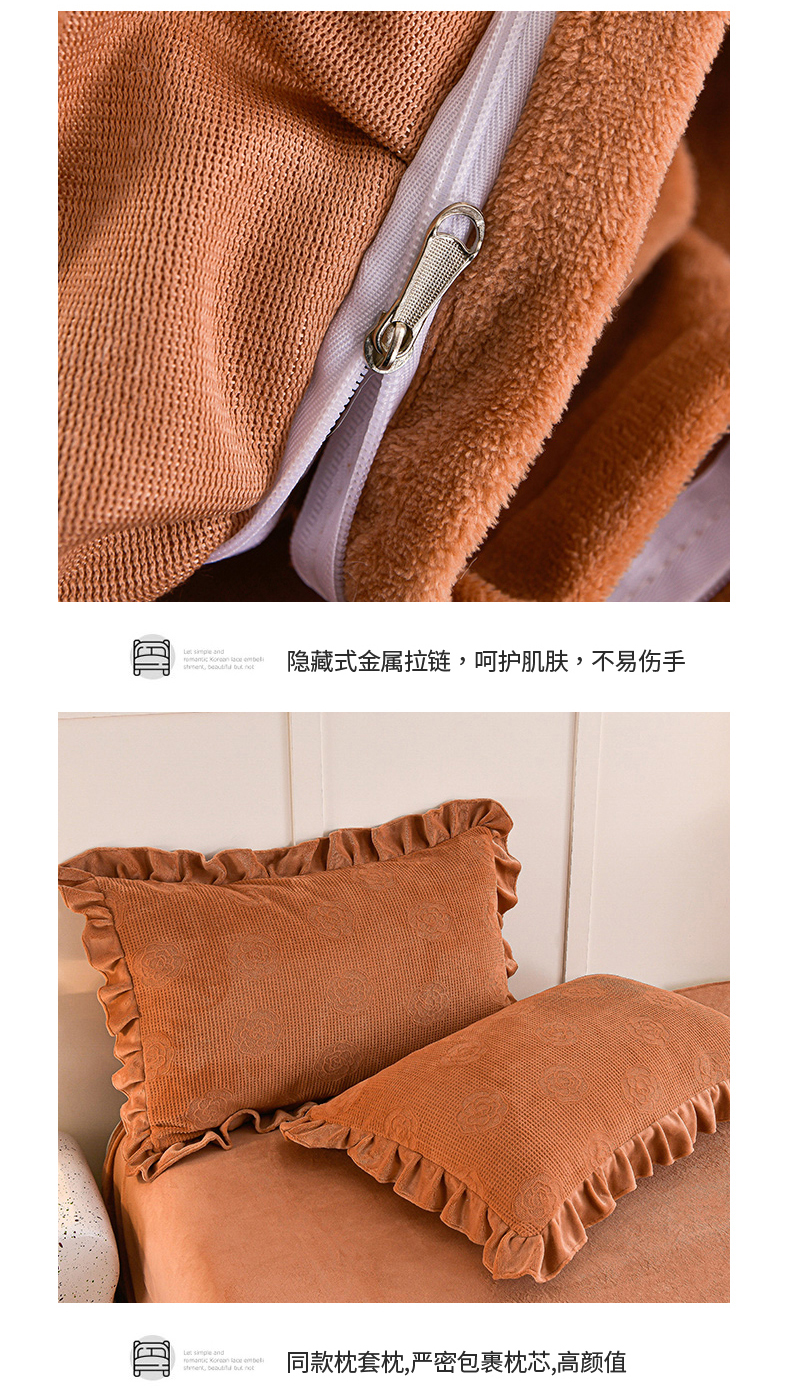 商品名称:苏迪 2025新款牛奶绒四件套-山茶花 山茶花--桔色