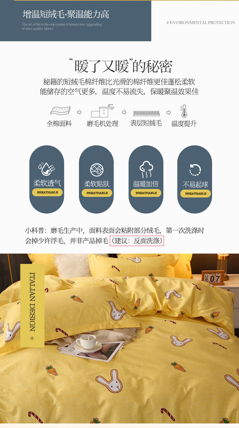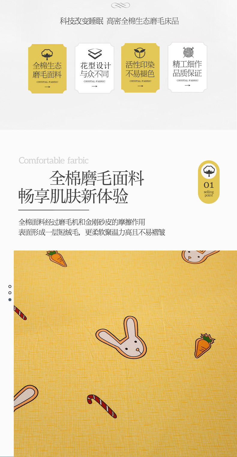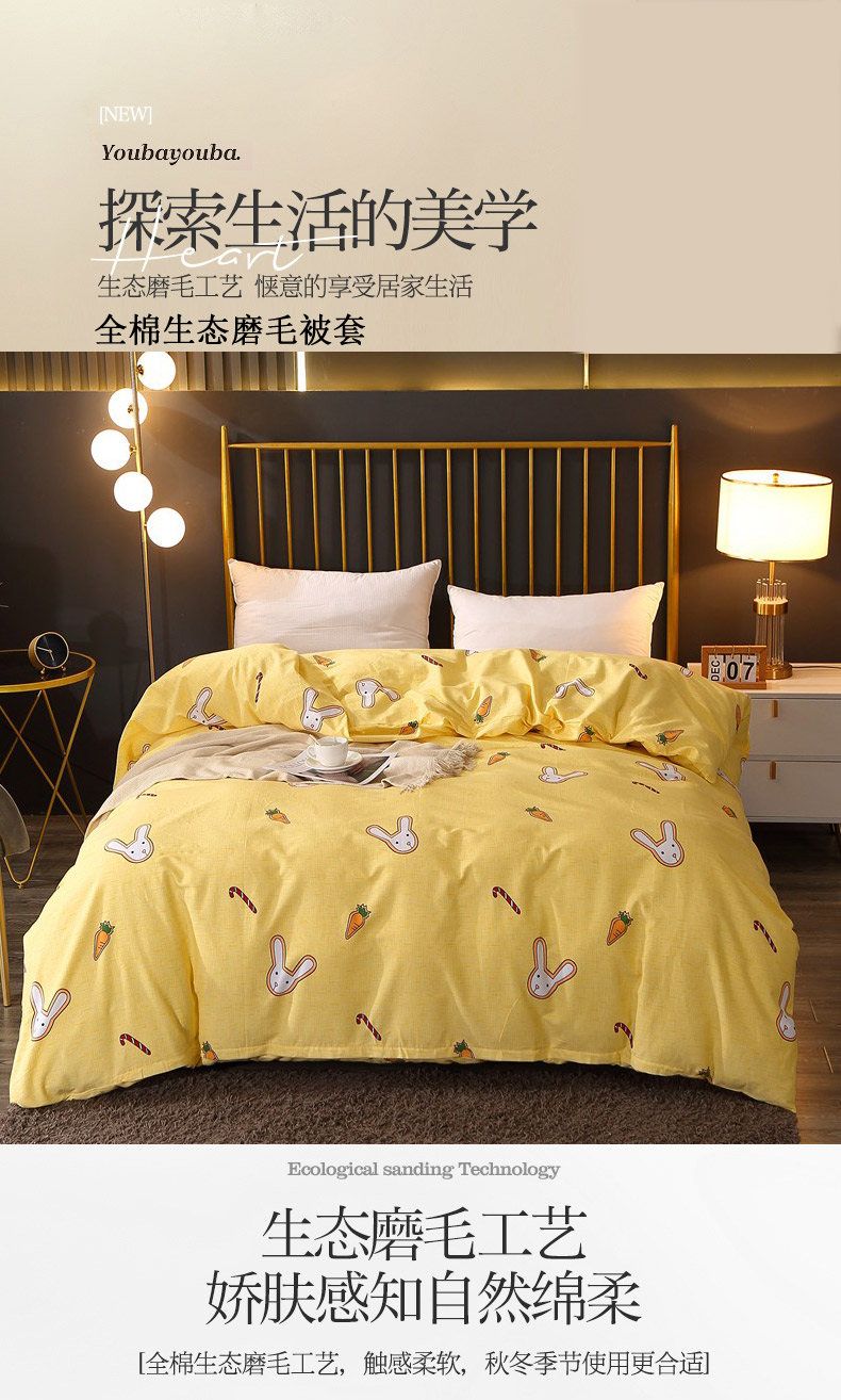 商品名称:晶缦家纺 2023新款风尚系全棉生态磨毛多规格单被套 贝利兔