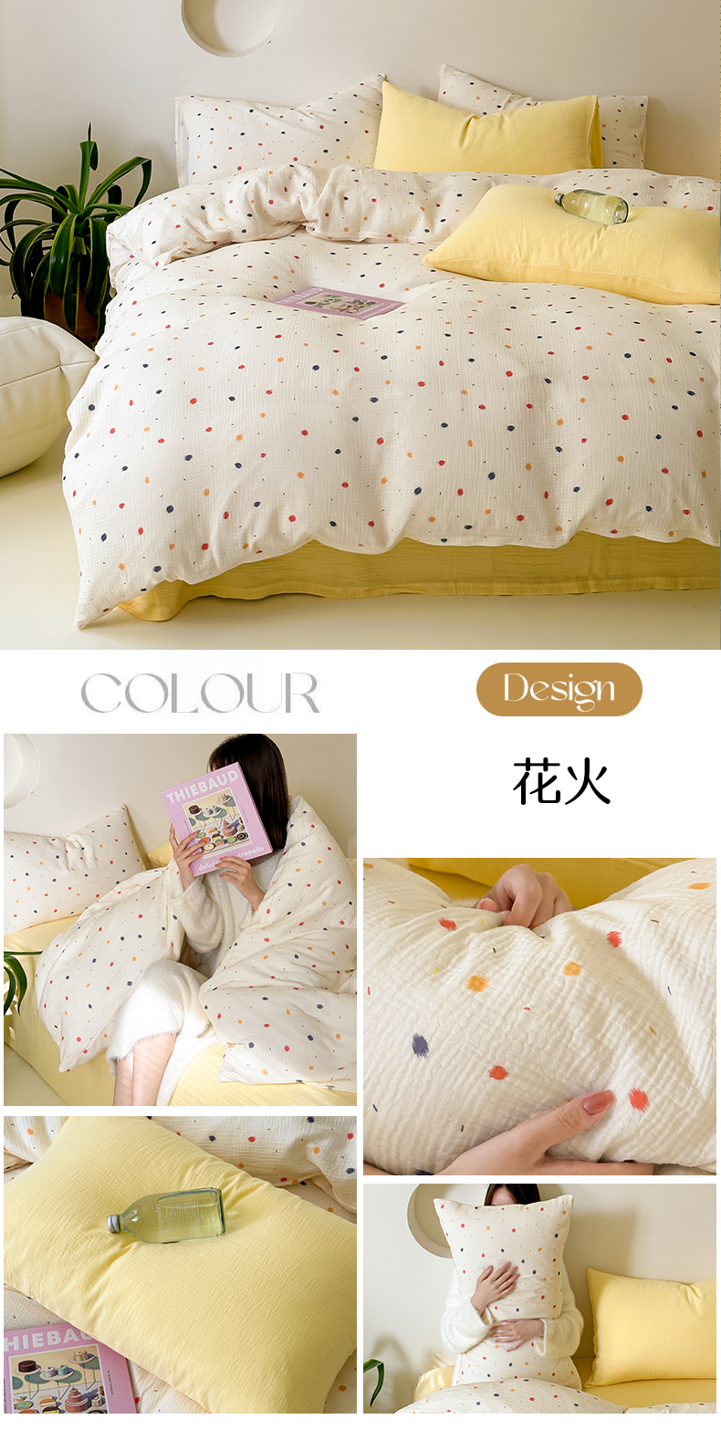 当前位置: 91家纺网 > 商品网购 > 床品套件 > 四件套 > 全棉普通四件套 > 山舍家居 2023新款全棉双层纱印花四件套 花火