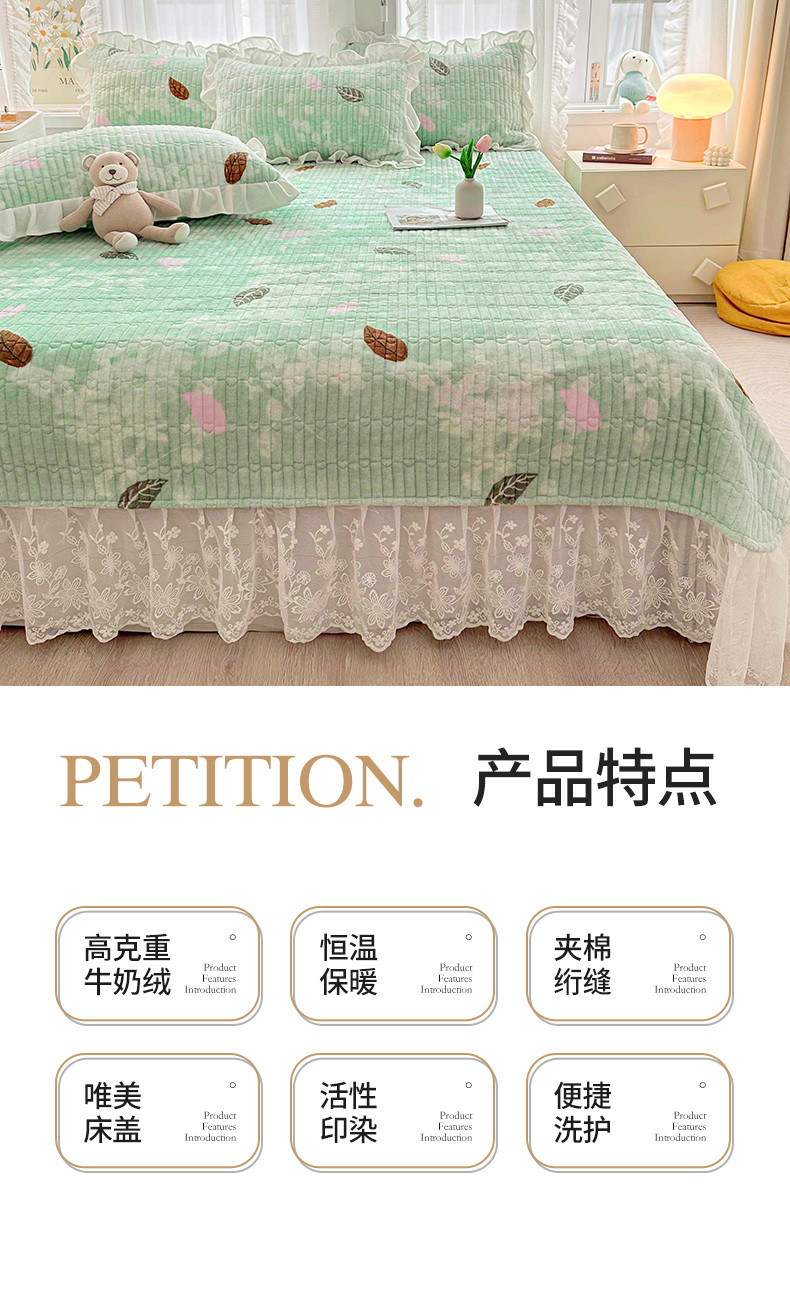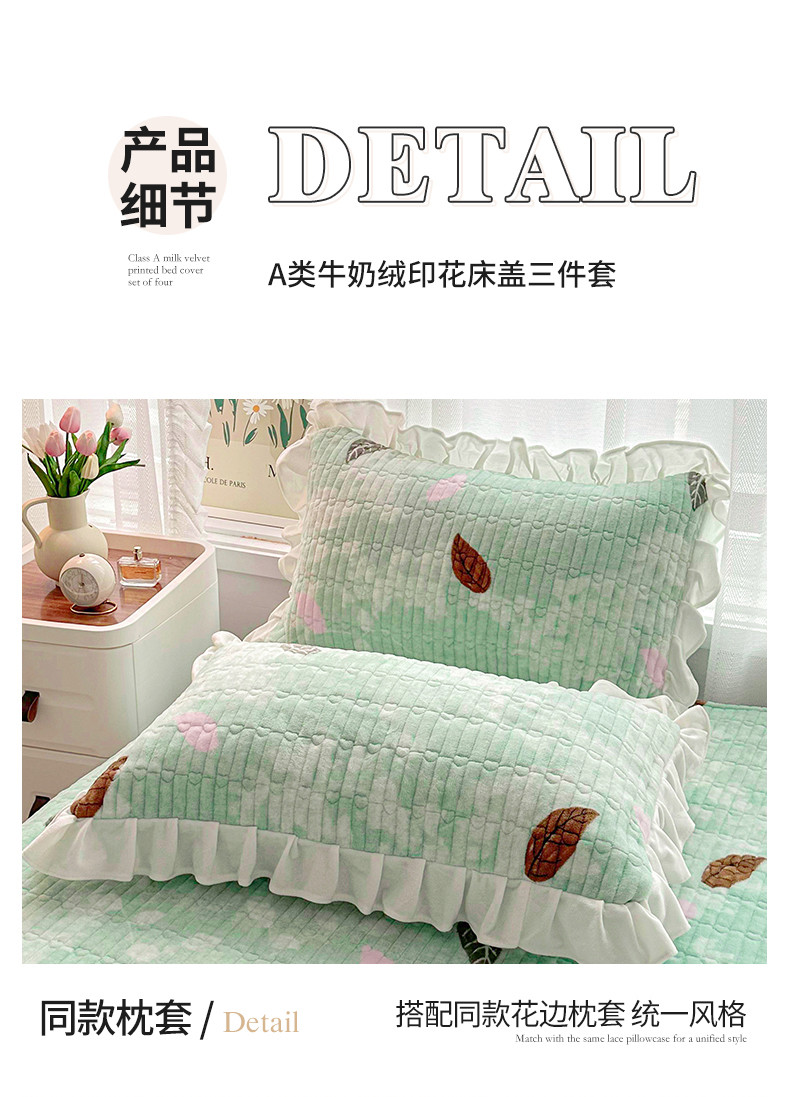 商品名称:宜凡家纺 2023新款牛奶绒印花夹棉被套床盖三件套 潇潇叶