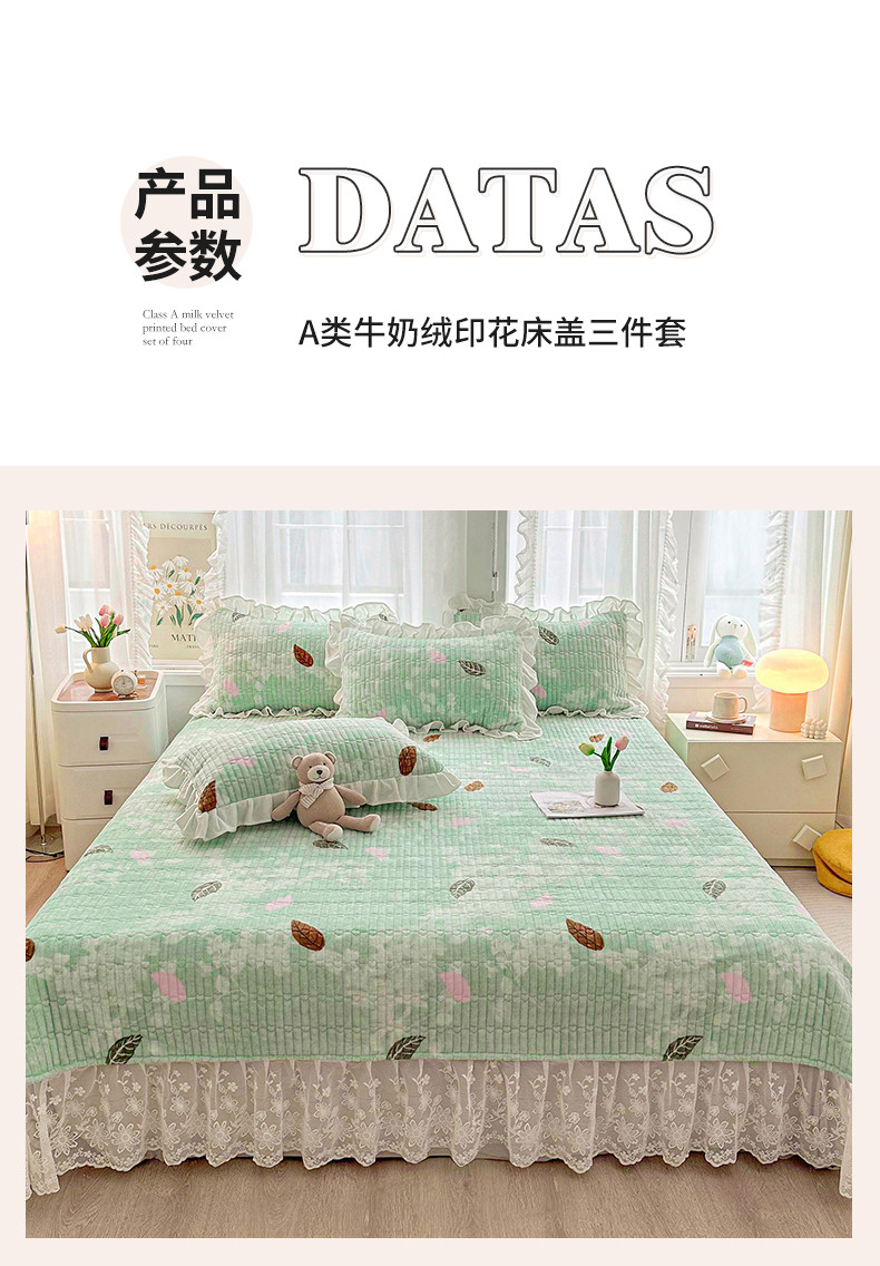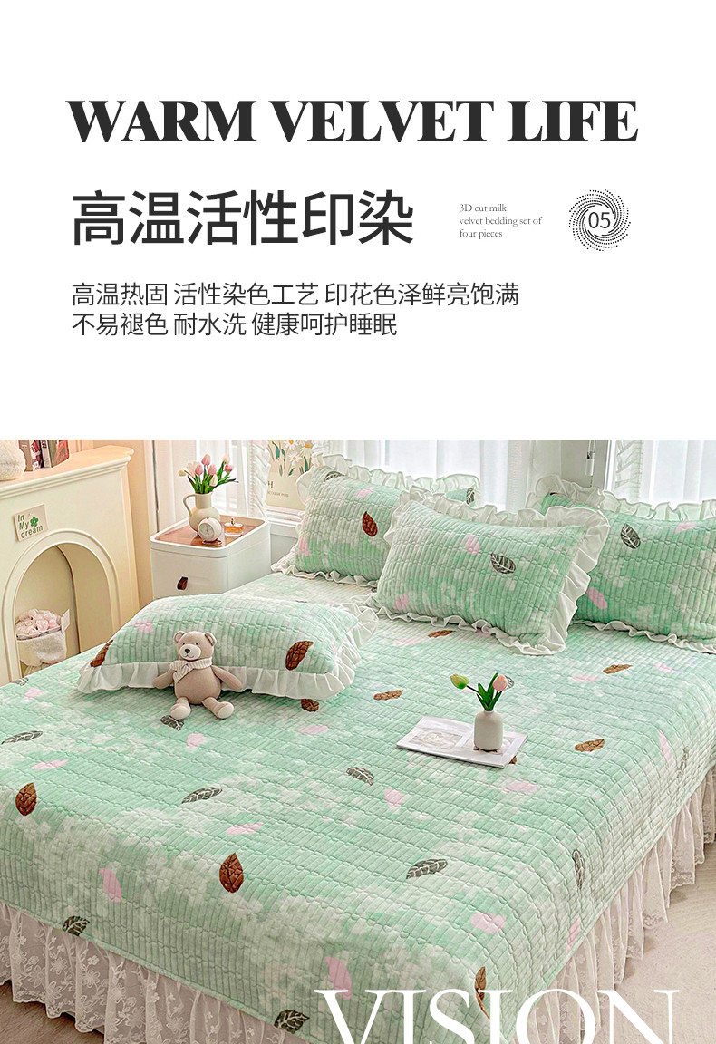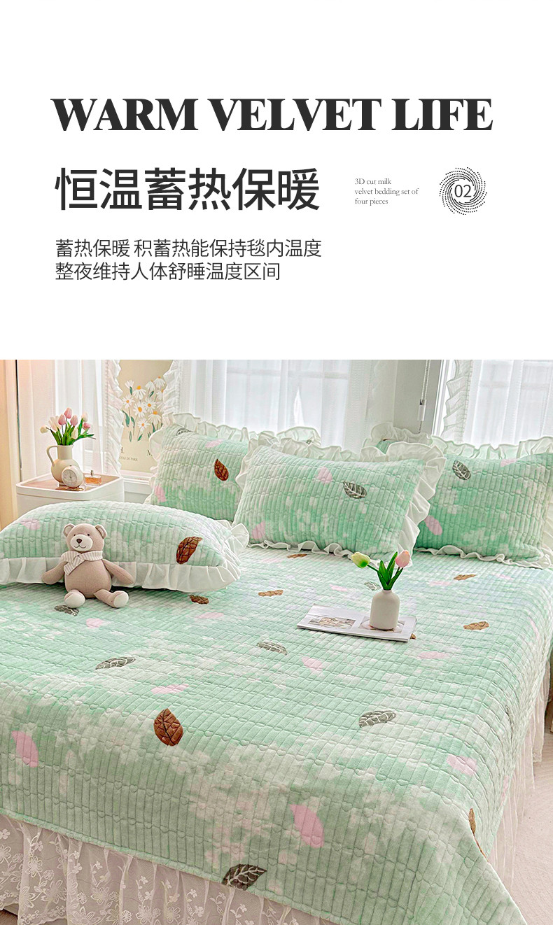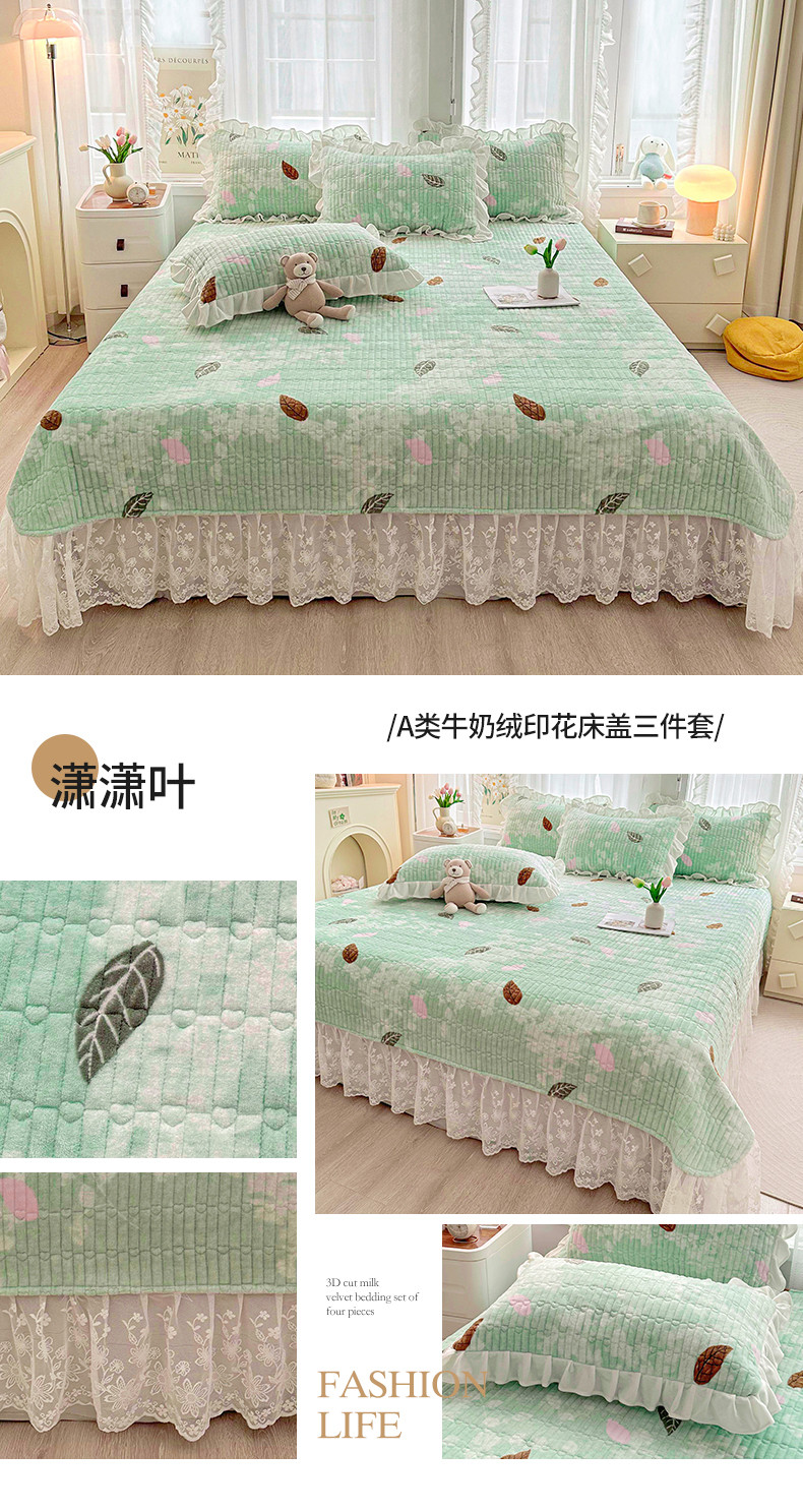 宜凡家纺 2023新款牛奶绒印花夹棉被套床盖三件套 潇潇叶