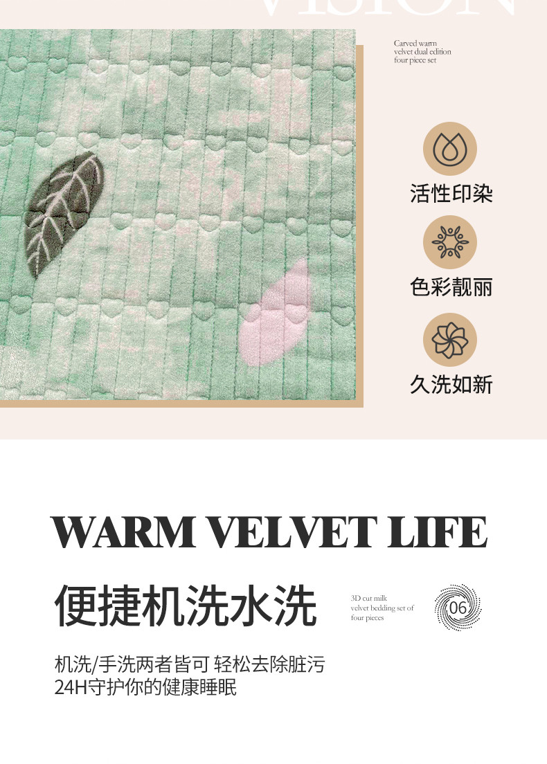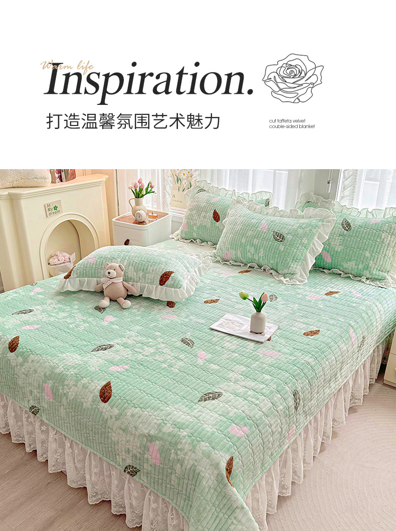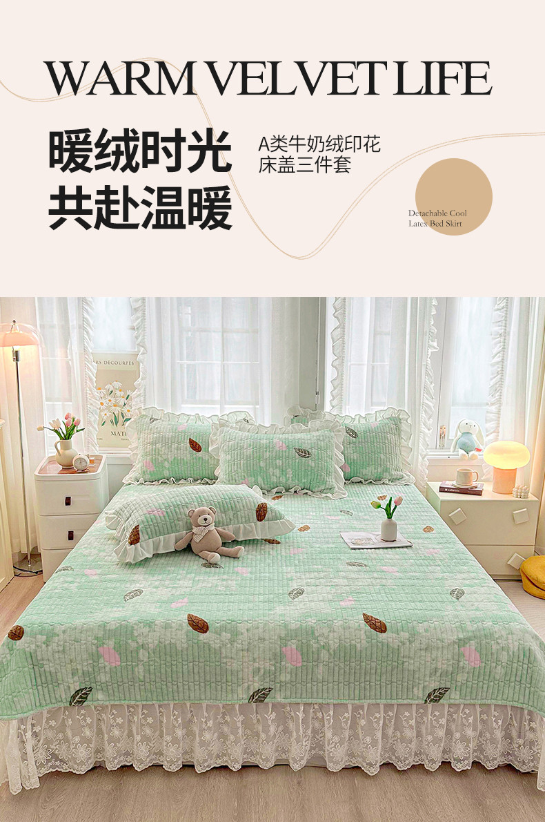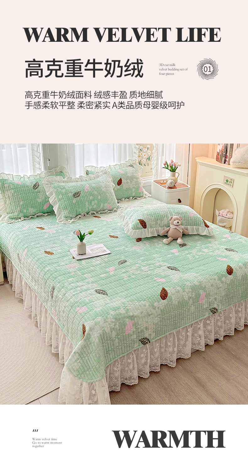 宜凡家纺 2023新款牛奶绒印花夹棉被套床盖三件套 潇潇叶