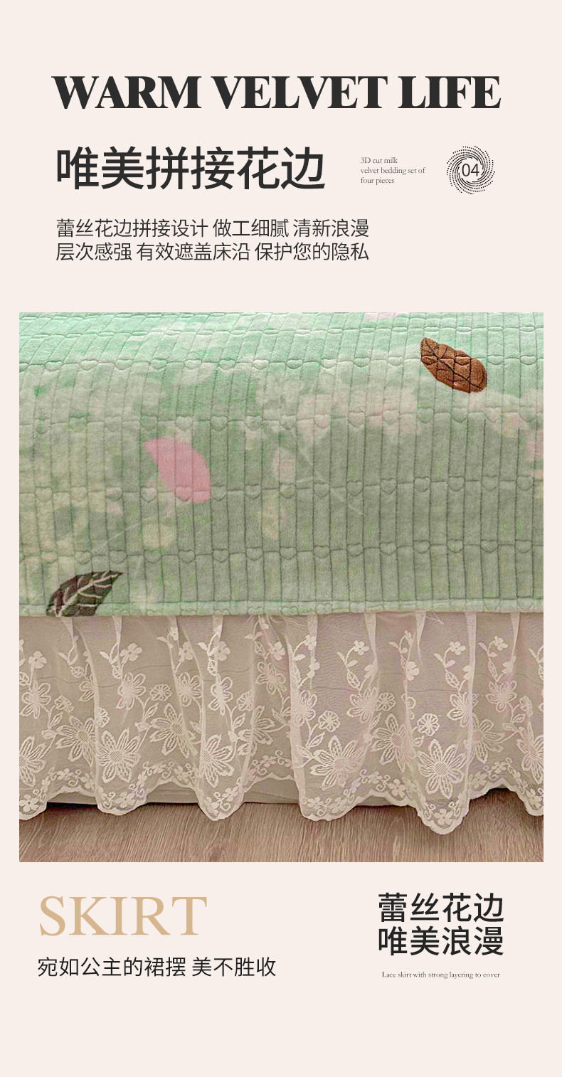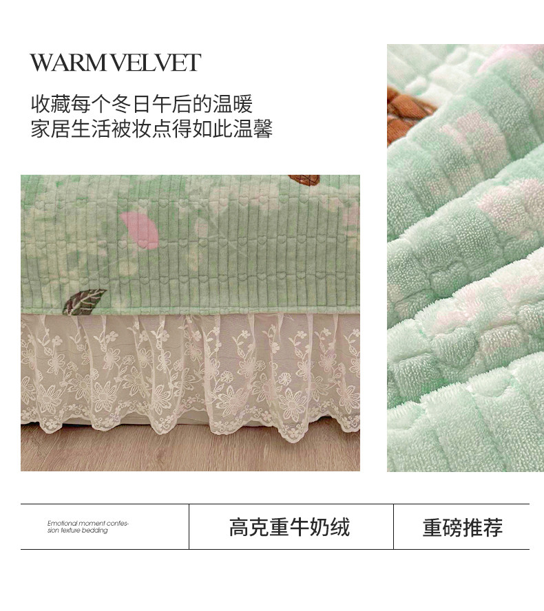 (总)宜凡家纺 2025新款兔绒提花牛奶绒夹棉床裙四件套,爱心 少女粉,爱心 粉紫,爱心 驼色,蝶舞 大红,蝶舞 米色,蝶舞 浅紫,蝶舞 玉色,简爱 苍青,简爱 豆沙紫,简爱 玉色,樱桃 苍青,樱桃 豆沙紫,樱桃 奶油白