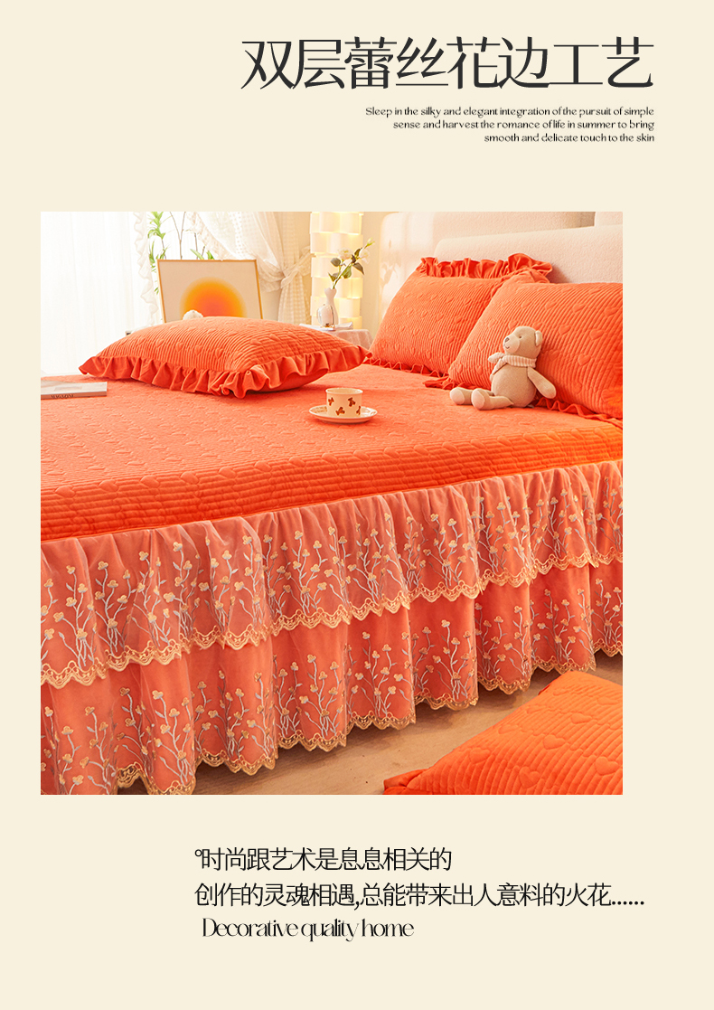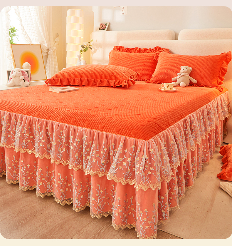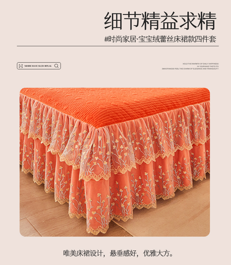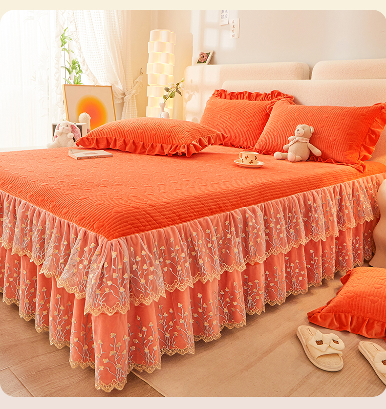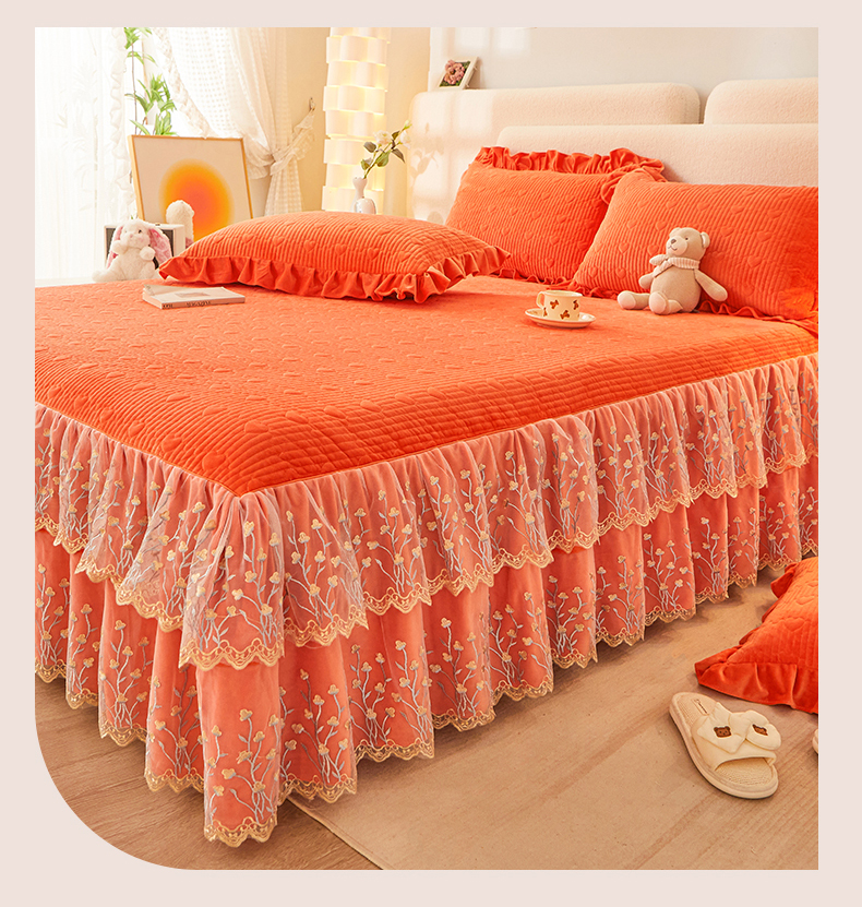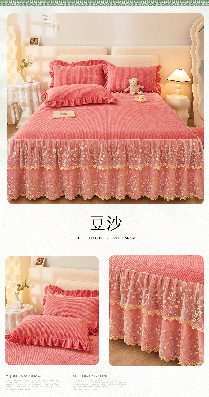 (总)恒爱 2022秋冬水晶绒翩翩花舞夹棉床裙四件套,大红色,豆沙红,橄榄绿,公主粉,桔色,咖啡色,孔雀绿,拉菲红,罗兰紫,玫红色,美人玉,米白色,米驼色,抹茶绿,浅灰色,紫色
