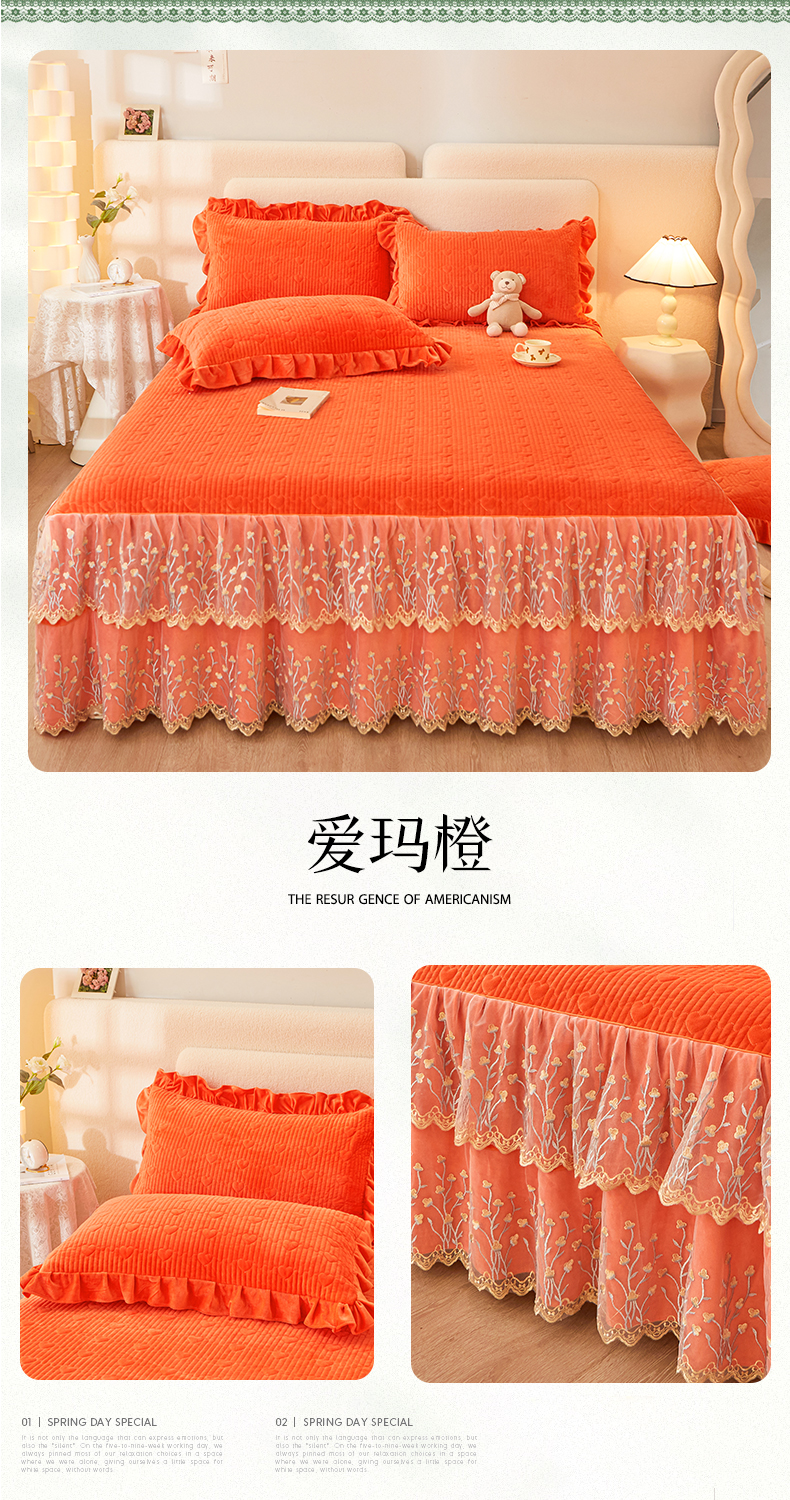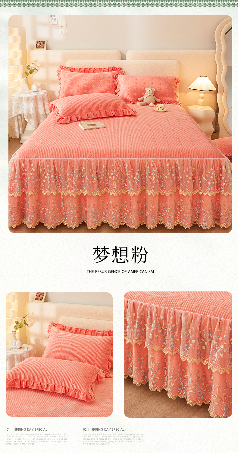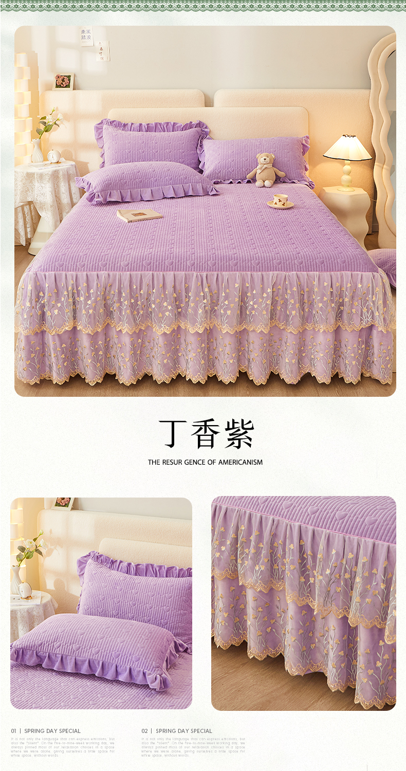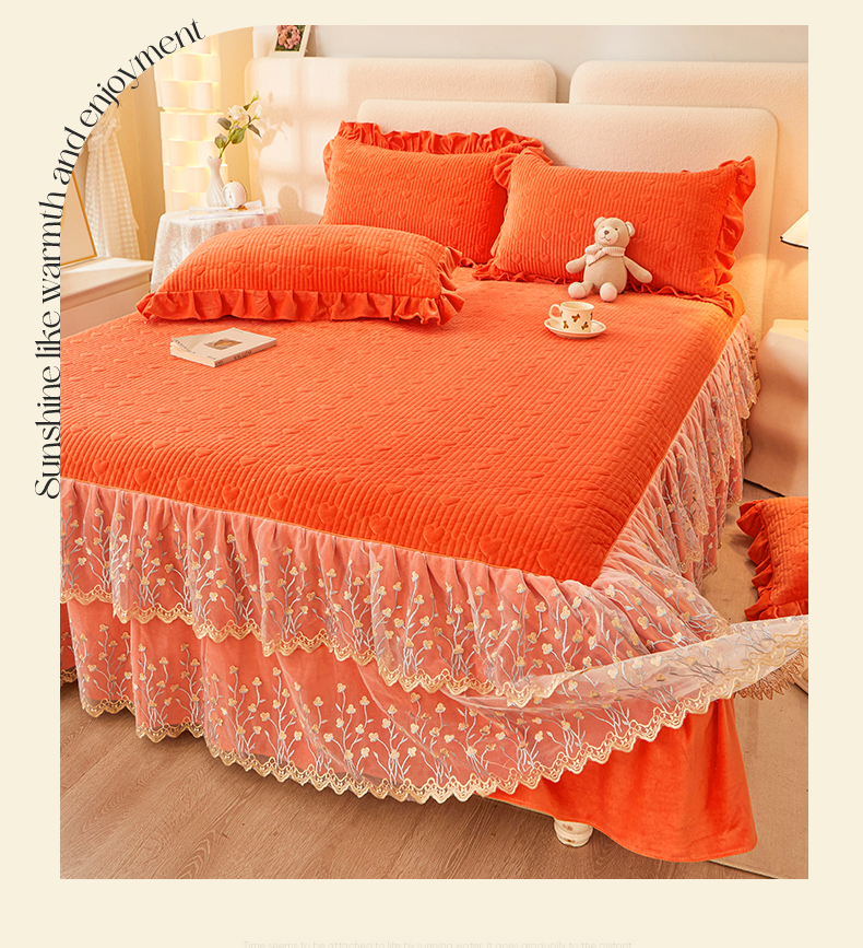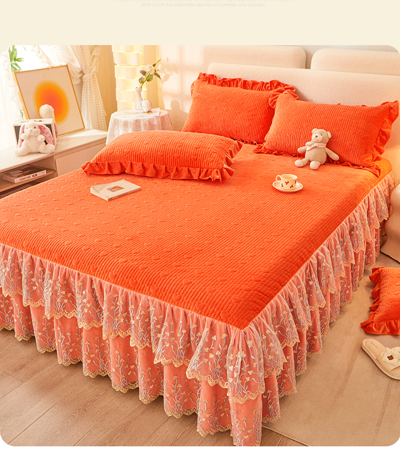 (总)恒爱 2022秋冬水晶绒翩翩花舞夹棉床裙四件套,大红色,豆沙红,橄榄绿,公主粉,桔色,咖啡色,孔雀绿,拉菲红,罗兰紫,玫红色,美人玉,米白色,米驼色,抹茶绿,浅灰色,紫色