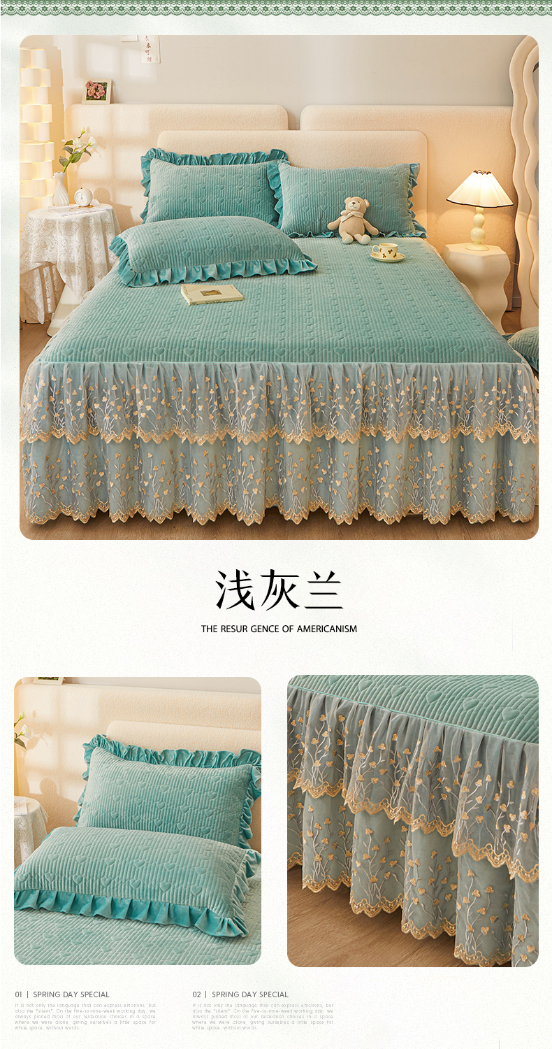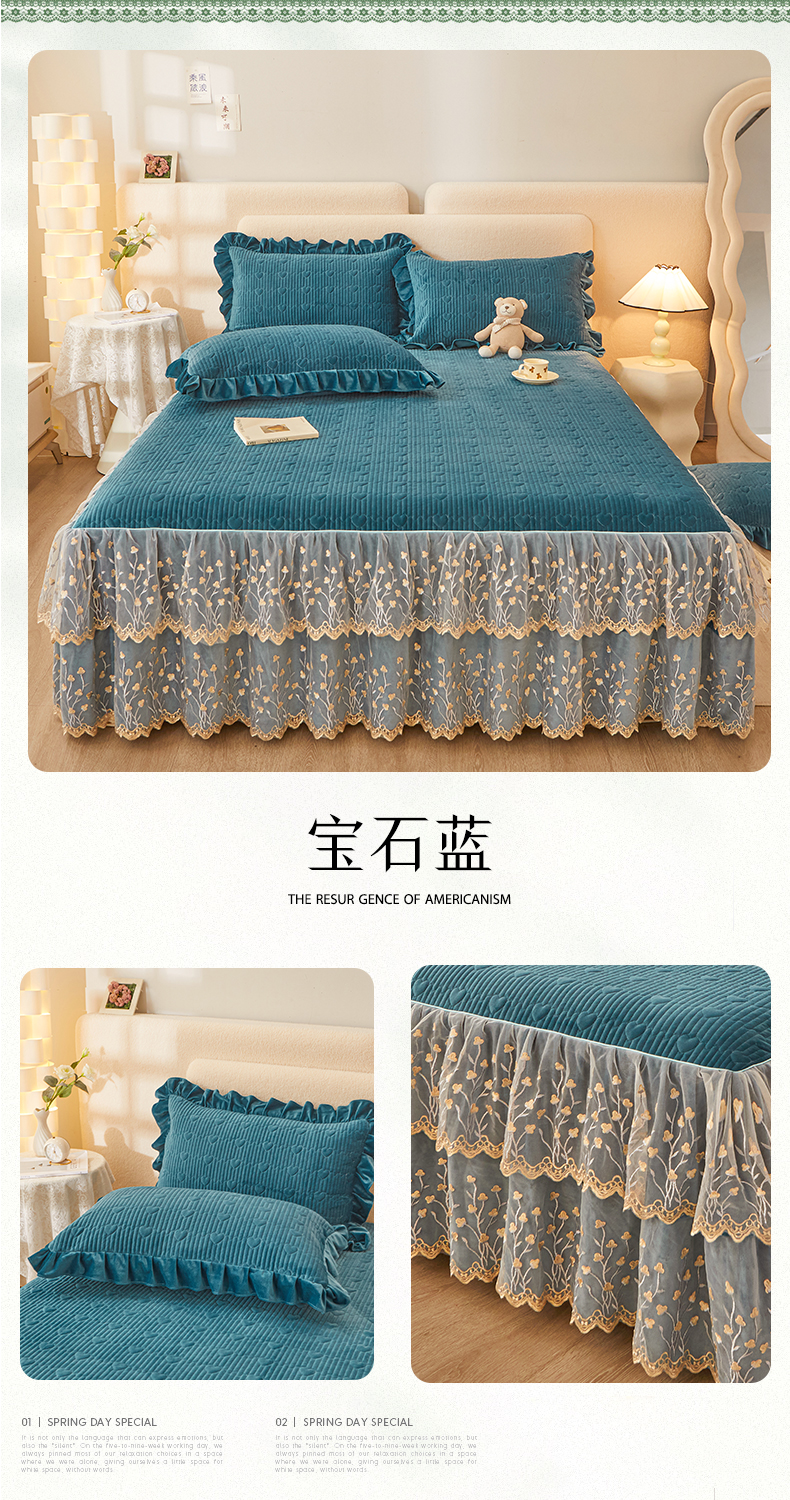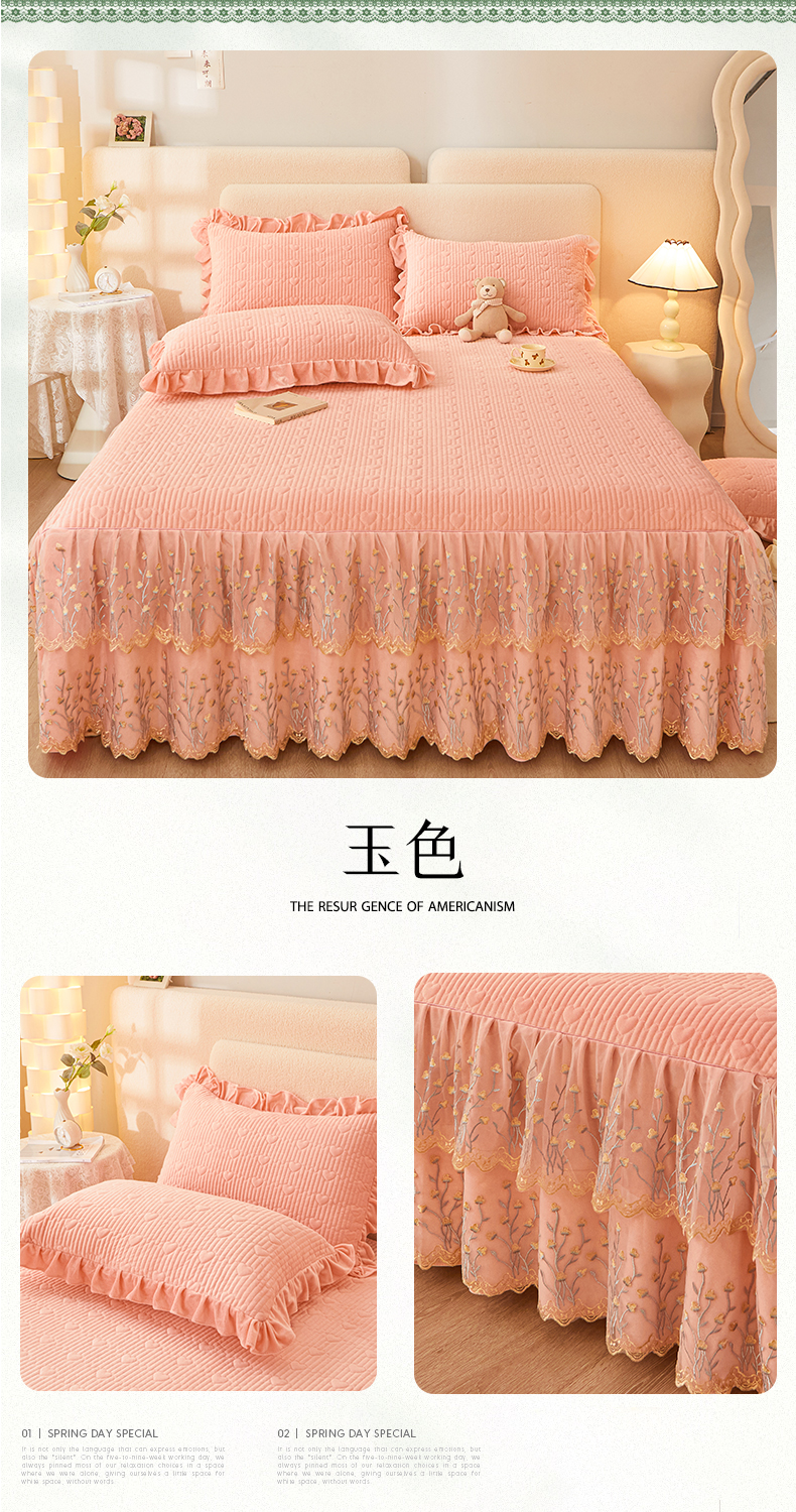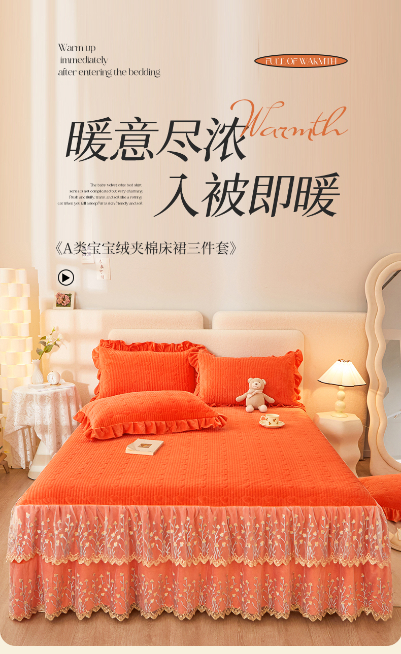(总)恒爱 2022秋冬水晶绒翩翩花舞夹棉床裙四件套,大红色,豆沙红,橄榄绿,公主粉,桔色,咖啡色,孔雀绿,拉菲红,罗兰紫,玫红色,美人玉,米白色,米驼色,抹茶绿,浅灰色,紫色