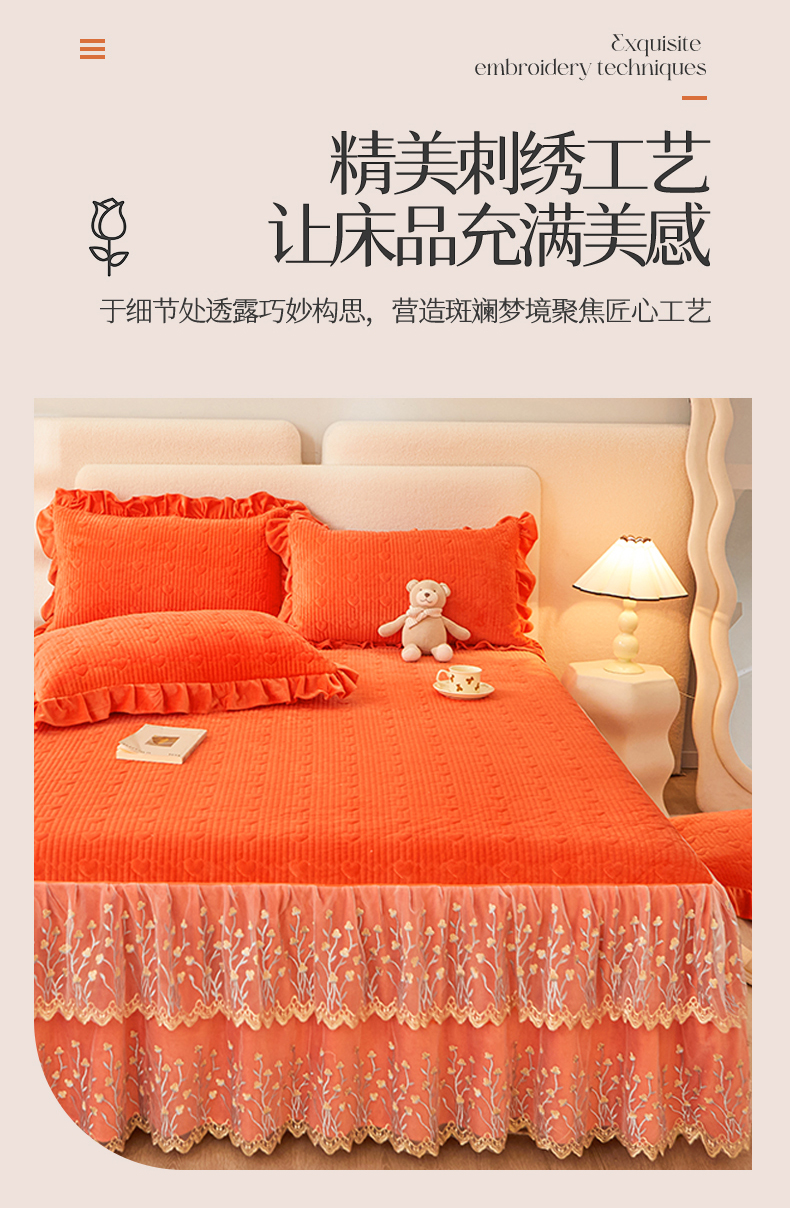 (总)恒爱 2022新款秋冬轻奢宝宝绒刺绣单床裙,爱玛橙,宾利蓝,豆沙红,橄榄绿,高级灰,酒红,梦想粉,浅灰蓝,温馨粉,喜庆红,香妃粉,香芋紫