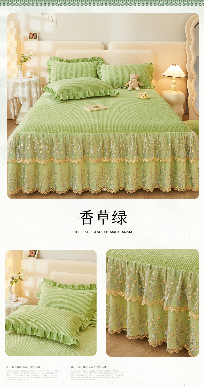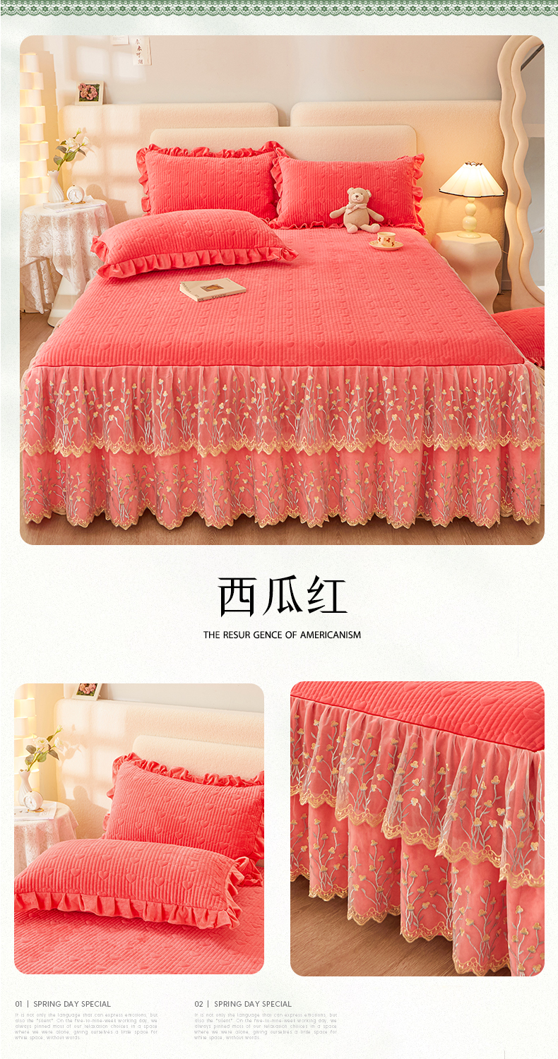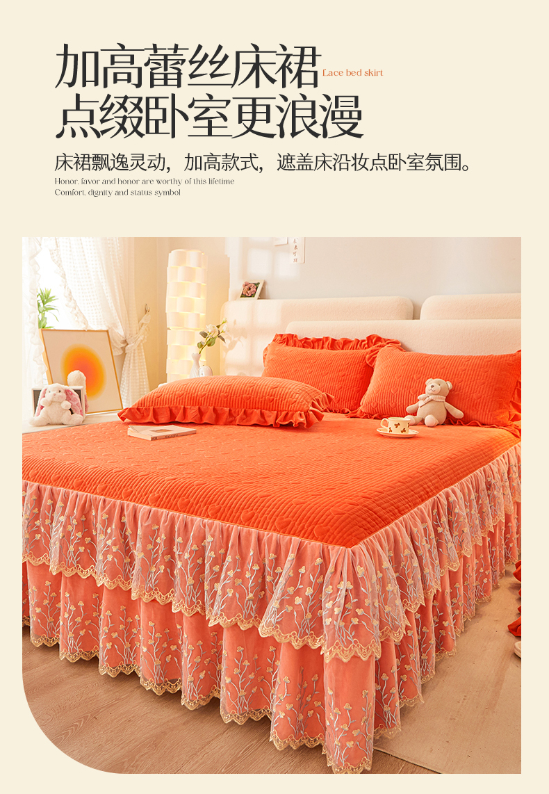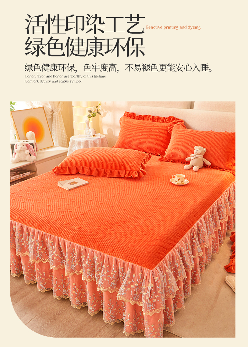 (总)恒爱 2022秋冬水晶绒翩翩花舞夹棉单床裙,大红色,豆沙红,橄榄绿,公主粉,桔色,咖啡色,孔雀绿,拉菲红,罗兰紫,玫红色,美人玉,米白色,米驼色,抹茶绿,浅灰色,紫色