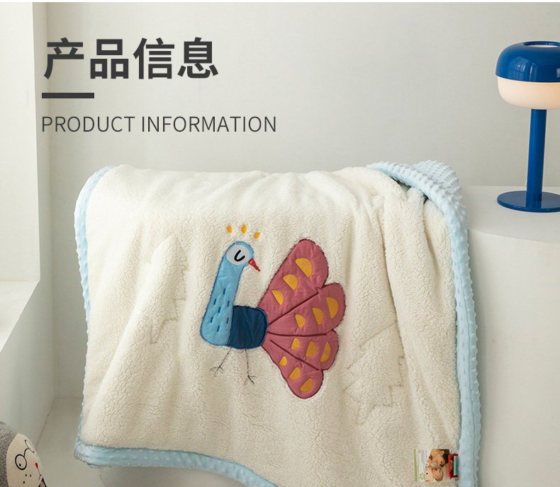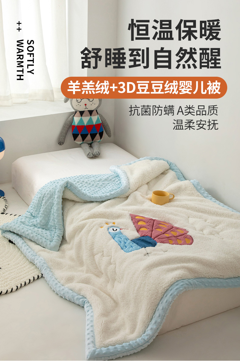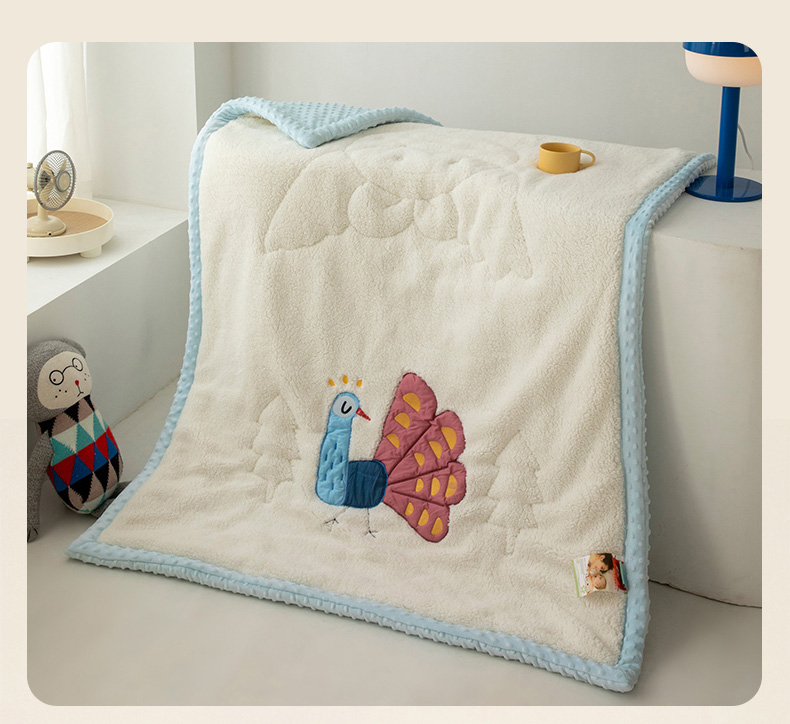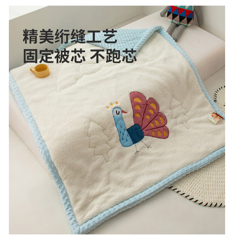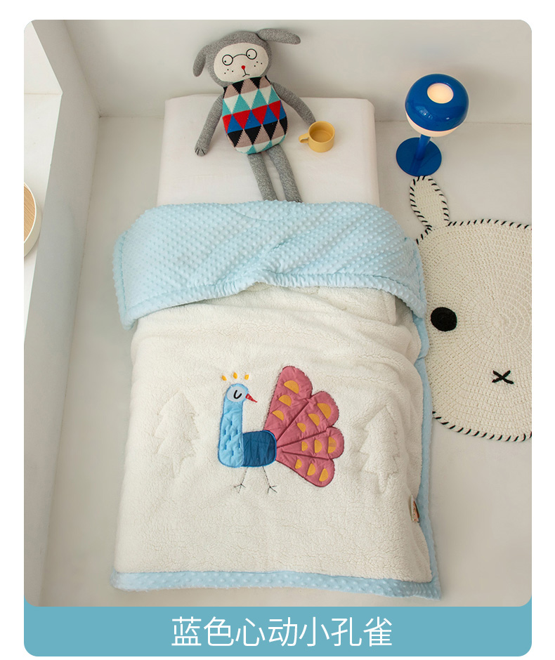 当前位置: 91家纺网 > 商品网购 > 毛毯休闲毯绒毯 > 毛毯 > 喜多兔儿童家纺 2023新款羊羔绒3D抗菌豆豆绒毯 蓝色心动小孔雀