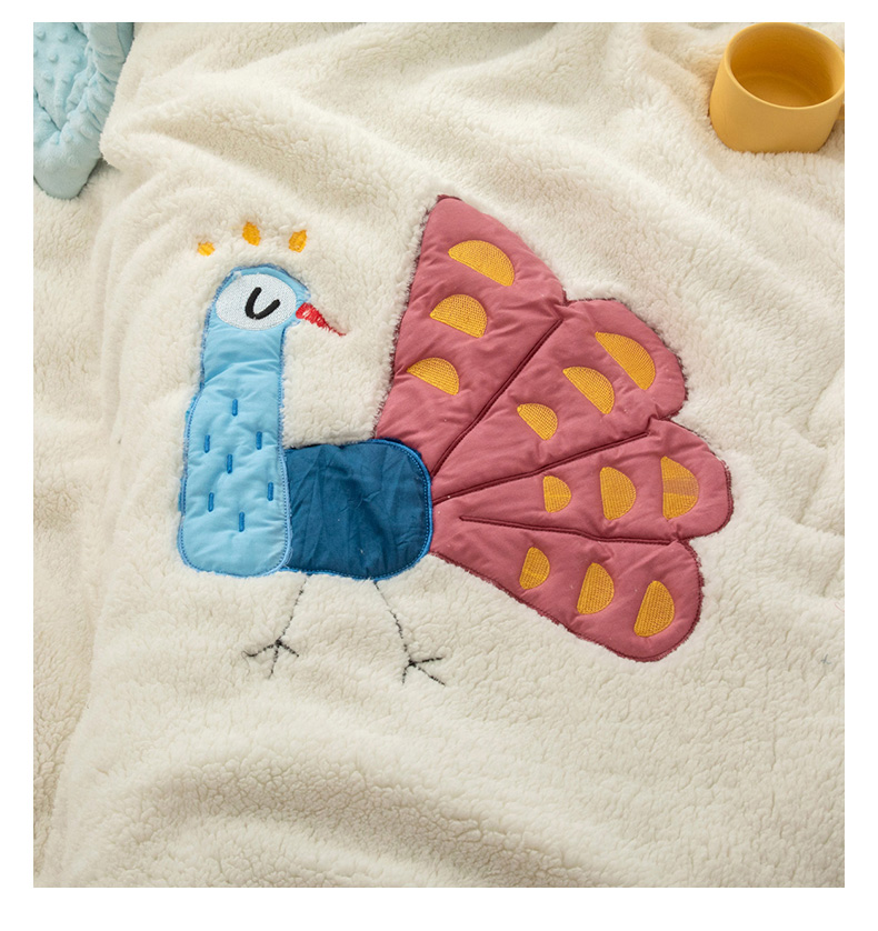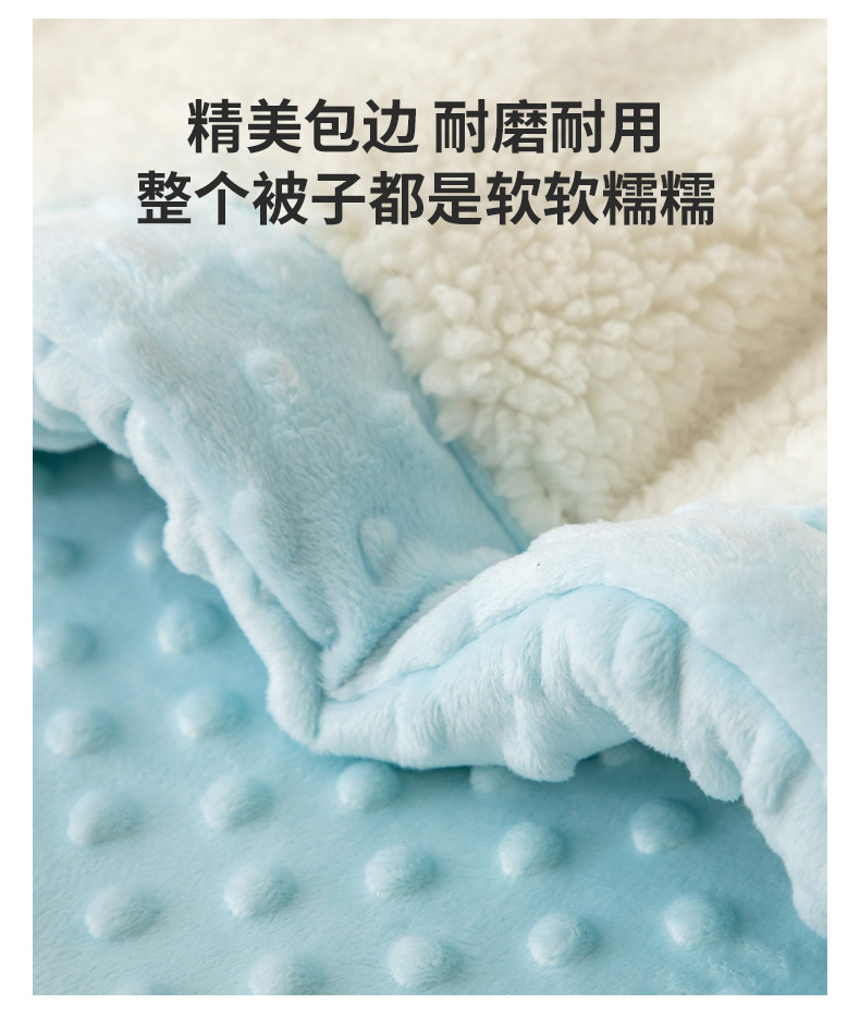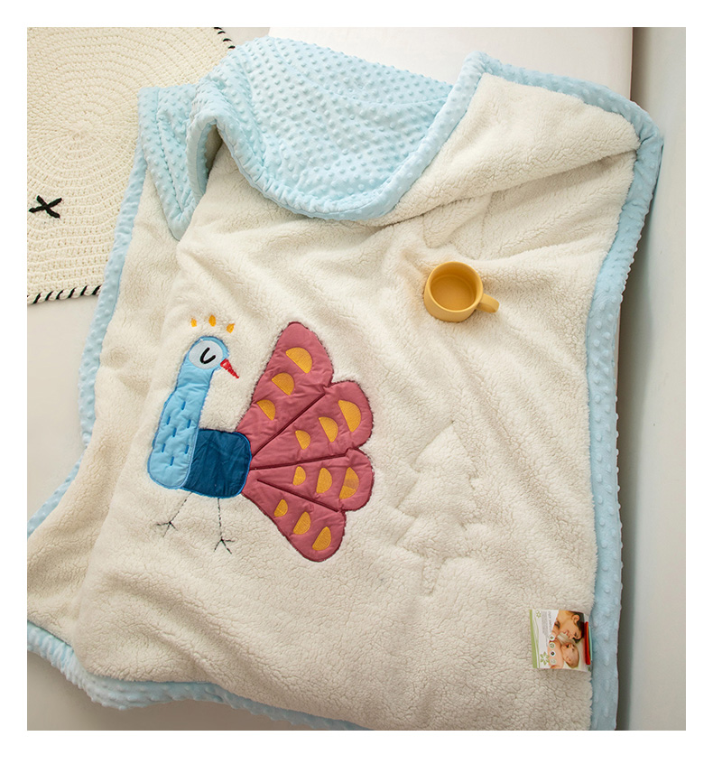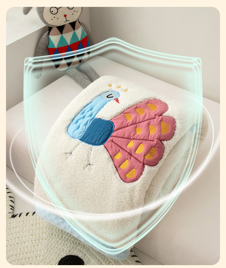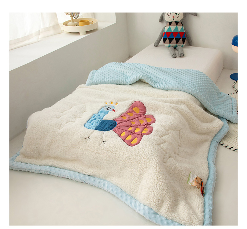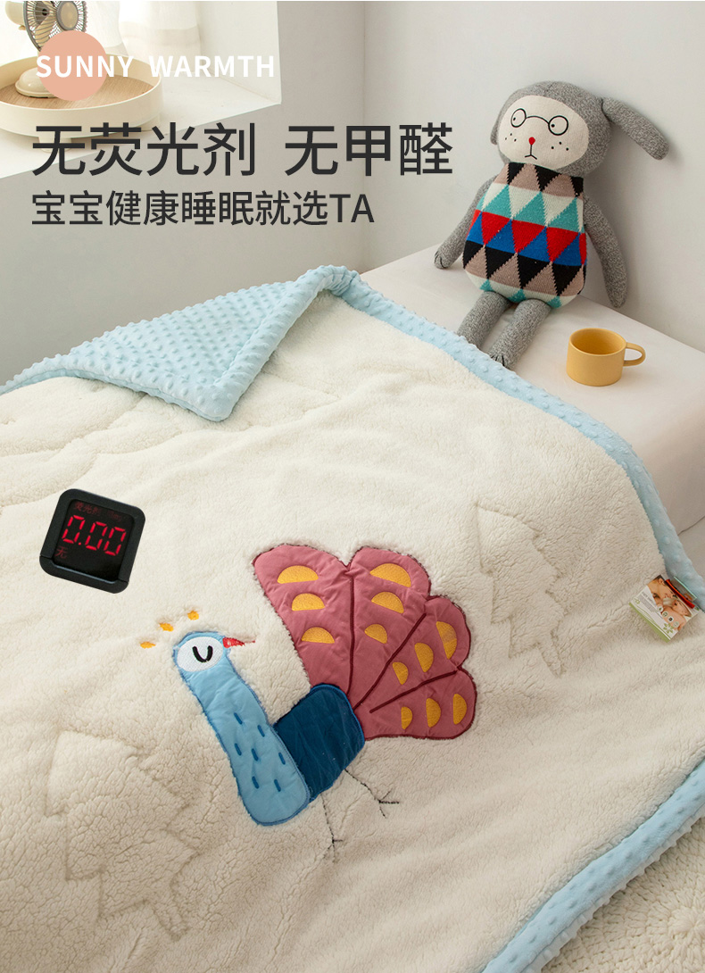 当前位置: 91家纺网 > 商品网购 > 毛毯休闲毯绒毯 > 毛毯 > 喜多兔儿童家纺 2023新款羊羔绒3D抗菌豆豆绒毯 蓝色心动小孔雀