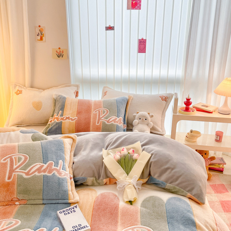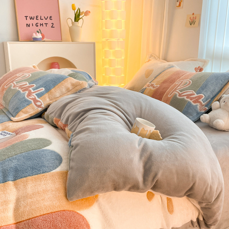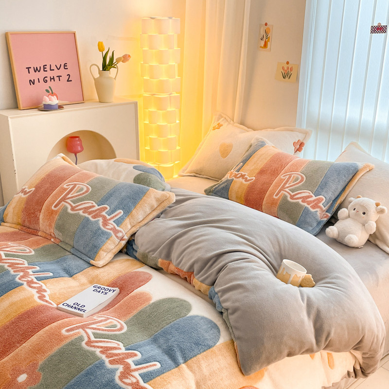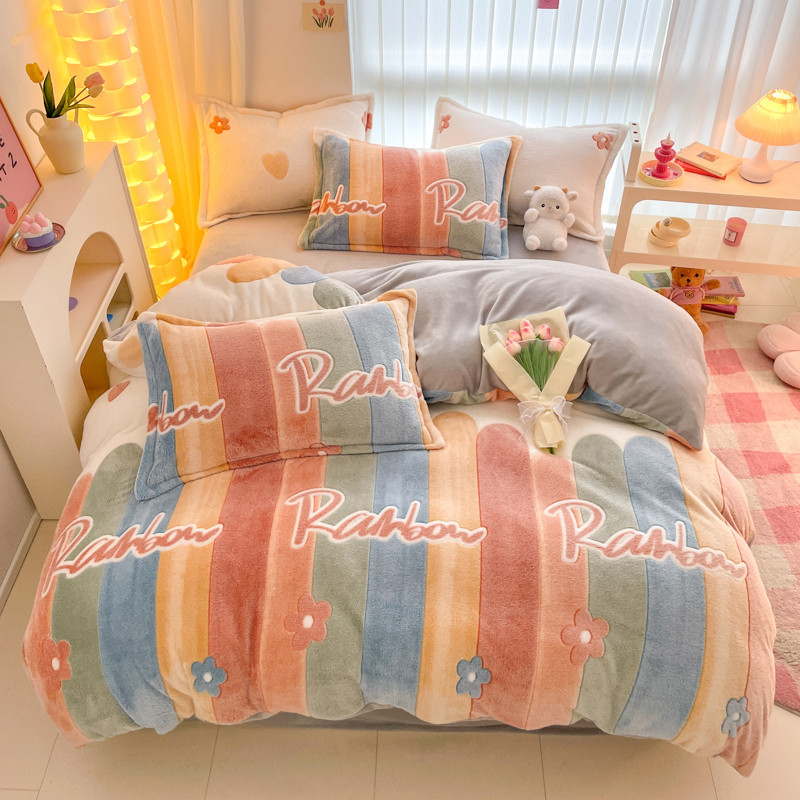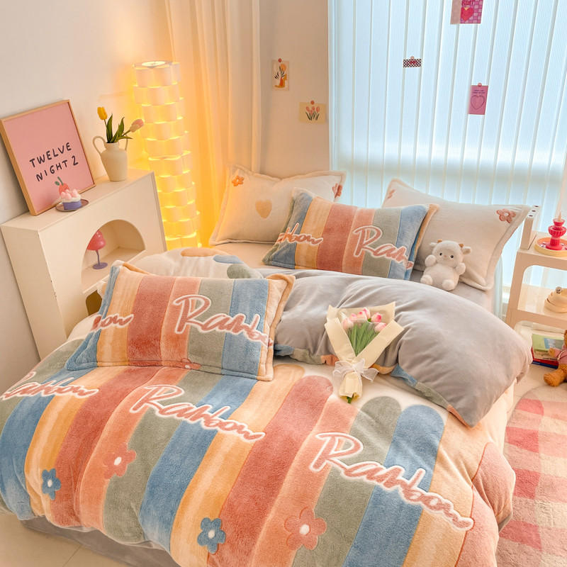 当前位置: 91家纺网 > 商品网购 > 床品套件 > 四件套 > 牛奶绒四件套 > 同田家纺 2024秋冬新品雪花绒牛奶绒印花四件套 七彩条