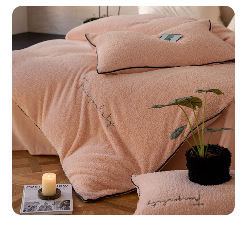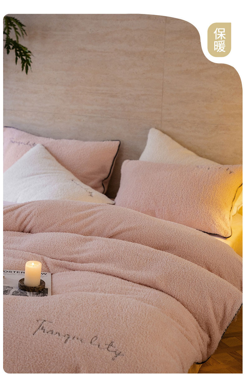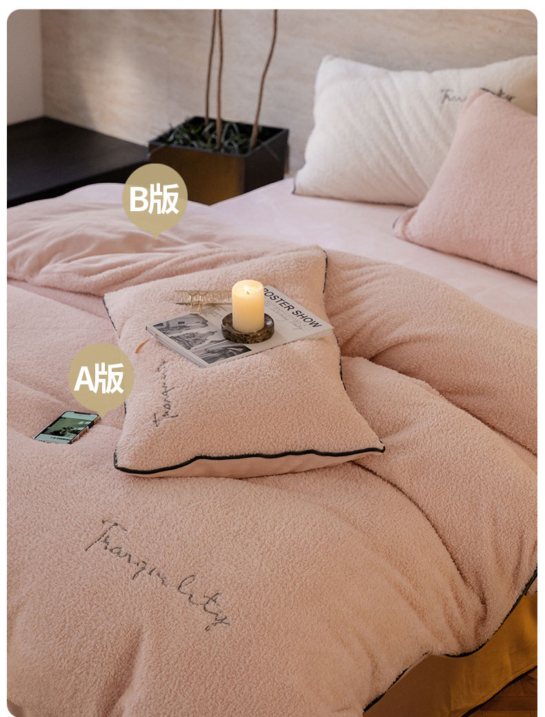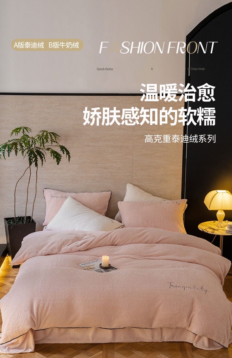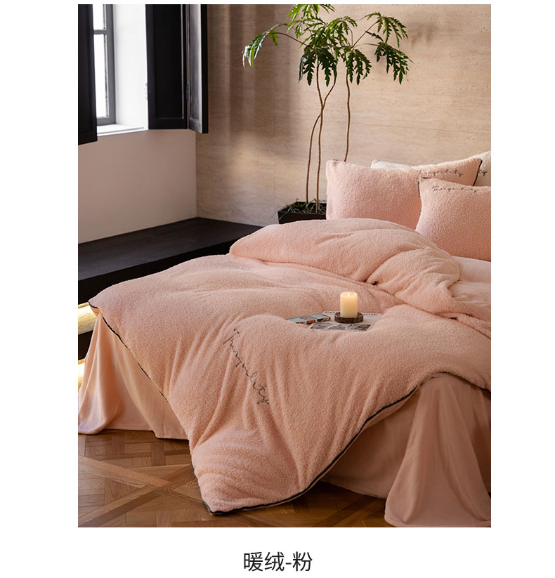 商品名称:FOR TWO家纺 2023新款AB版泰迪绒牛奶绒四件套 暖绒-粉