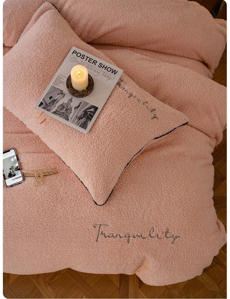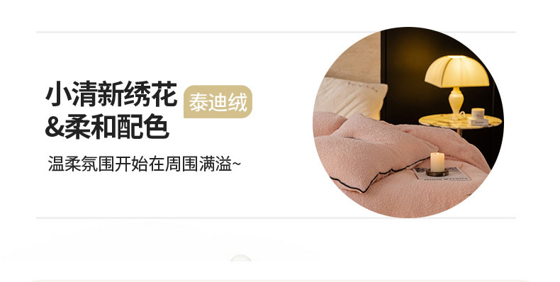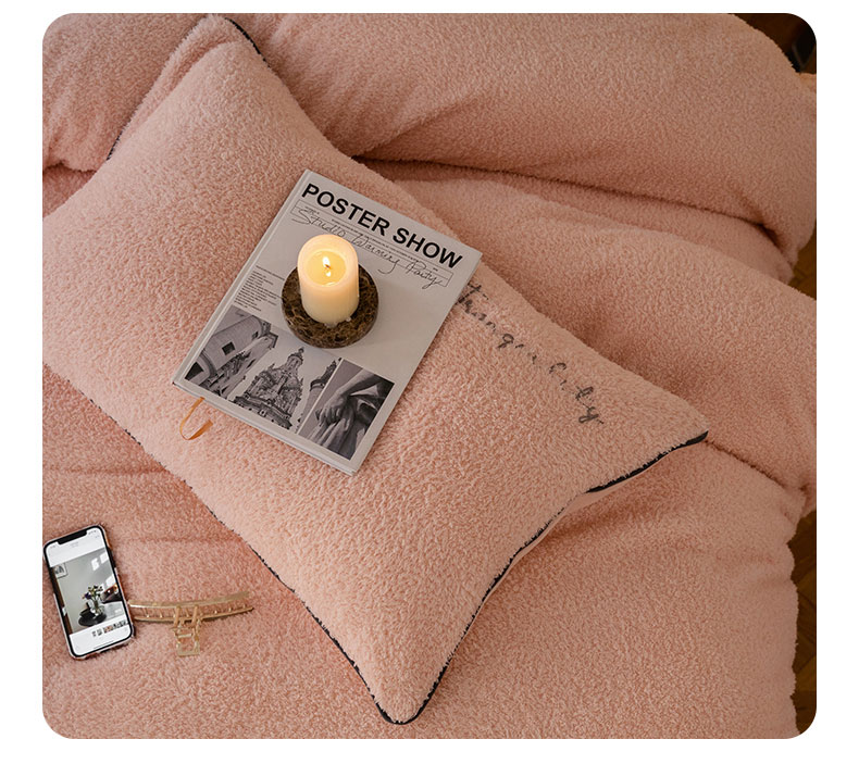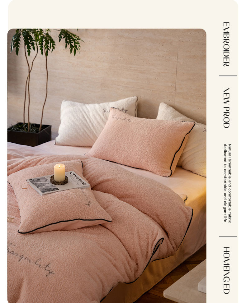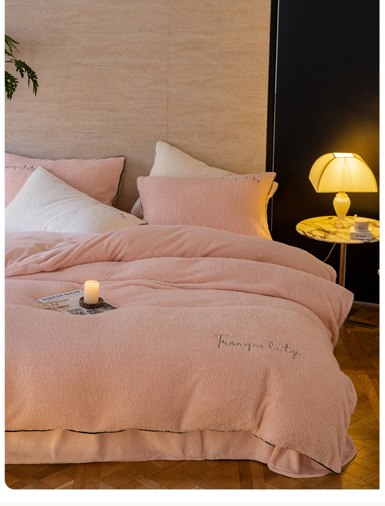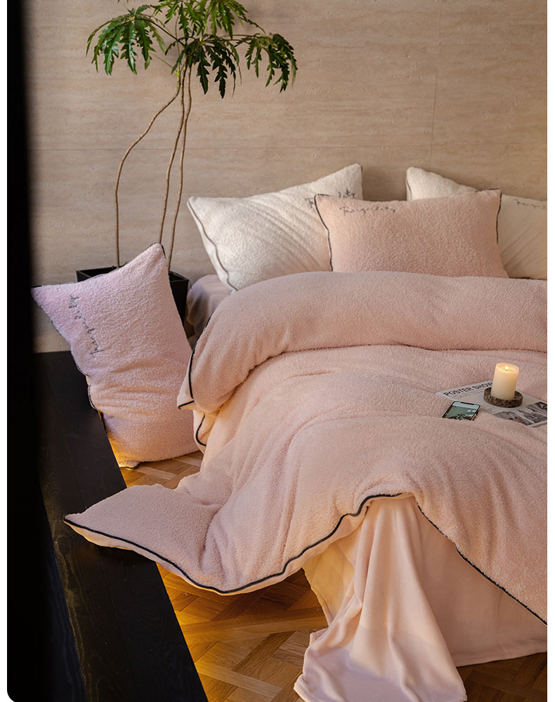 商品名称:FOR TWO家纺 2023新款AB版泰迪绒牛奶绒四件套 暖绒-粉