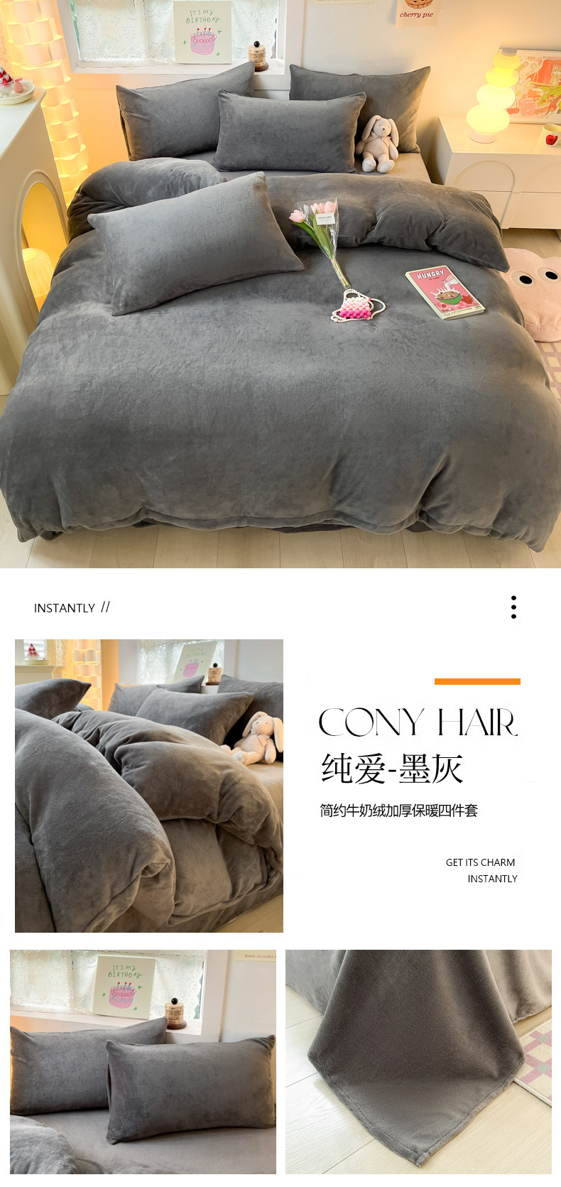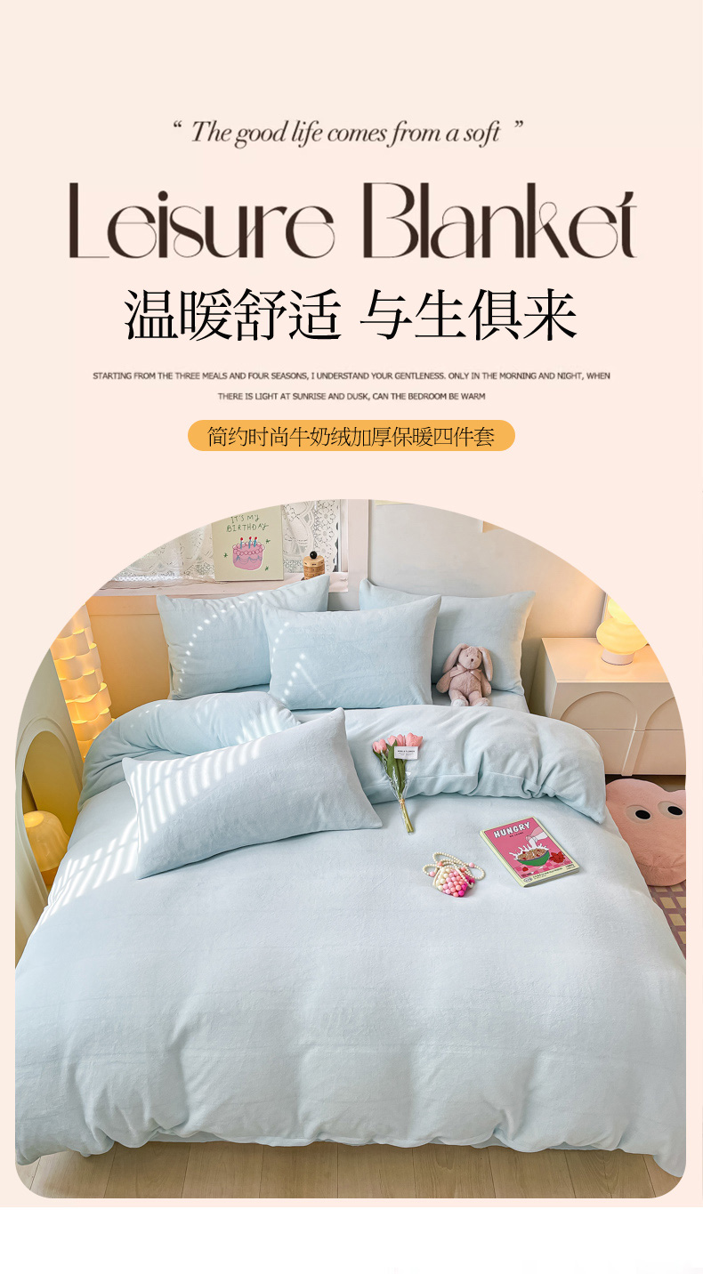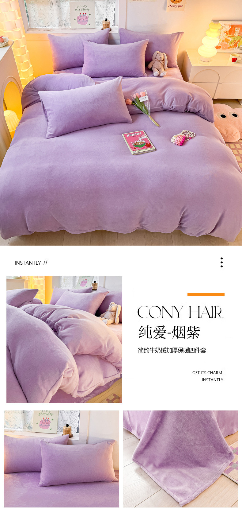 (总)慕澄家纺 2023新款简约牛奶绒加厚保暖四件套-纯爱