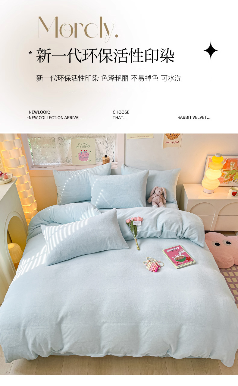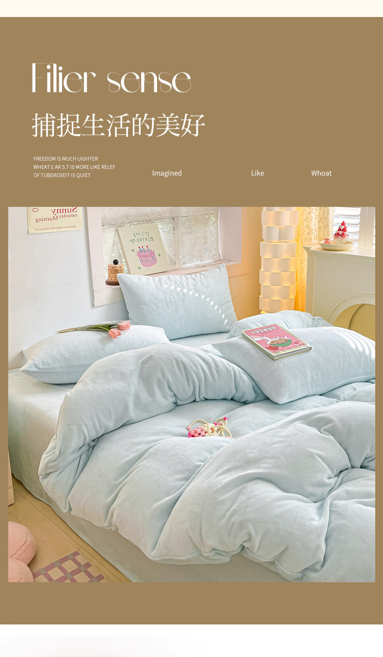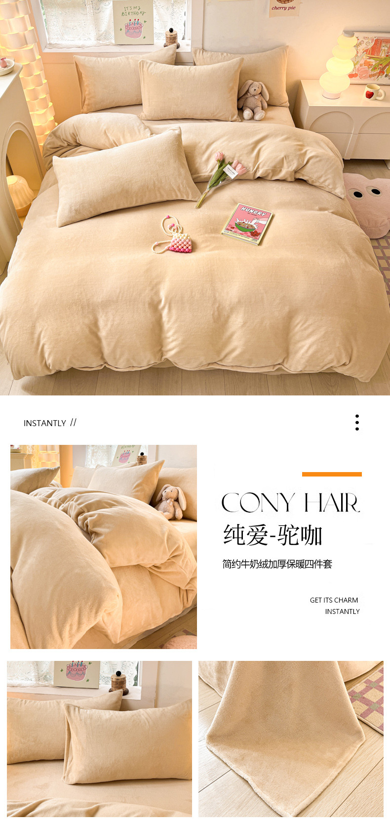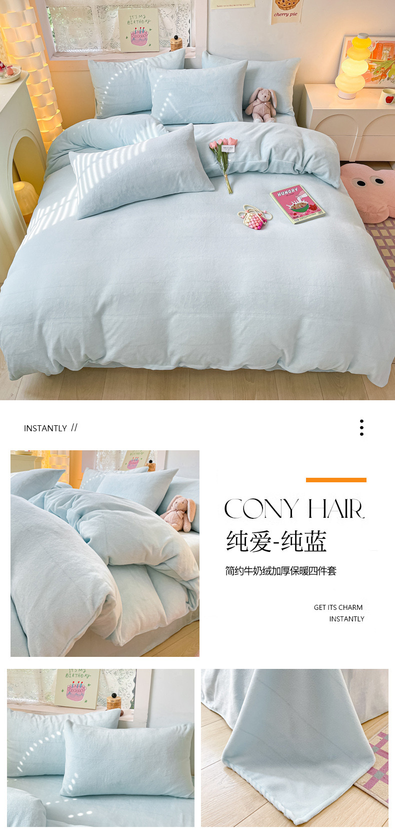 (总)慕澄家纺 2023新款简约牛奶绒加厚保暖四件套-纯爱