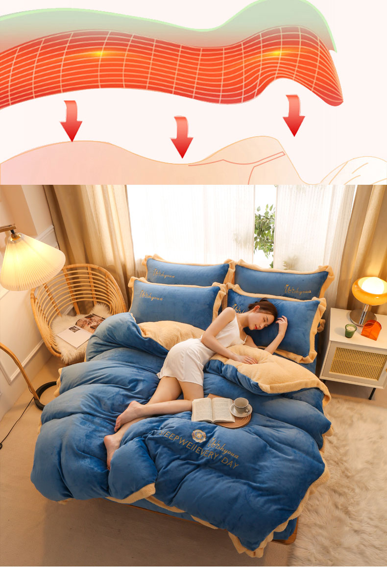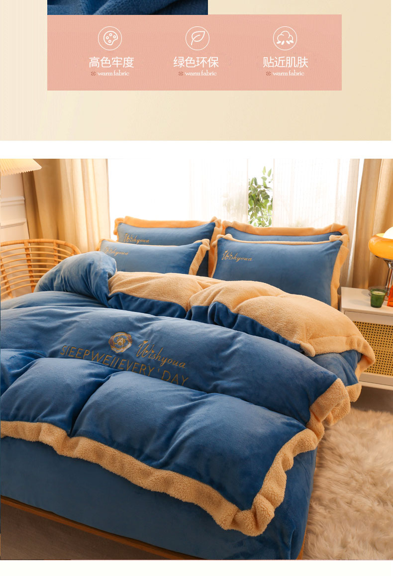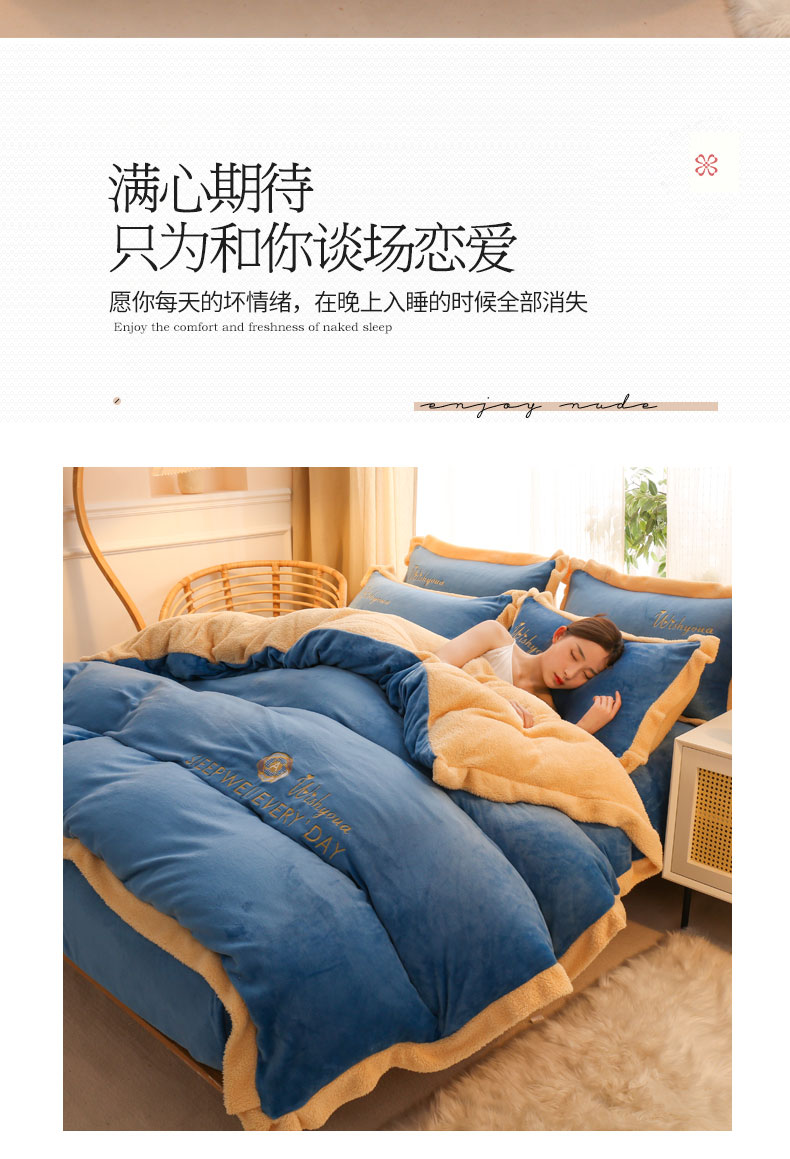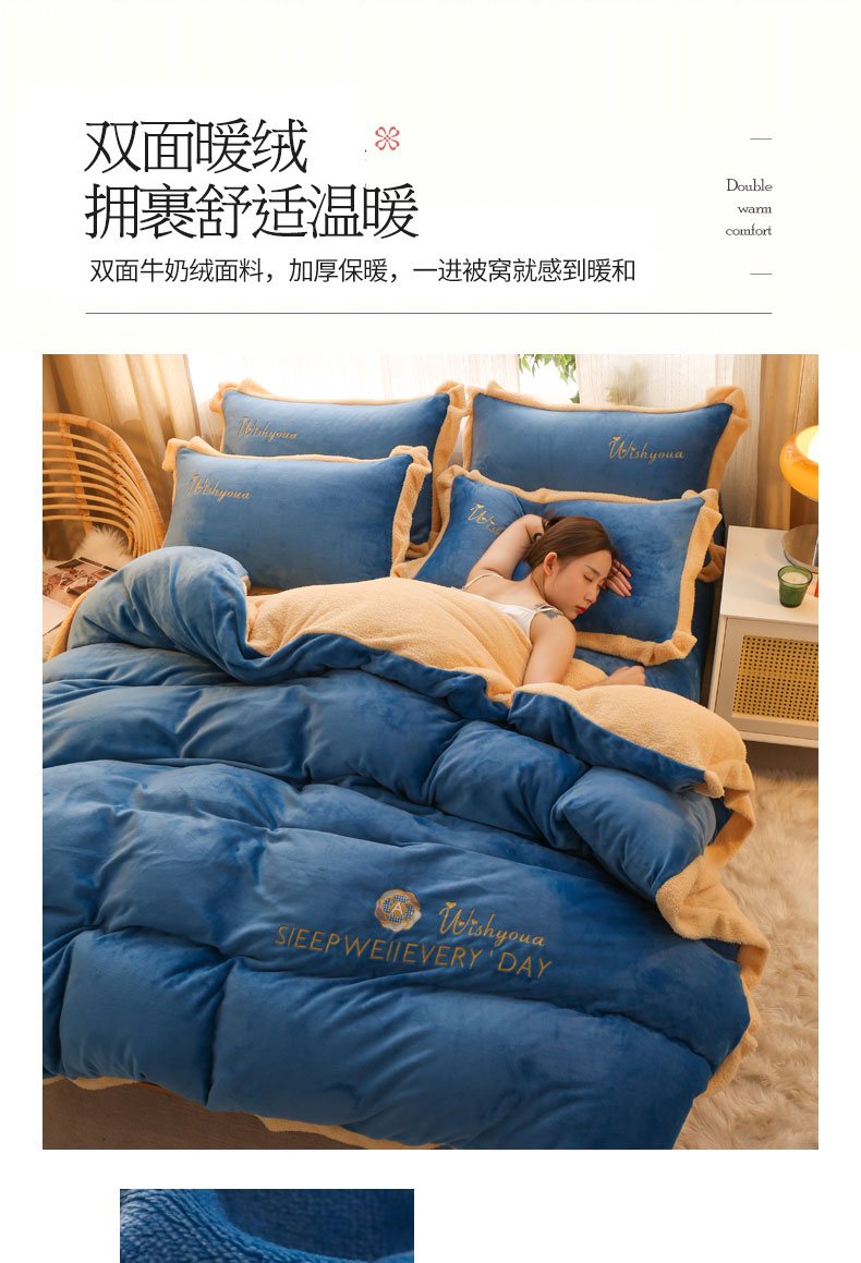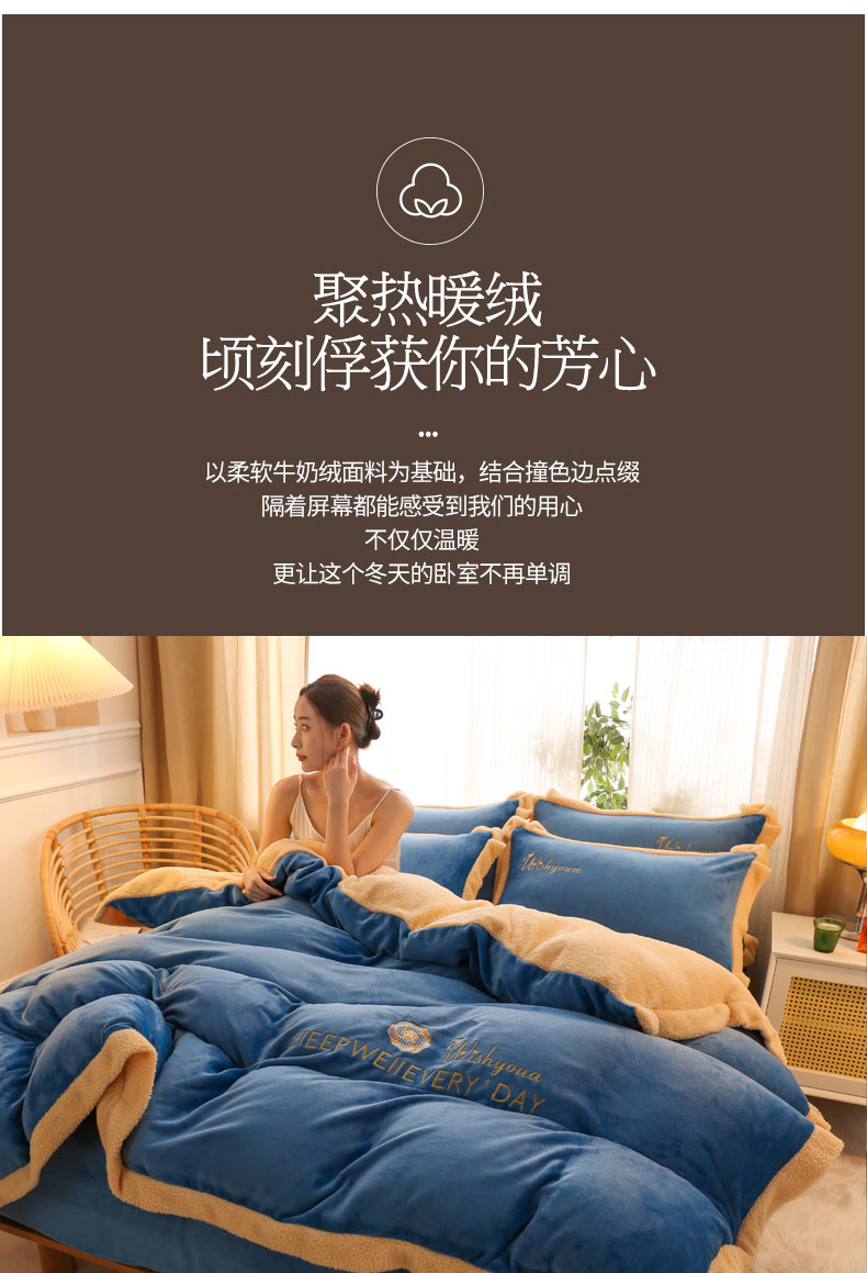 当前位置: 91家纺网 > 商品网购 > 床品套件 > 四件套 > 牛奶绒四件套 > 啊雅家居 2026新款绣花牛奶绒加羊羔绒四件套 克莱因蓝魔加米黄