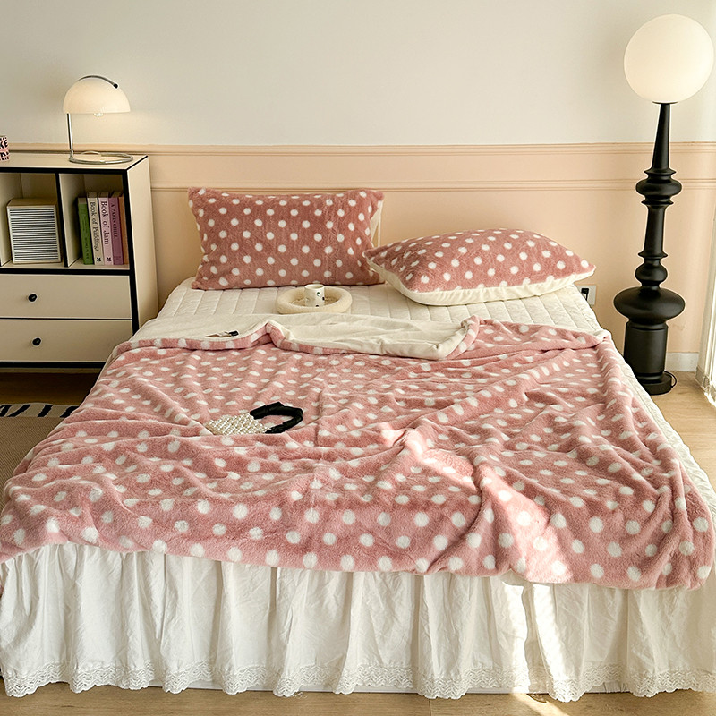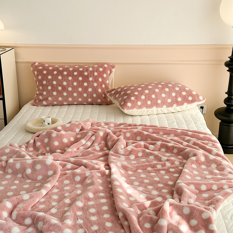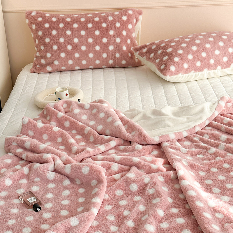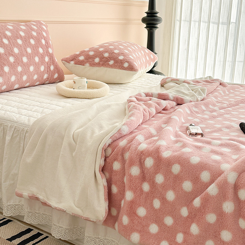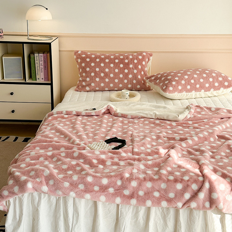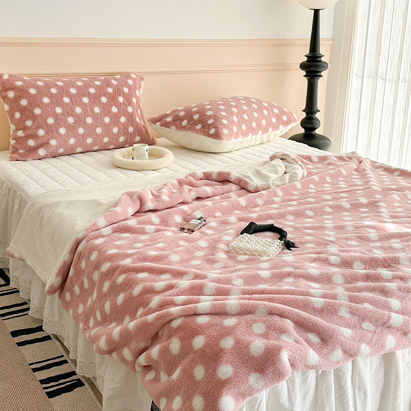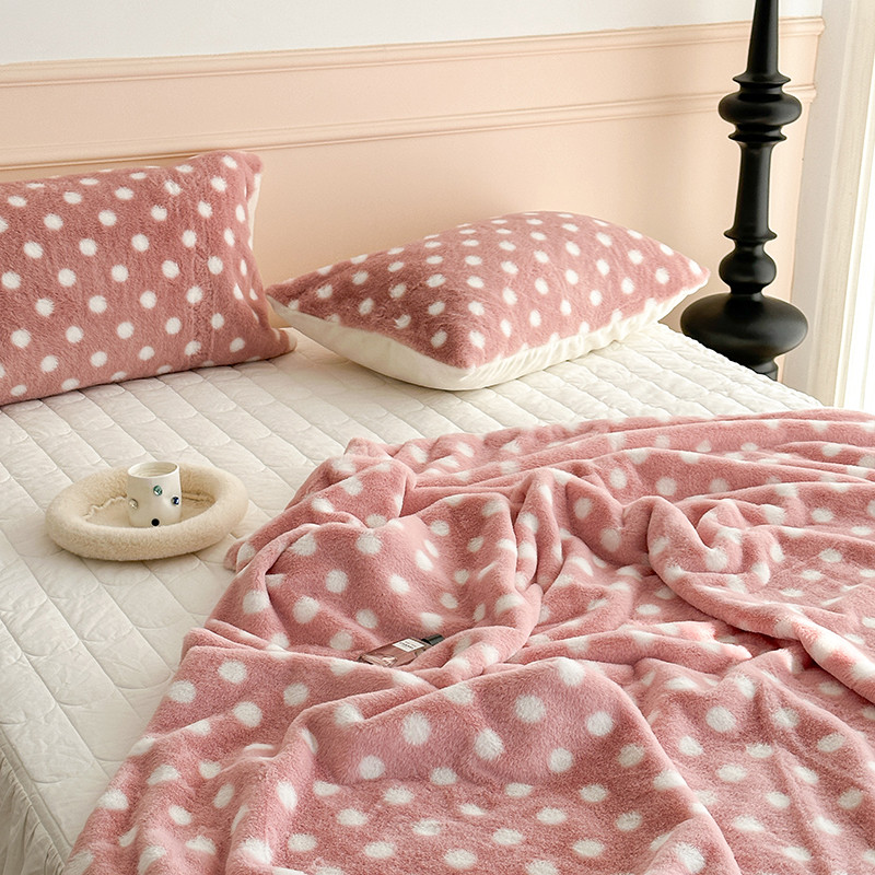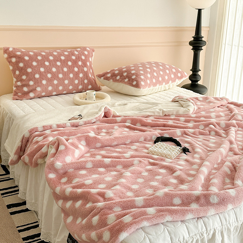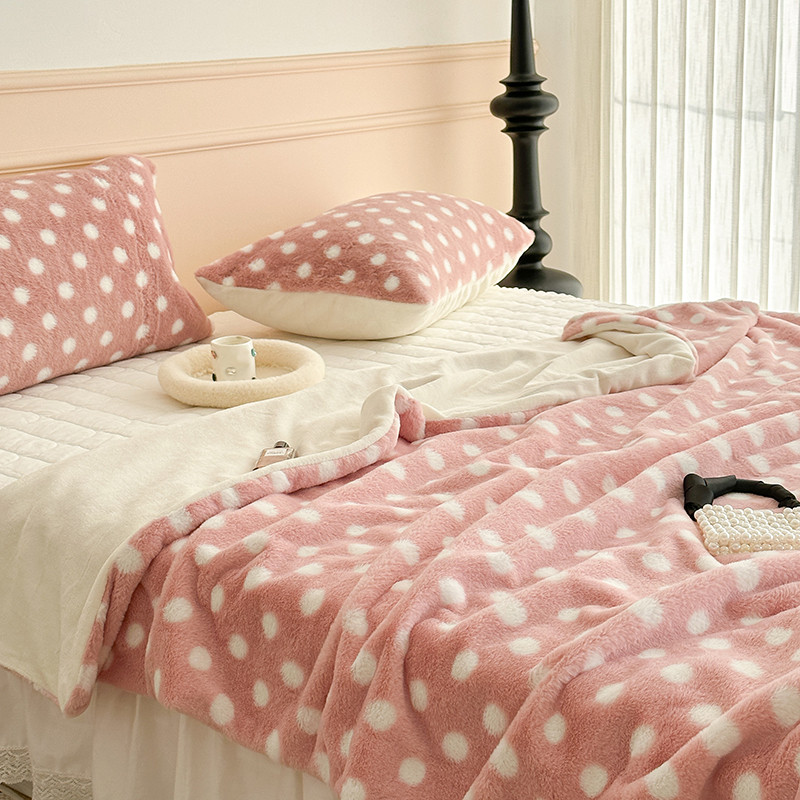 昔可 2023新款波点兔兔绒毛毯 毛毯玉粉波点