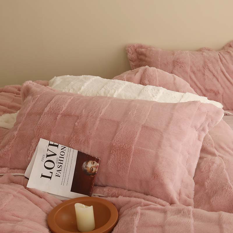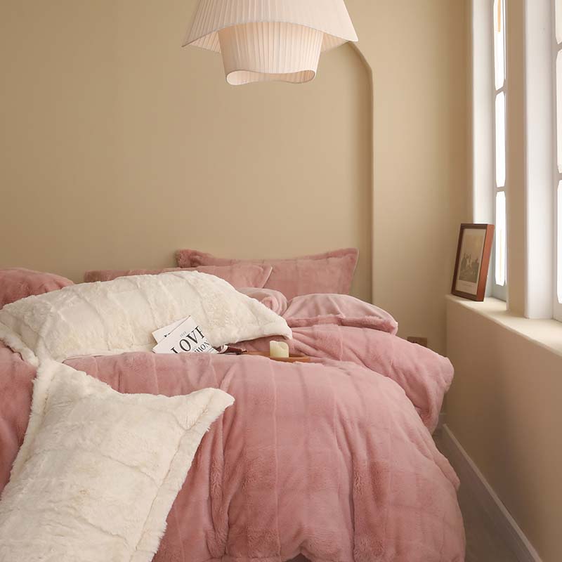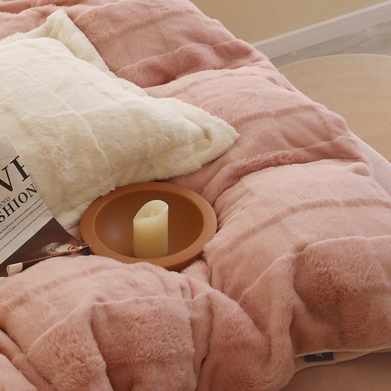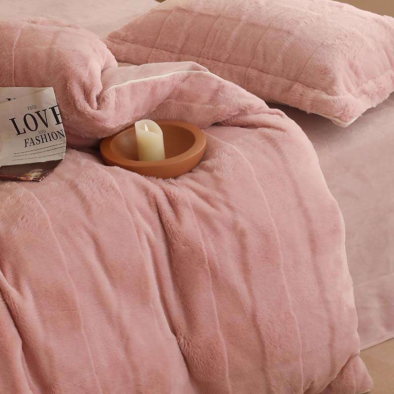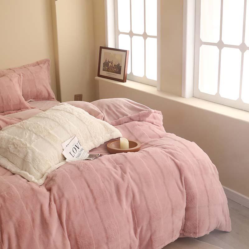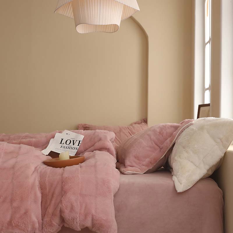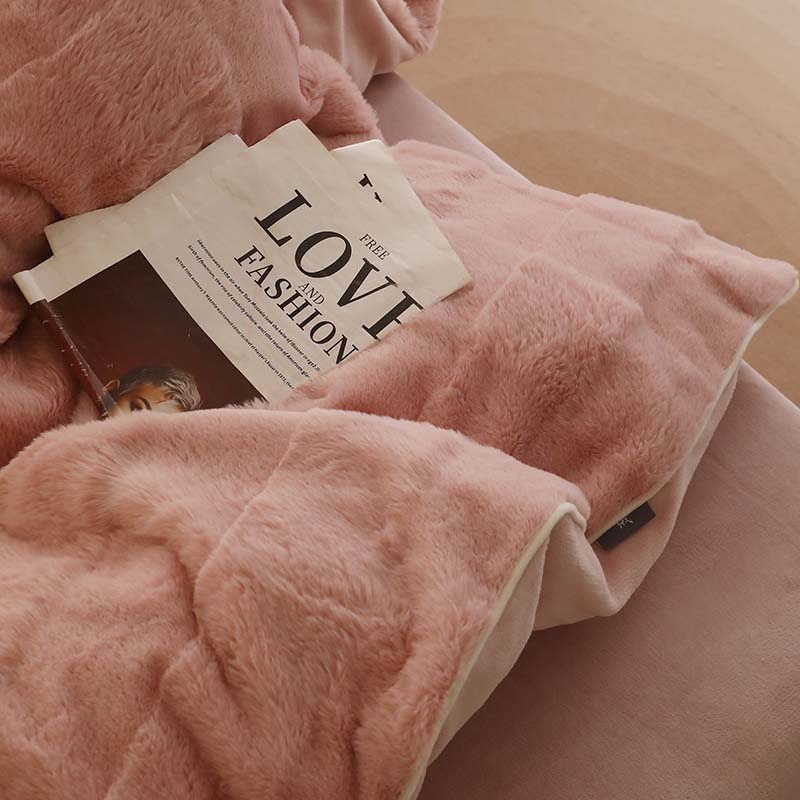 商品名称:橘滋 2023新款A版360克皮草绒B版高克重牛奶绒四件套 卡曼丝-粉蔷薇