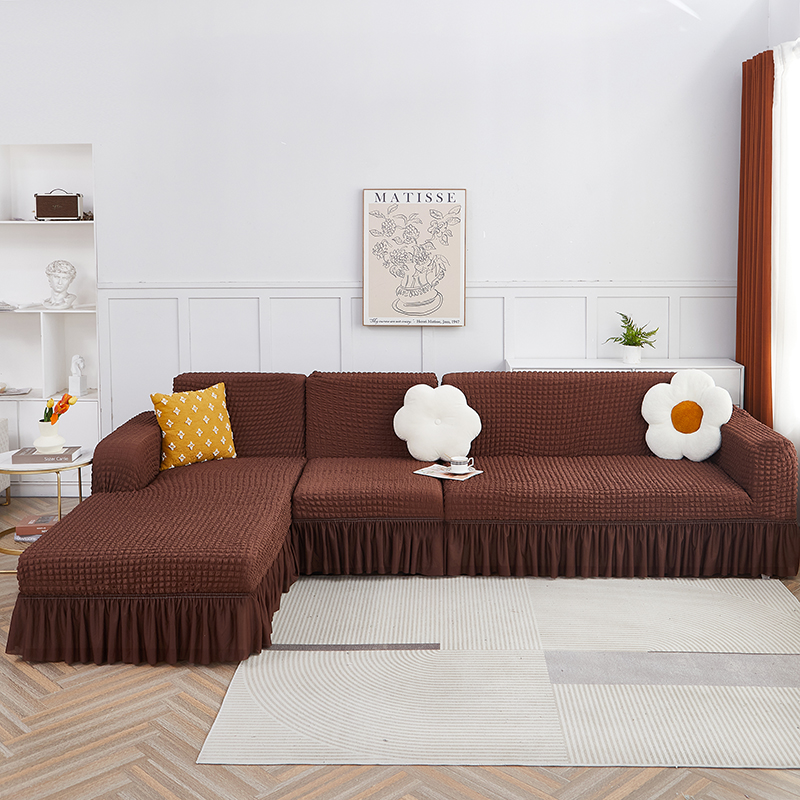 丝绮鹿 2023新款爆米花裙边贵妃沙发套 咖啡