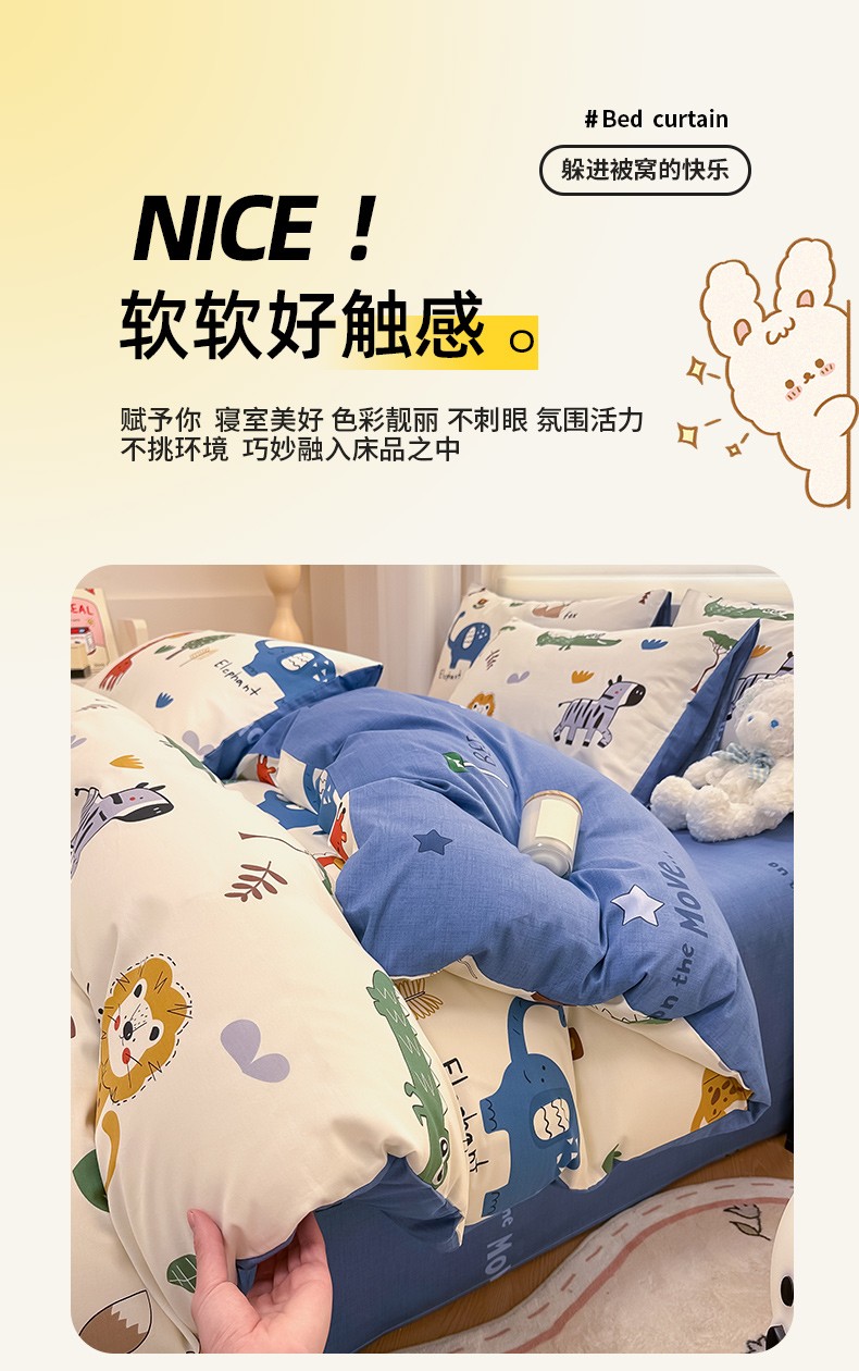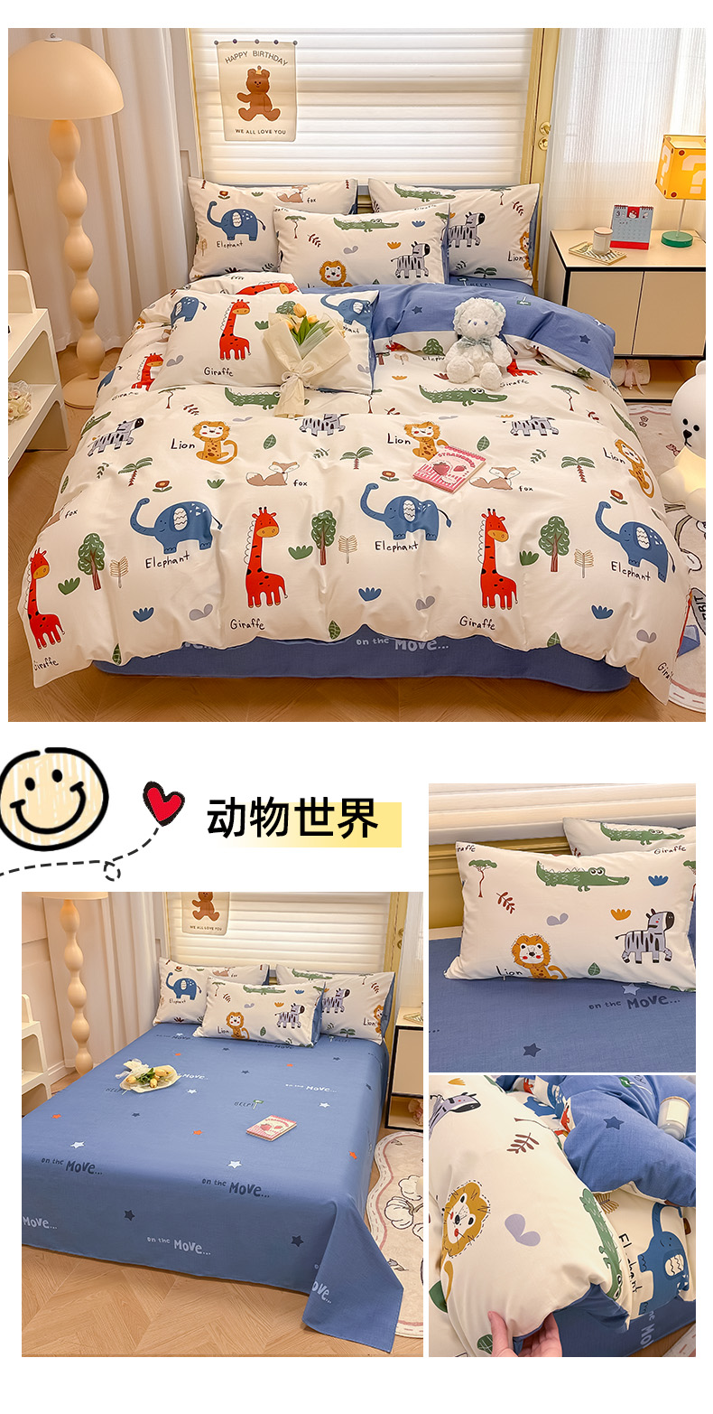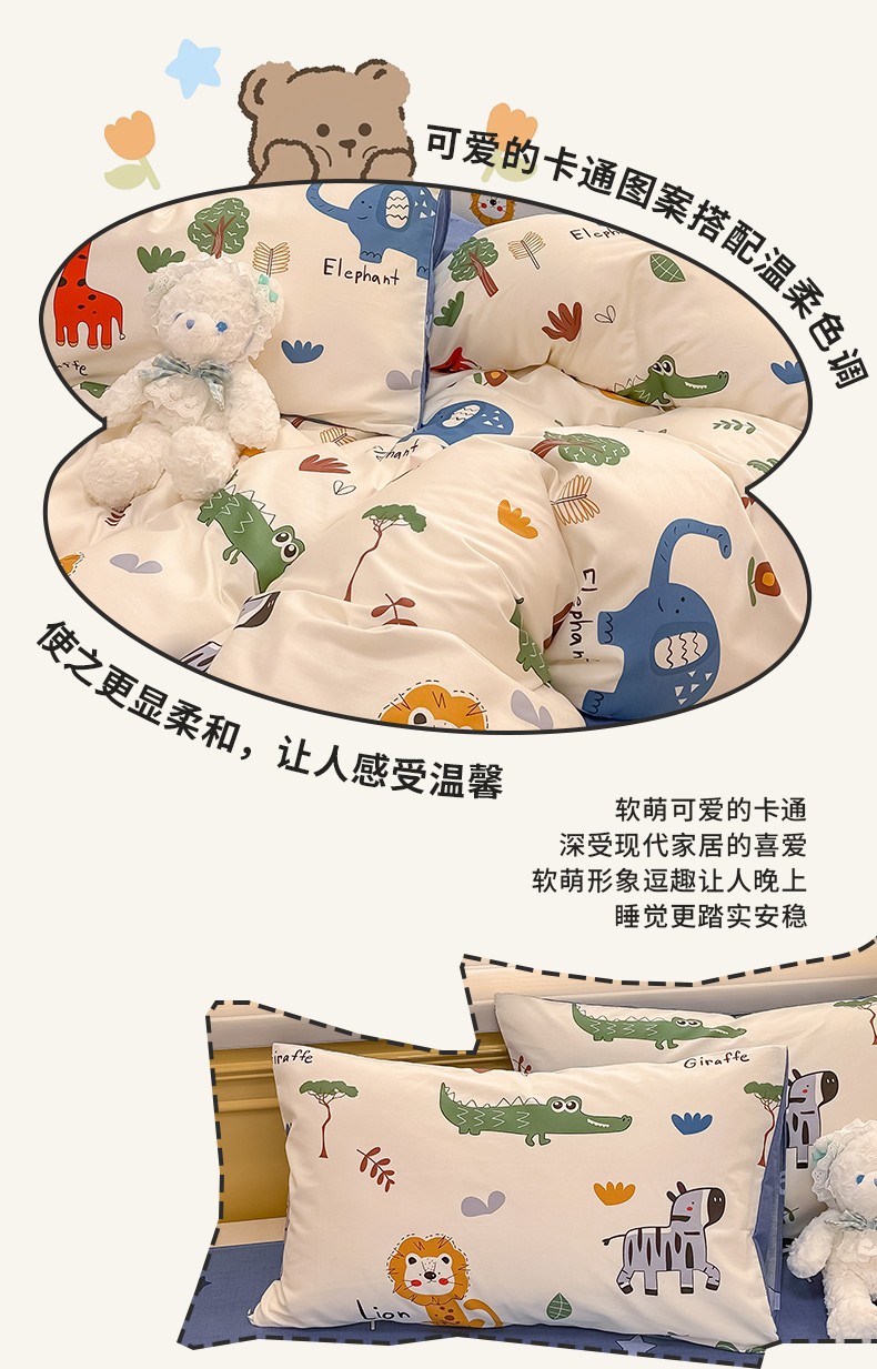 当前位置: 91家纺网 > 商品网购 > 床品套件 > 四件套 > 全棉普通四件套 > 晨希 2024春夏新款全棉13372印花四件套—卡通系列 动物世界