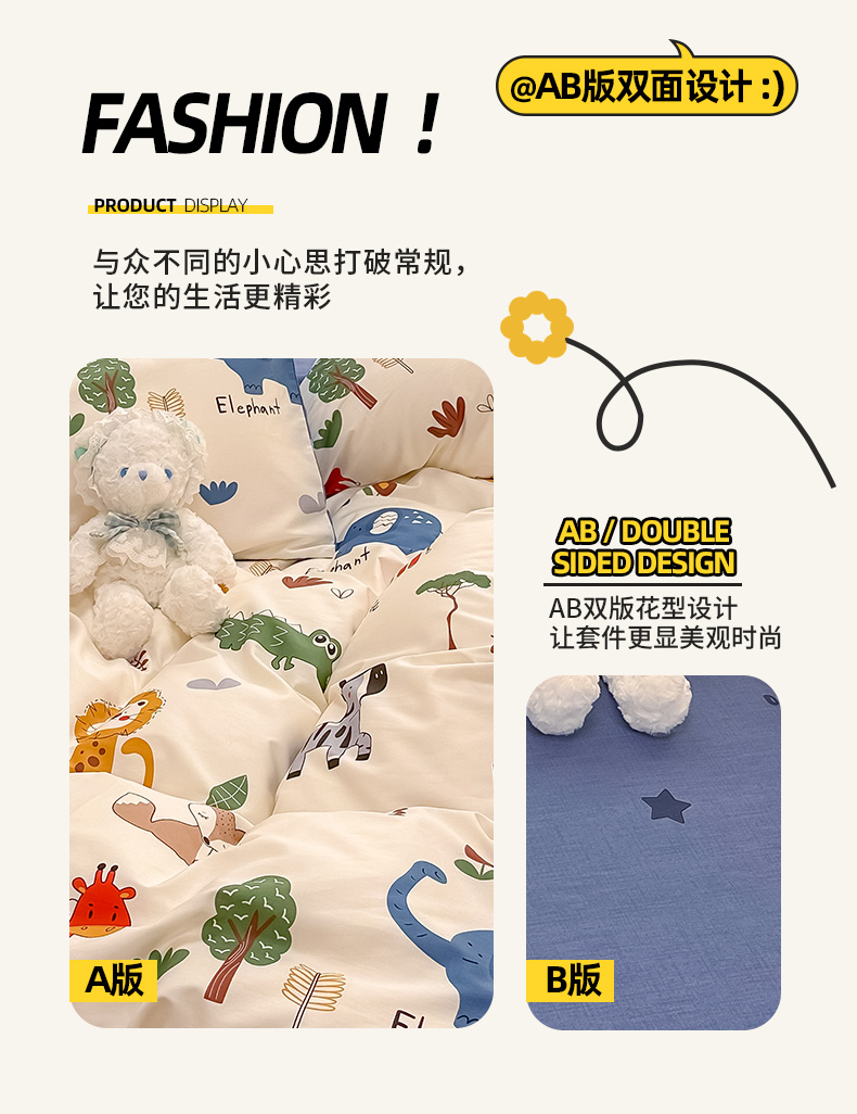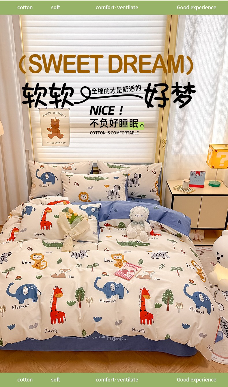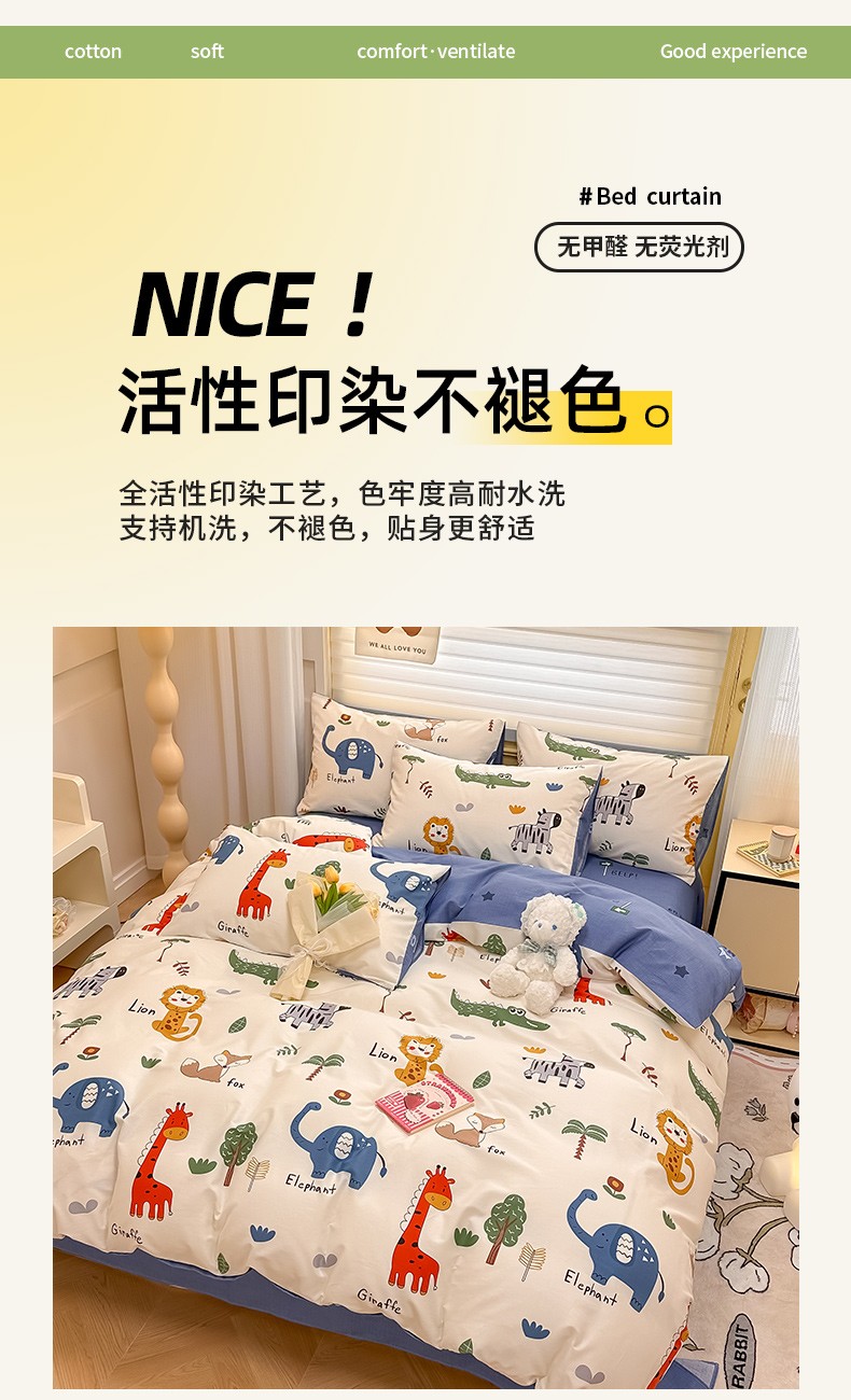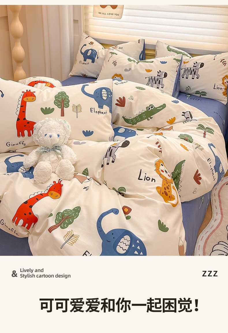 当前位置: 91家纺网 > 商品网购 > 床品套件 > 四件套 > 全棉普通四件套 > 晨希 2024春夏新款全棉13372印花四件套—卡通系列 动物世界