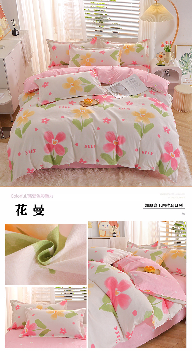 北部居 2024新款加厚化纤四件套 花曼