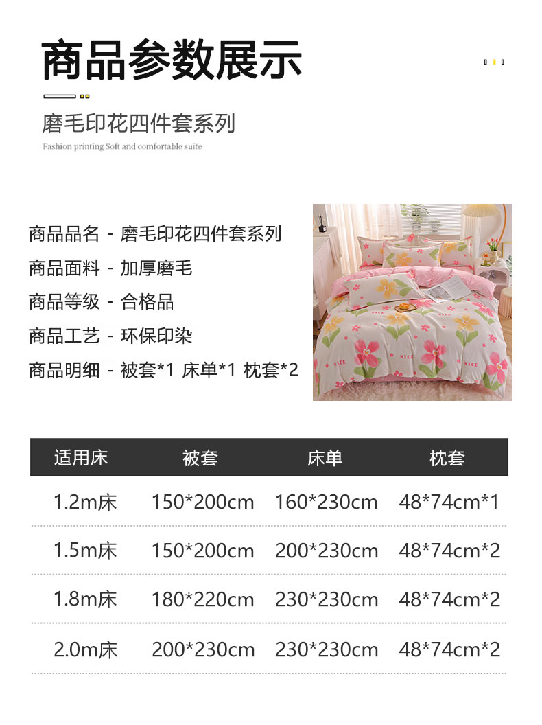 商品名称:北部居 2024新款加厚化纤四件套 花曼