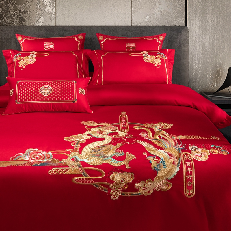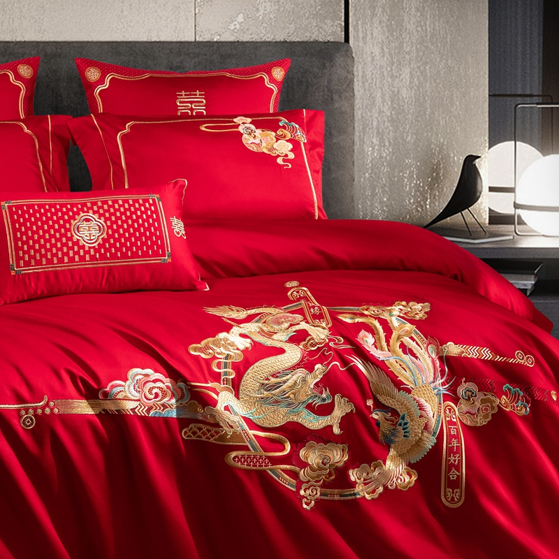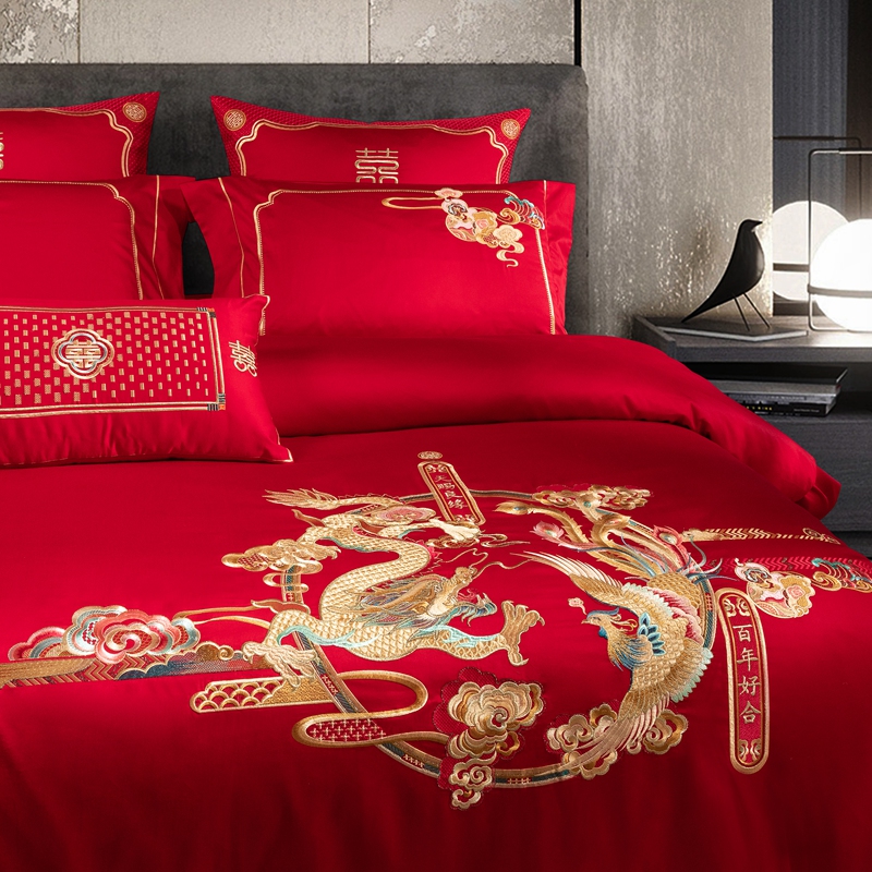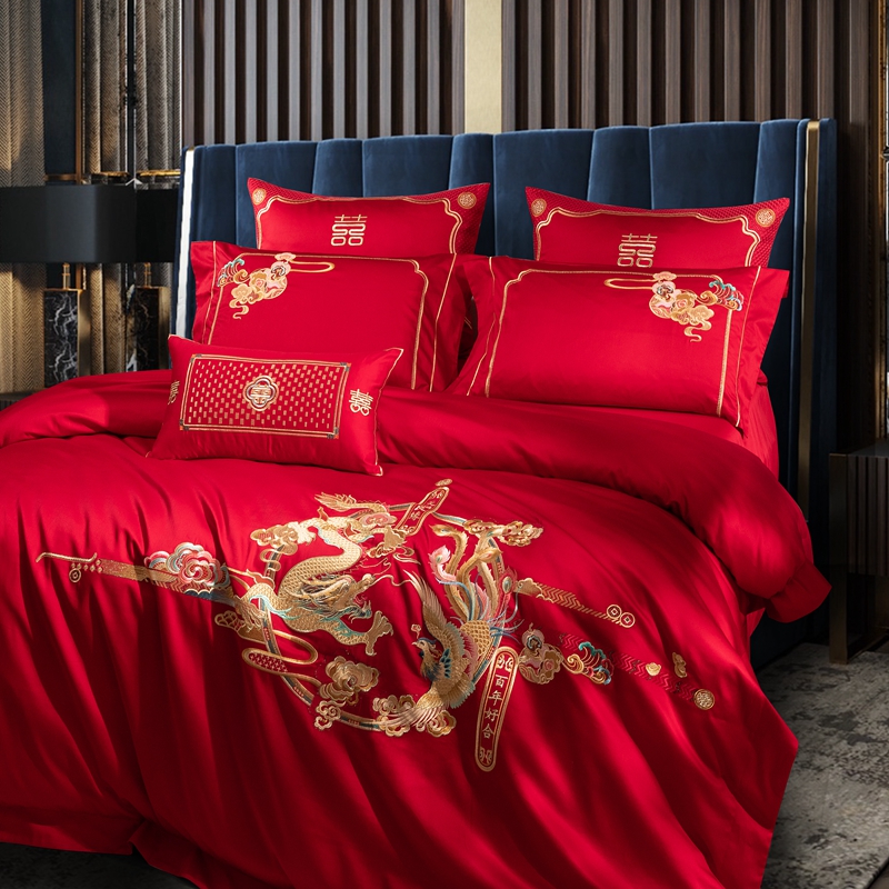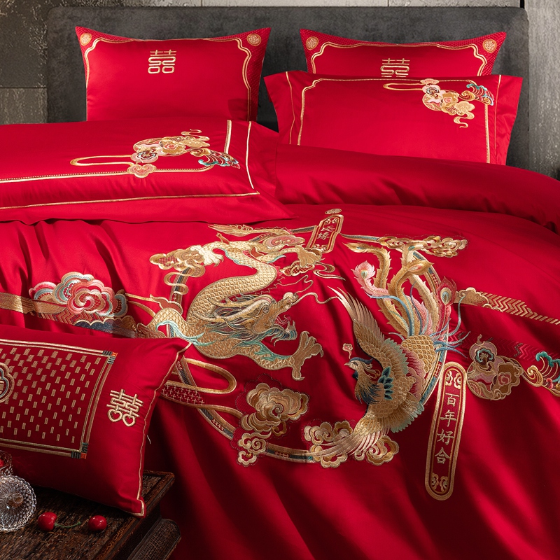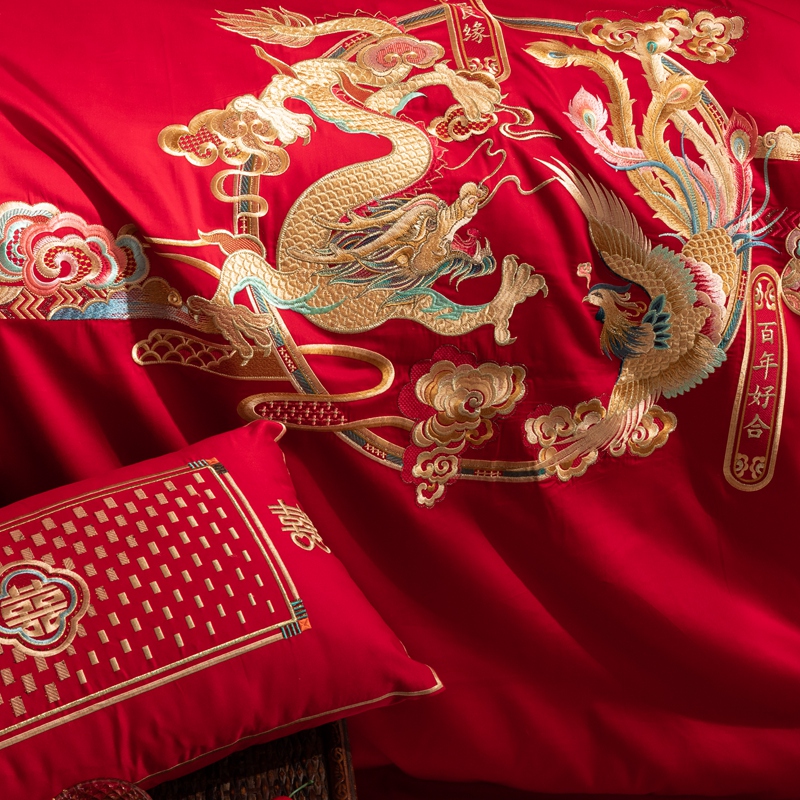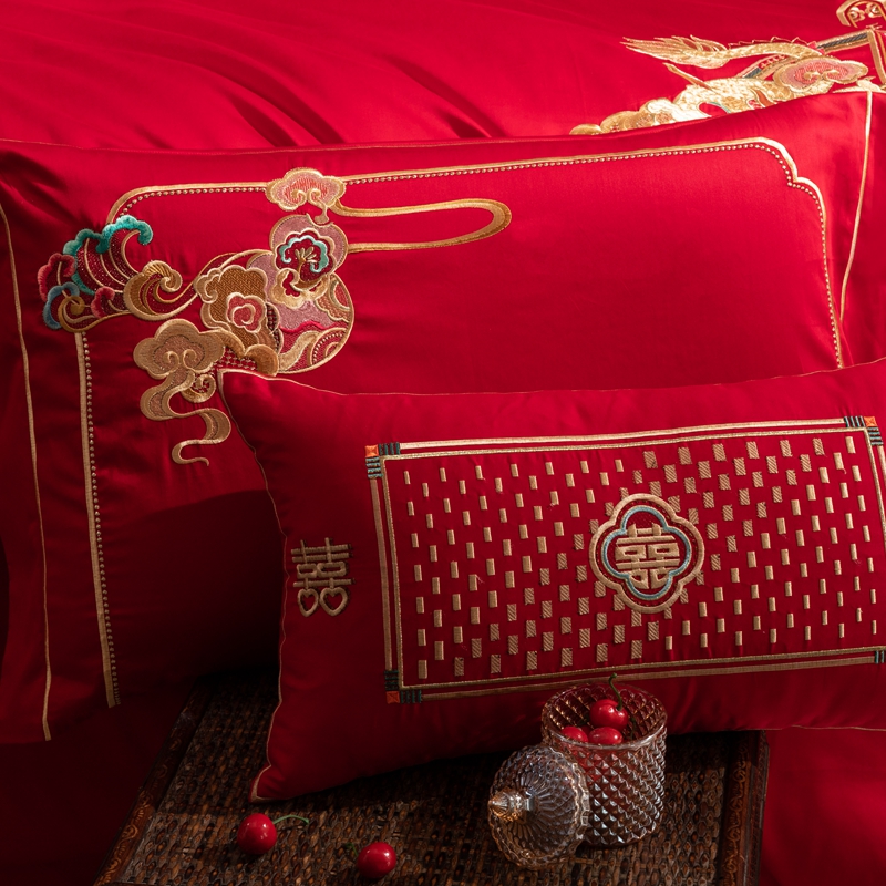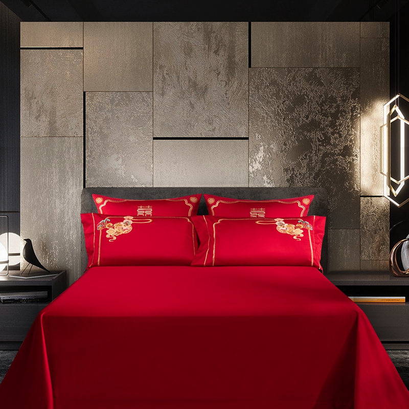 当前位置: 91家纺网 > 商品网购 > 床品套件 > 四件套 > 全棉普通四件套 > 佳汐蓝家纺 2024新款100支全棉刺绣婚庆四件套多件套挚美-和和美美