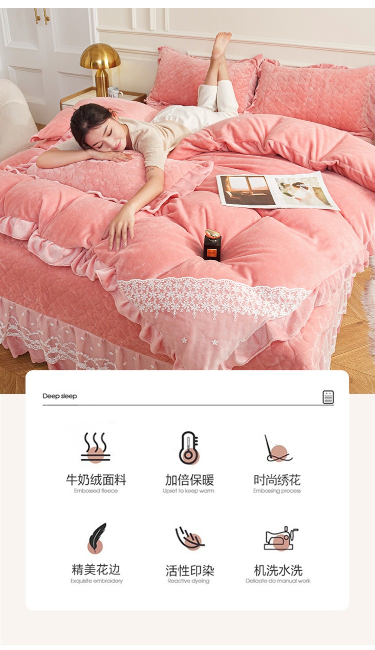 商品名称:漫布云家纺2023新款浪漫花语秋冬保暖加厚牛奶绒夹棉床盖四件套