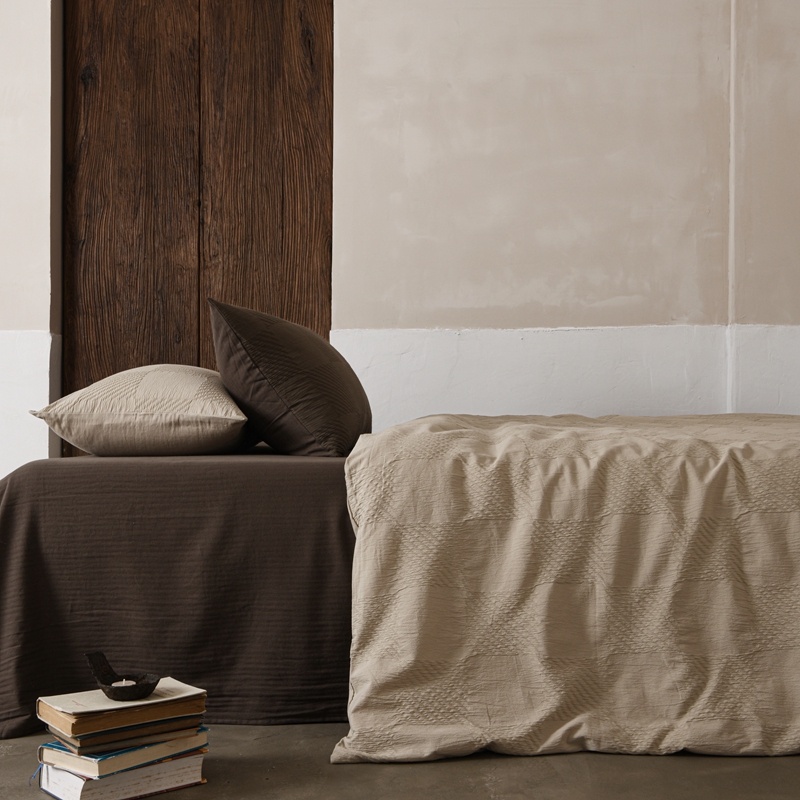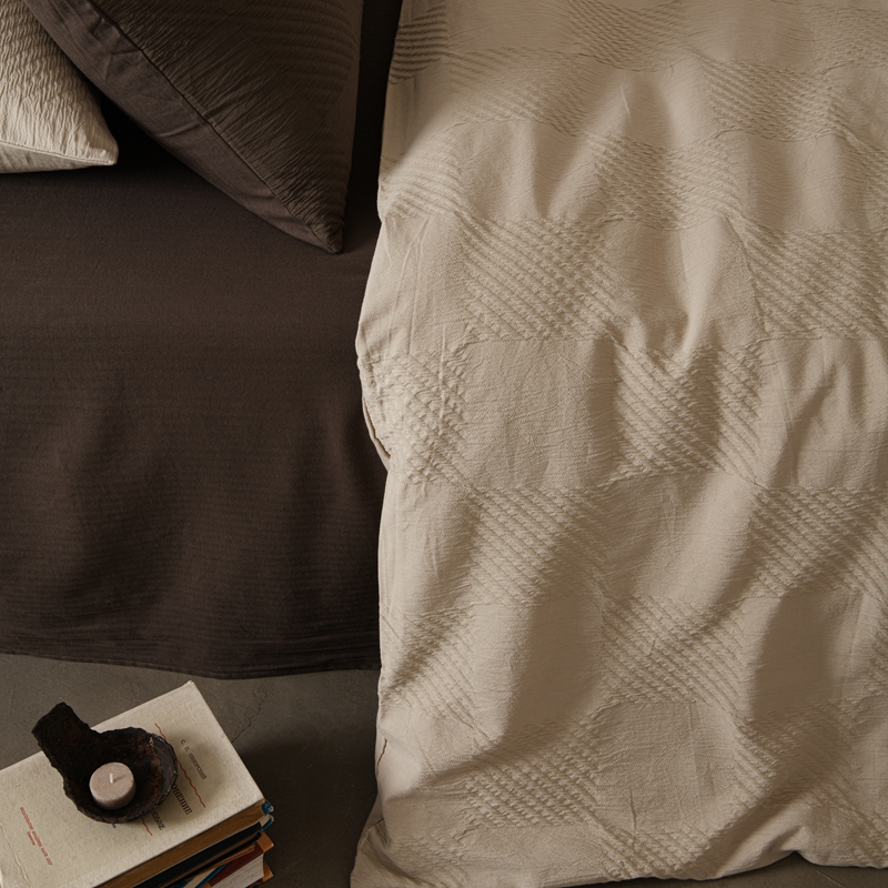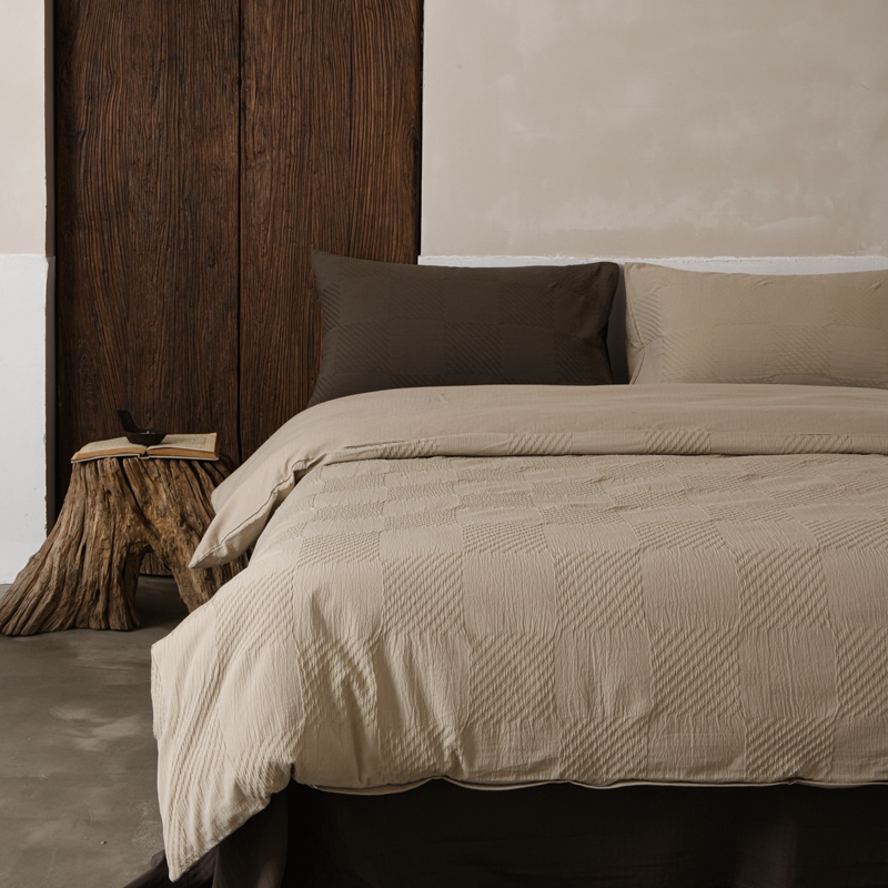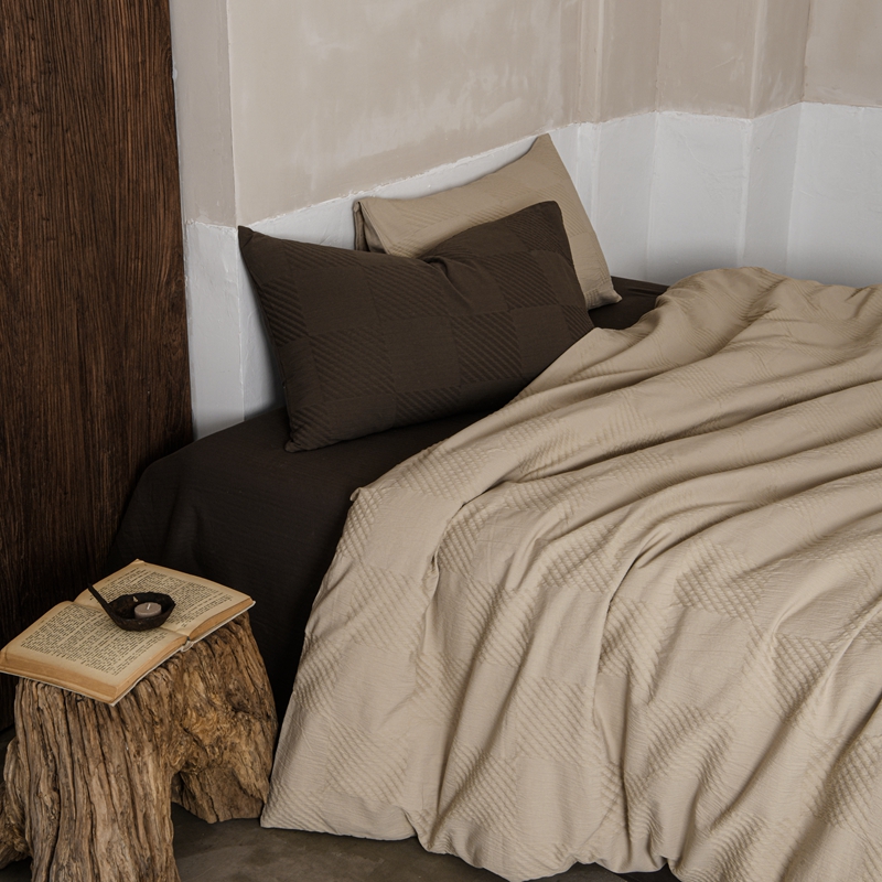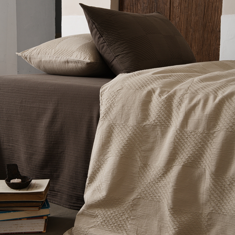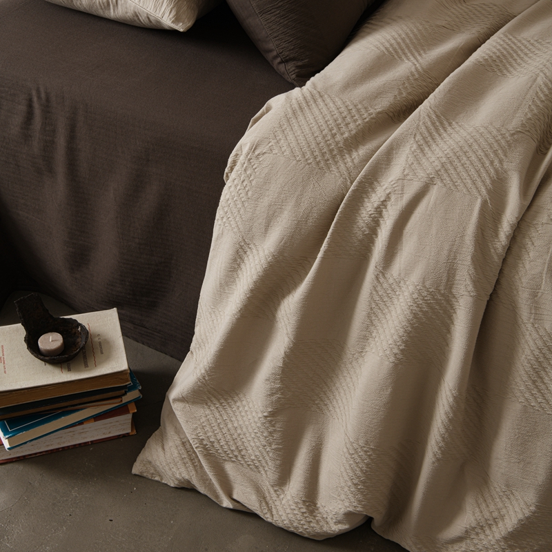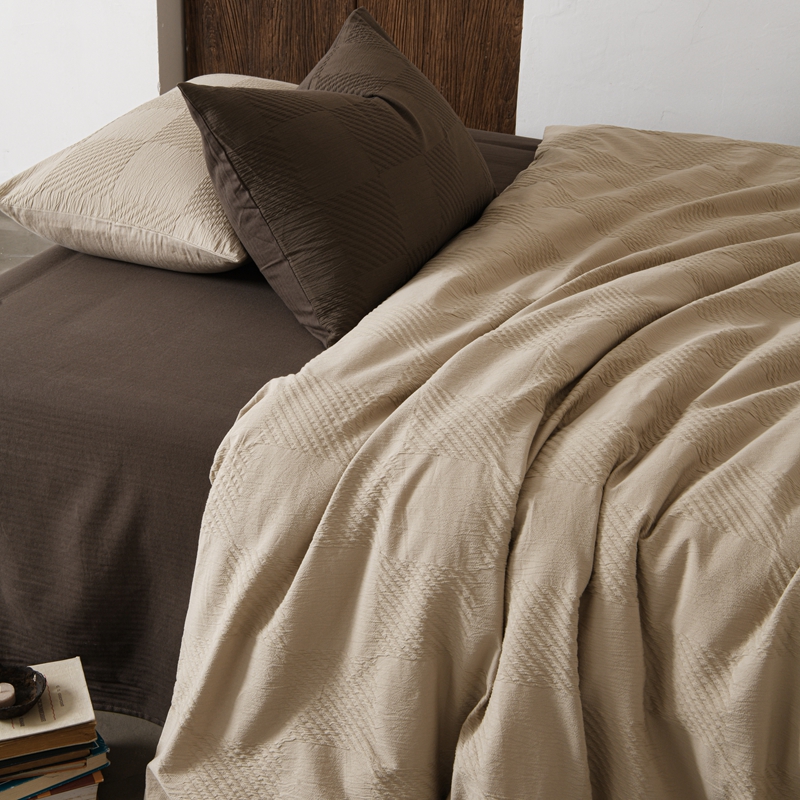 (总)简家居 2025新款亲肤舒适棉麻床盖三件套,棉麻提花