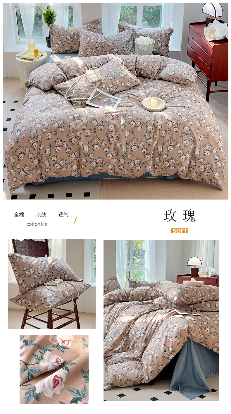 启程2024新款全棉13372印花四件套直播爆款法式复古碎花系列 玫瑰