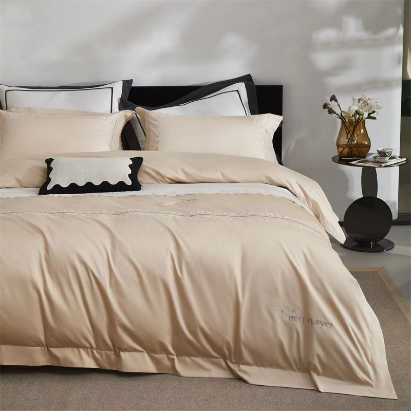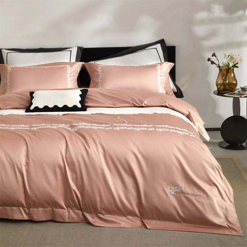 (总)玖玖爱家纺 2023新款120支贡缎长绒棉刺绣梦柔系列四件套,梦柔-香槟金,梦柔-香橙桔,梦柔-高级灰,梦柔-水蓝,梦柔-芙蓉玉