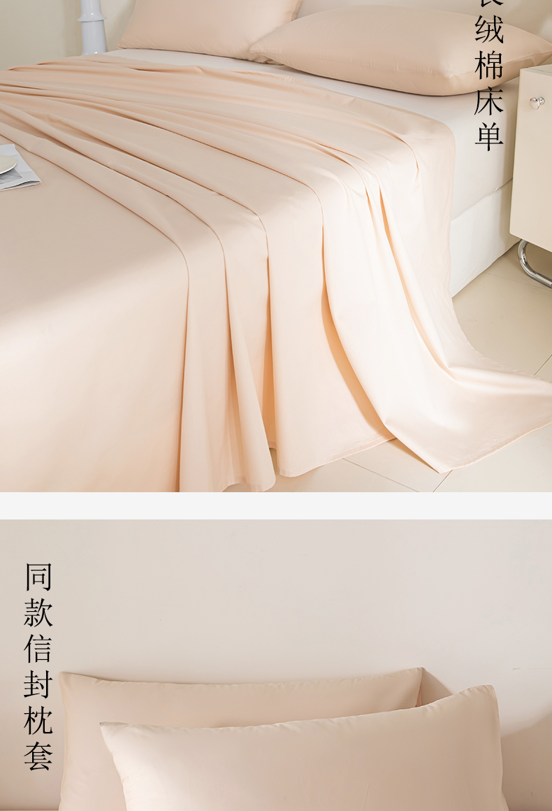 卧趣家纺 2024新品A类全棉长绒棉单品床单 白桃粉