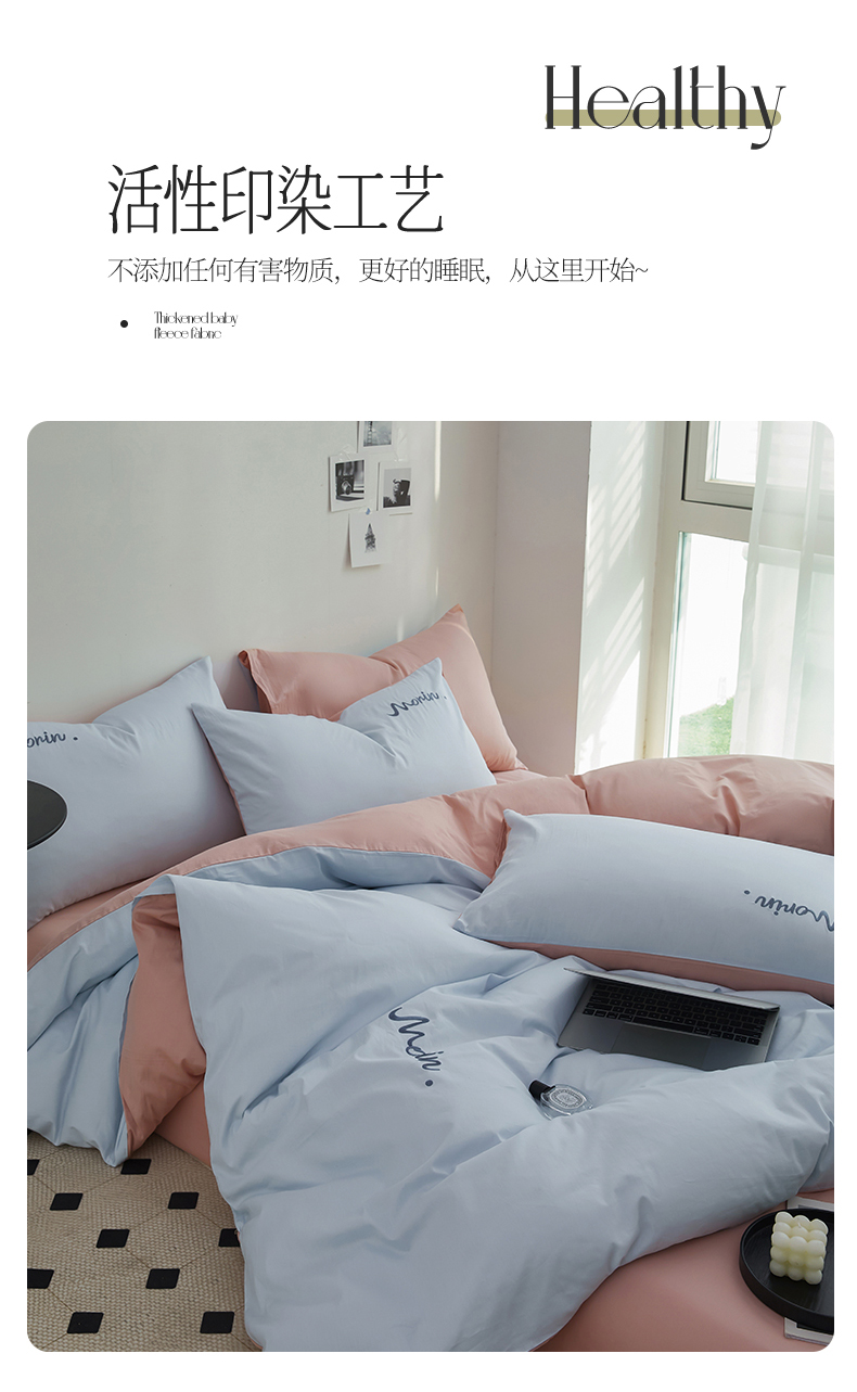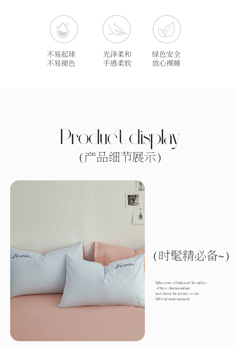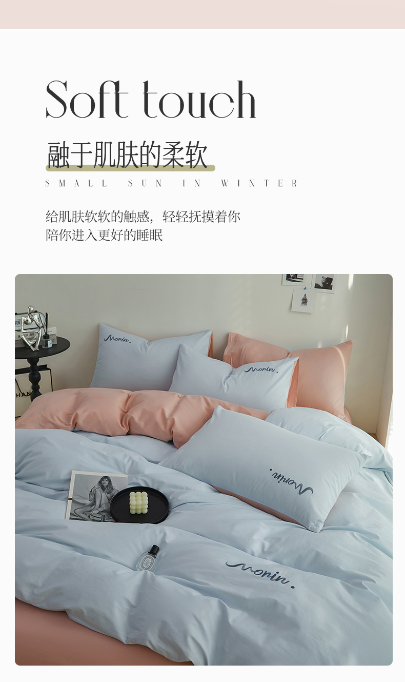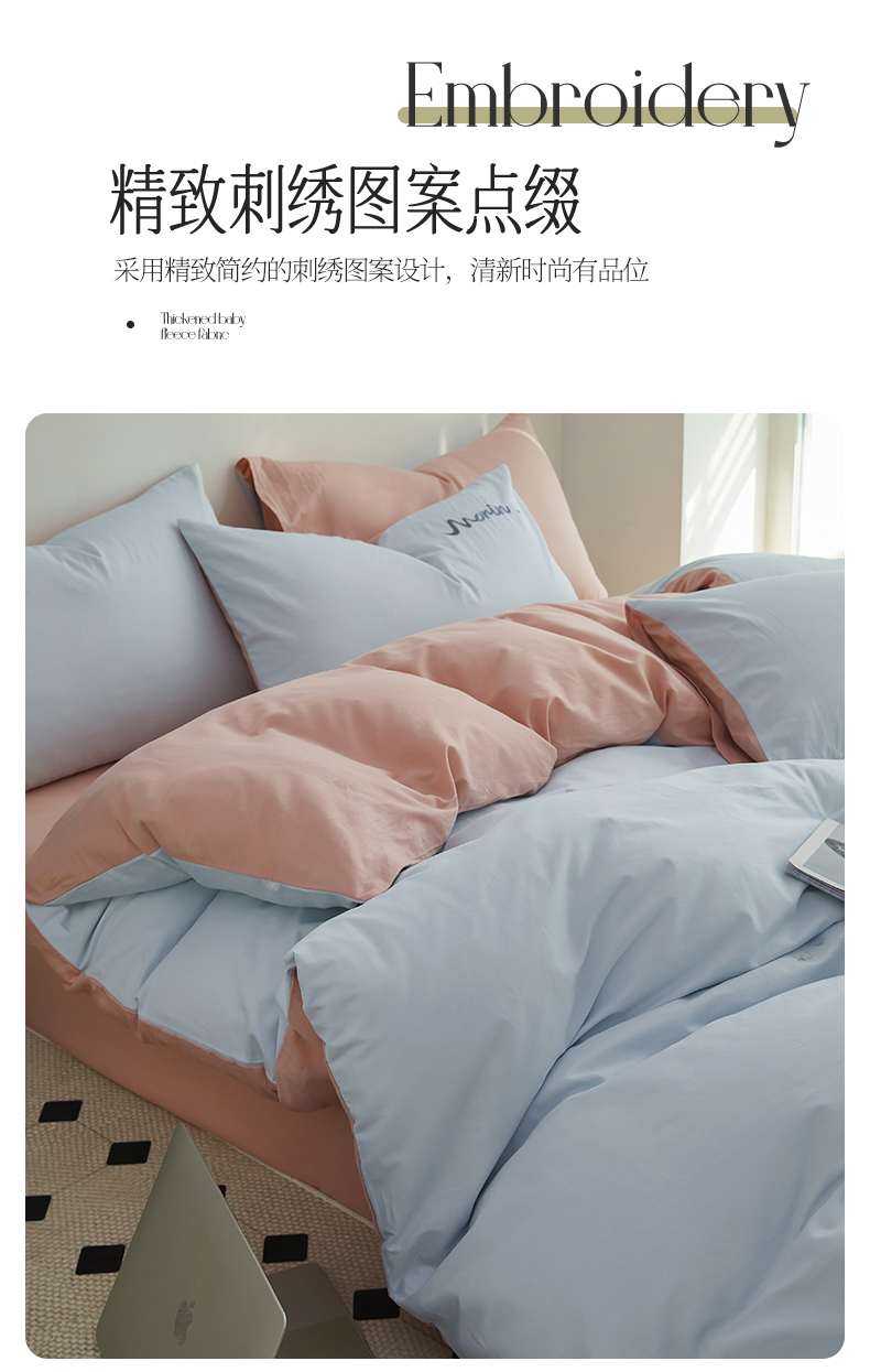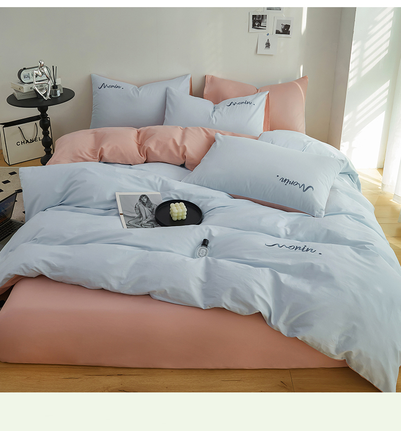 商品名称:多品家纺 2024新款全棉纯色绣花四件套 浅兰+水粉