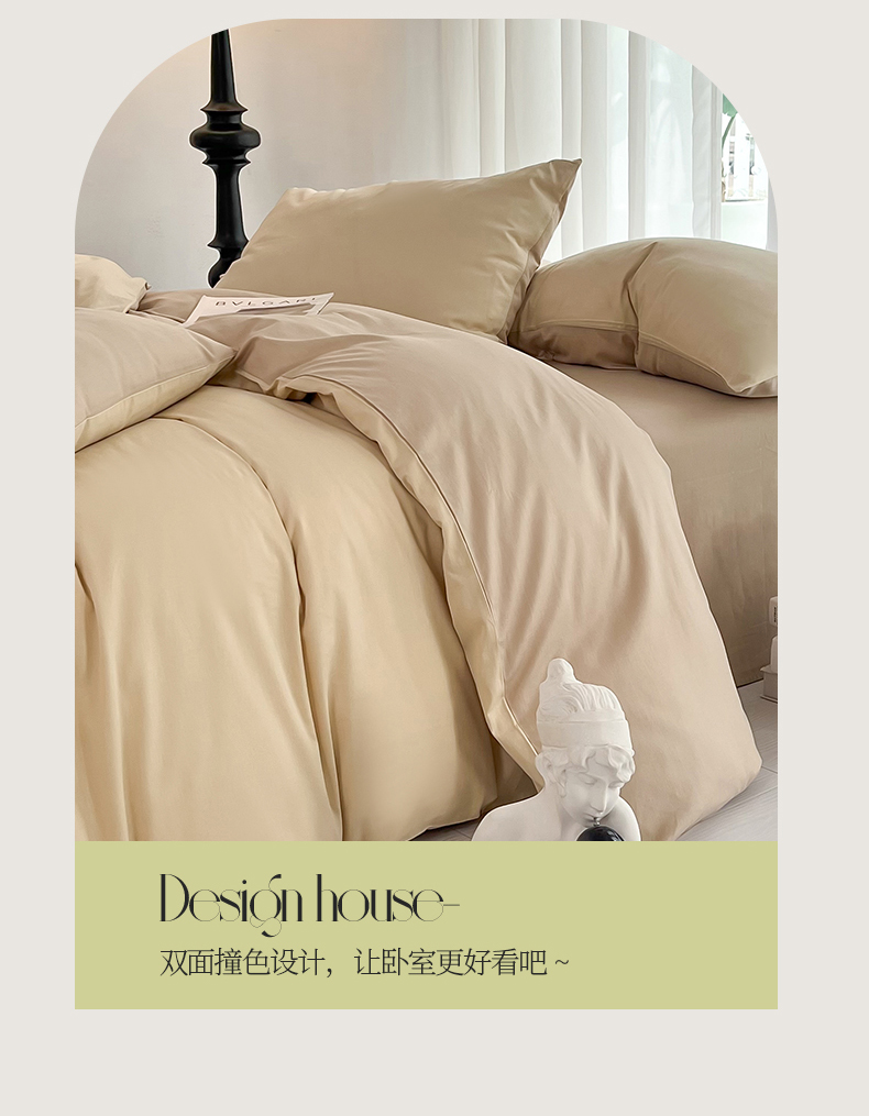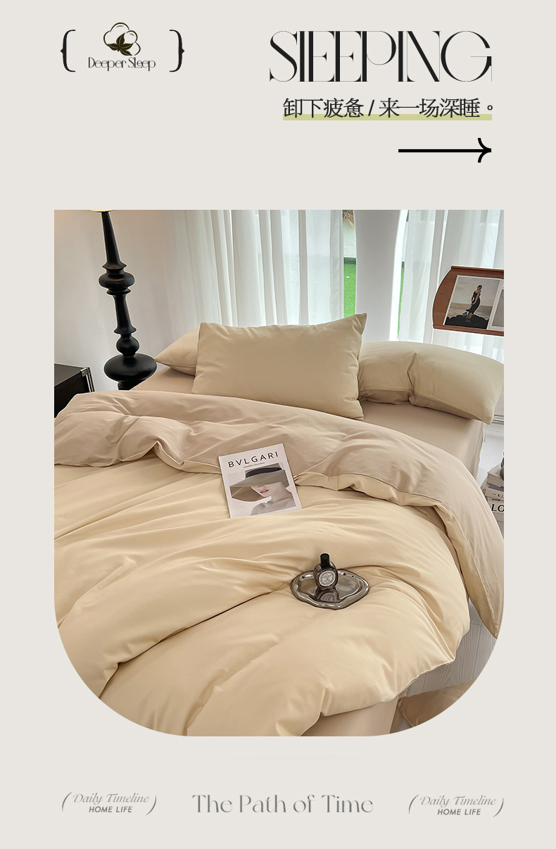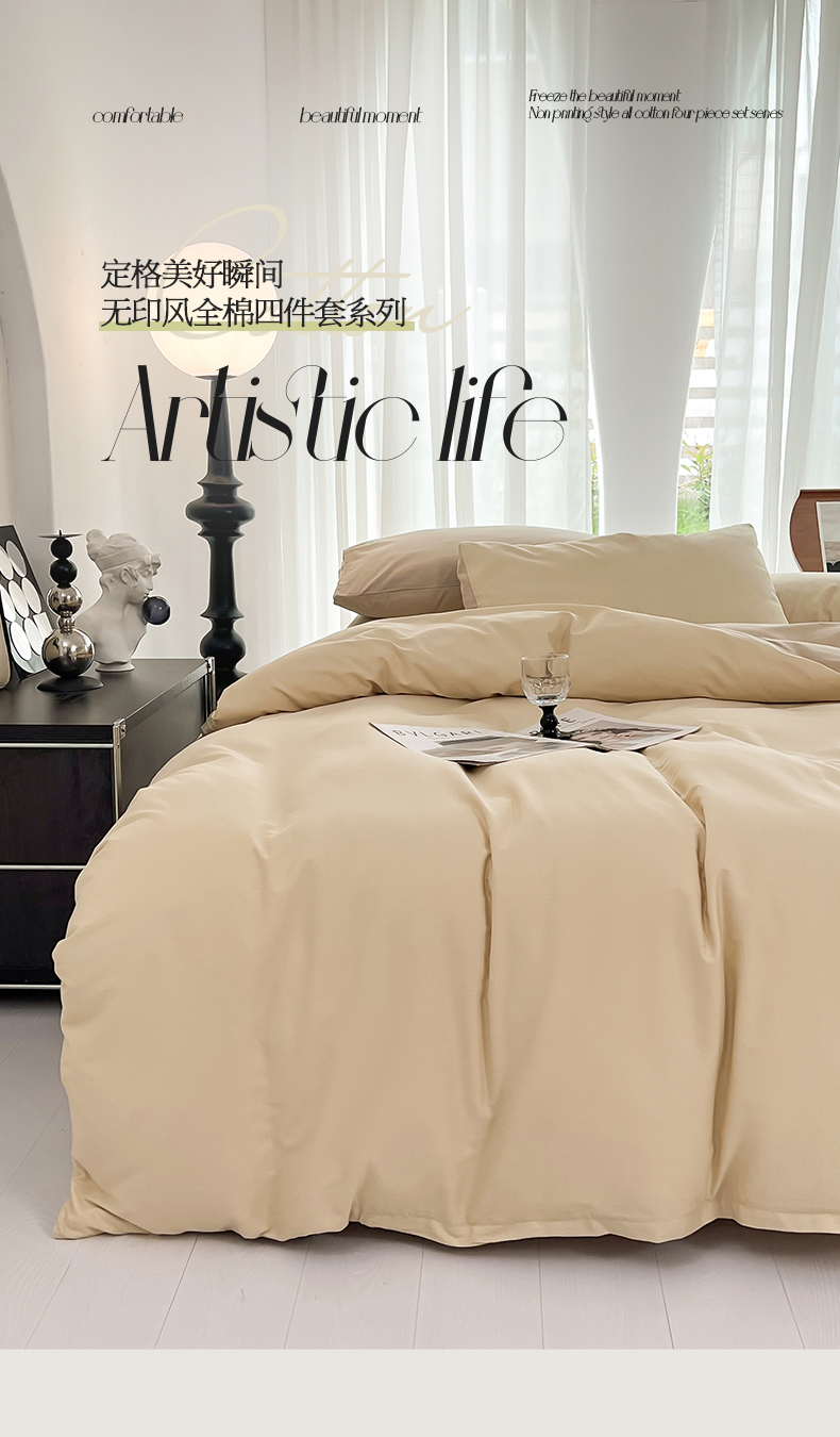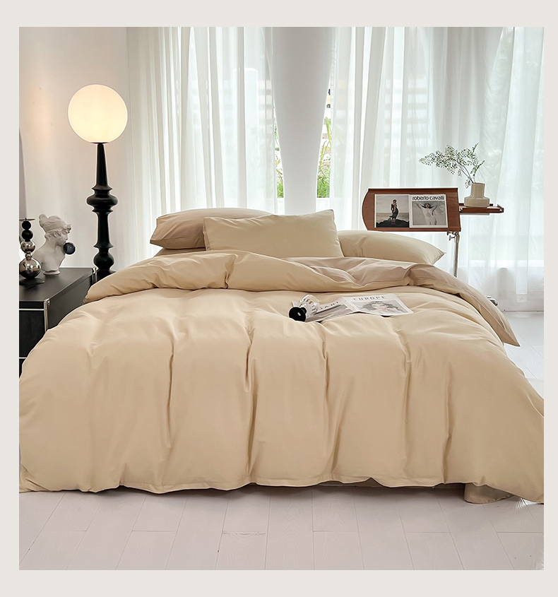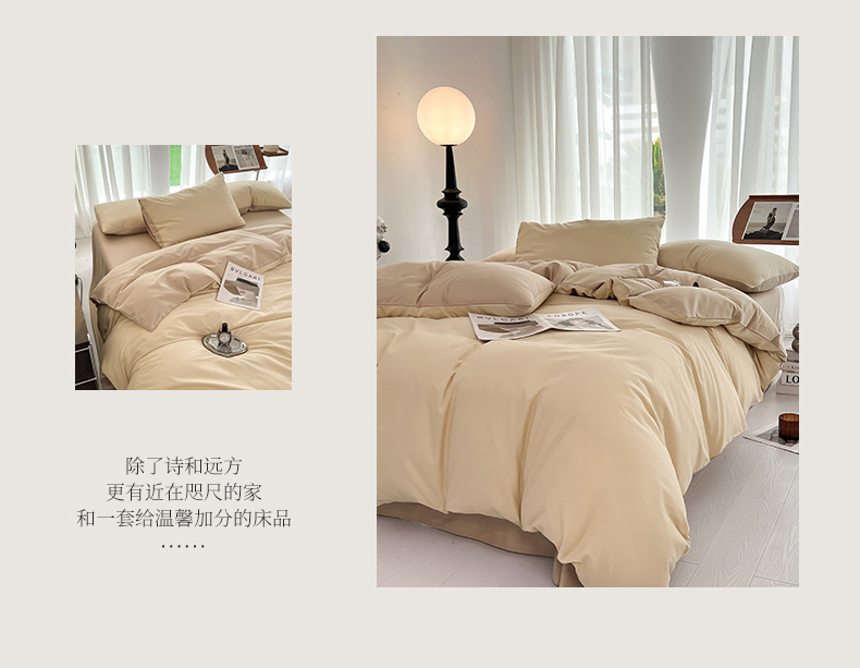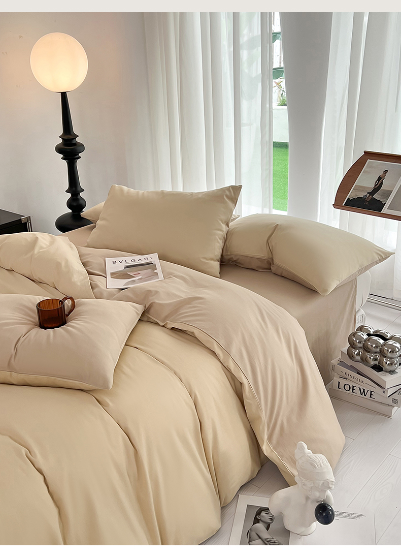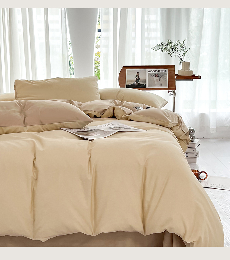 多品家纺 2024新款全棉纯色双拼四件套 香槟玉