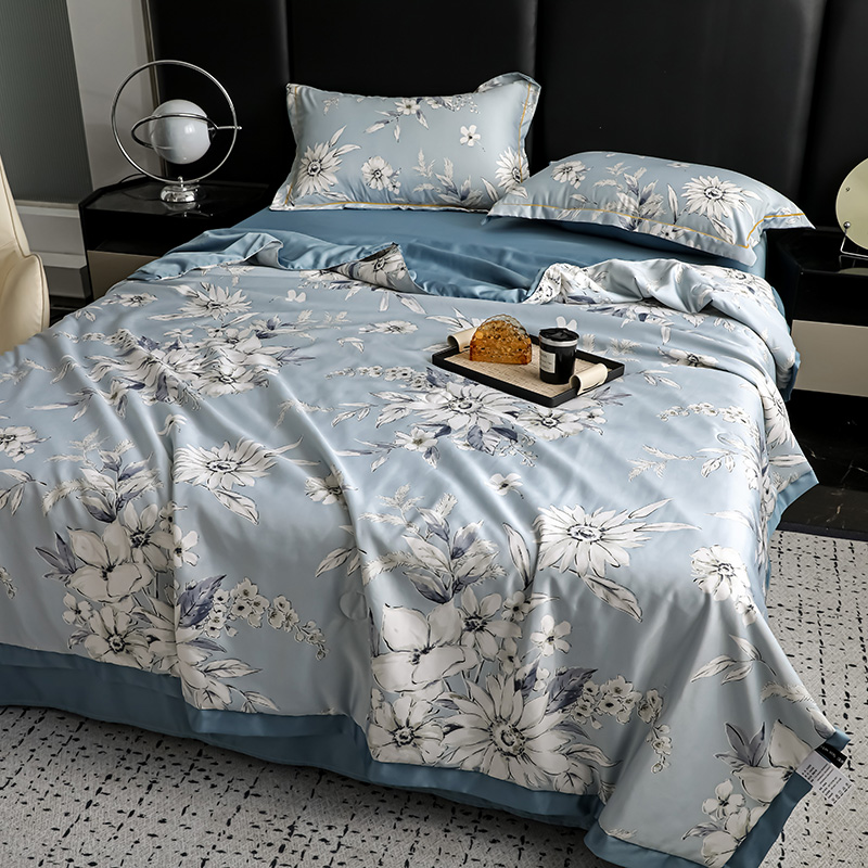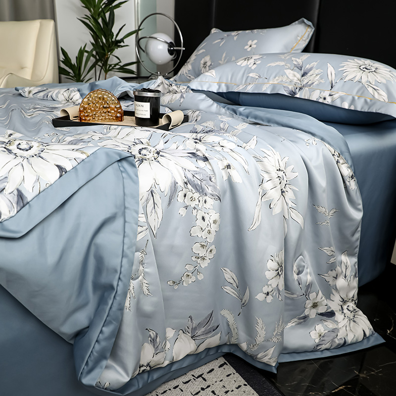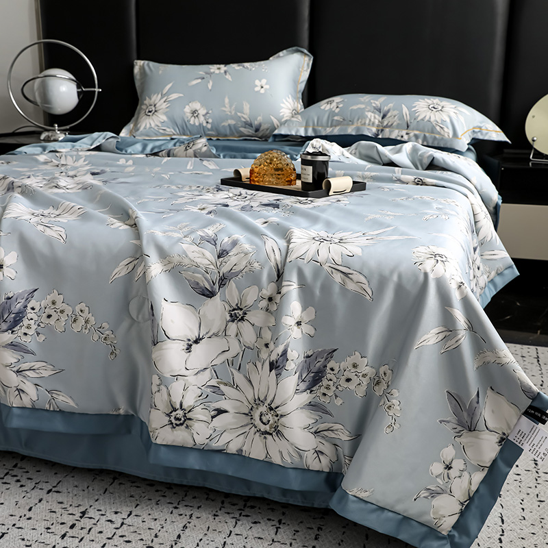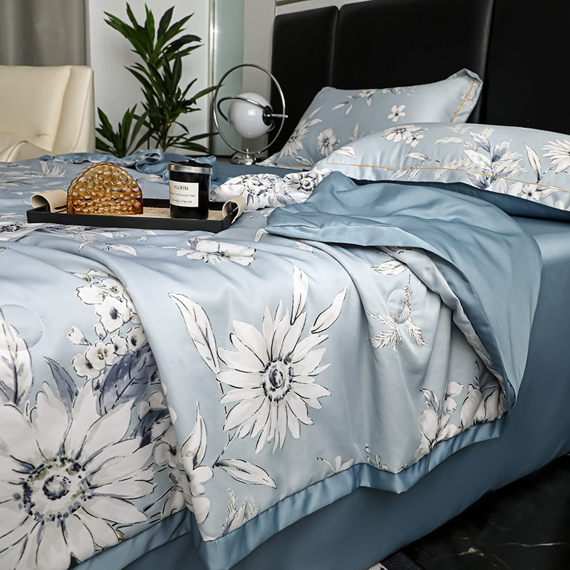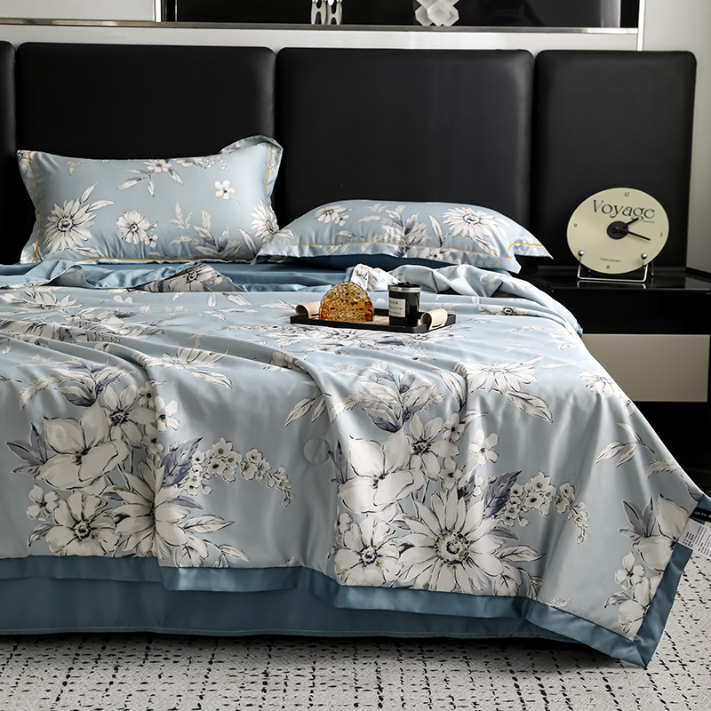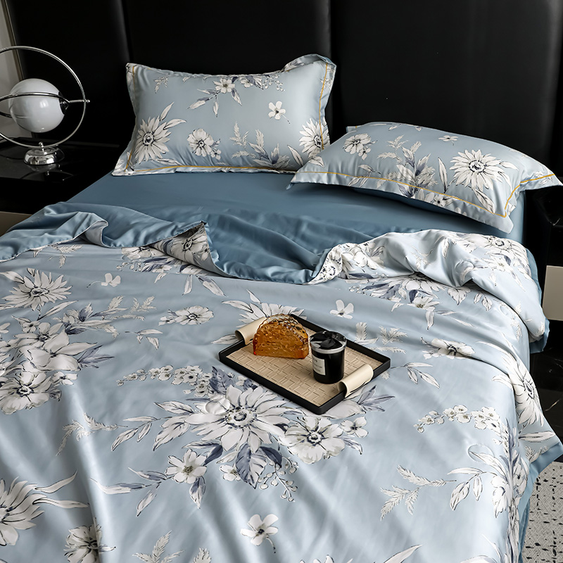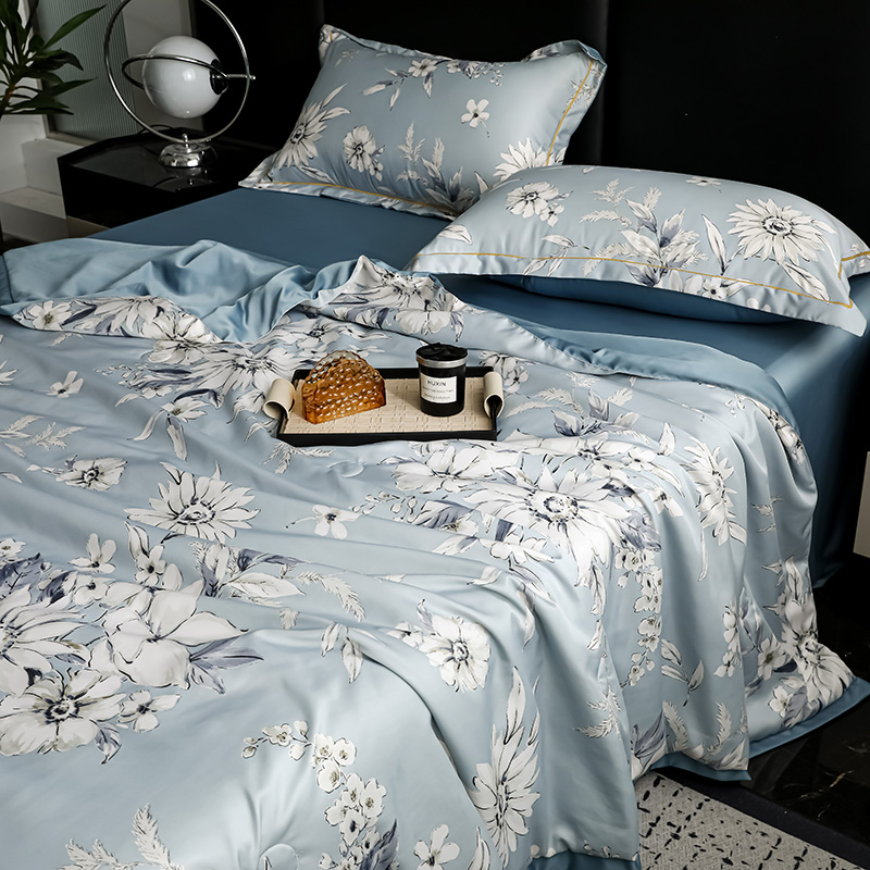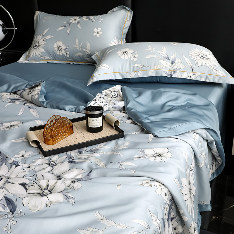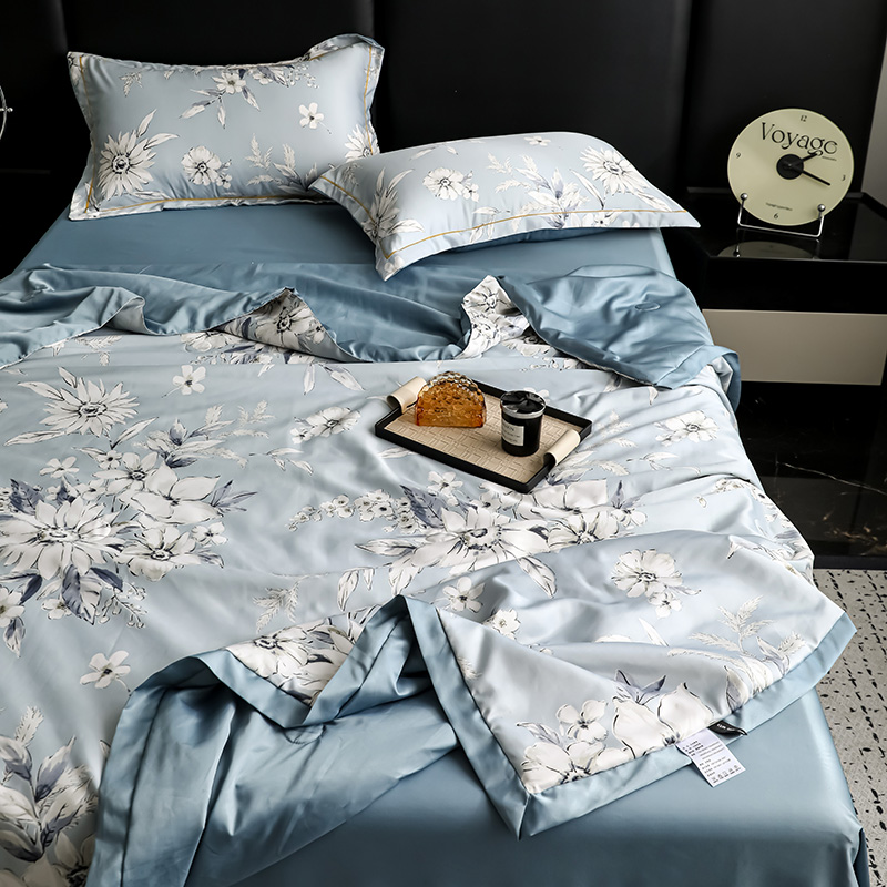 亚龙工厂店 2024新款水洗真丝夏被四件套 花悦吟蓝