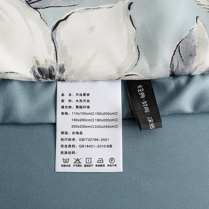 商品名称:亚龙工厂店 2024新款水洗真丝夏被四件套 花悦吟蓝