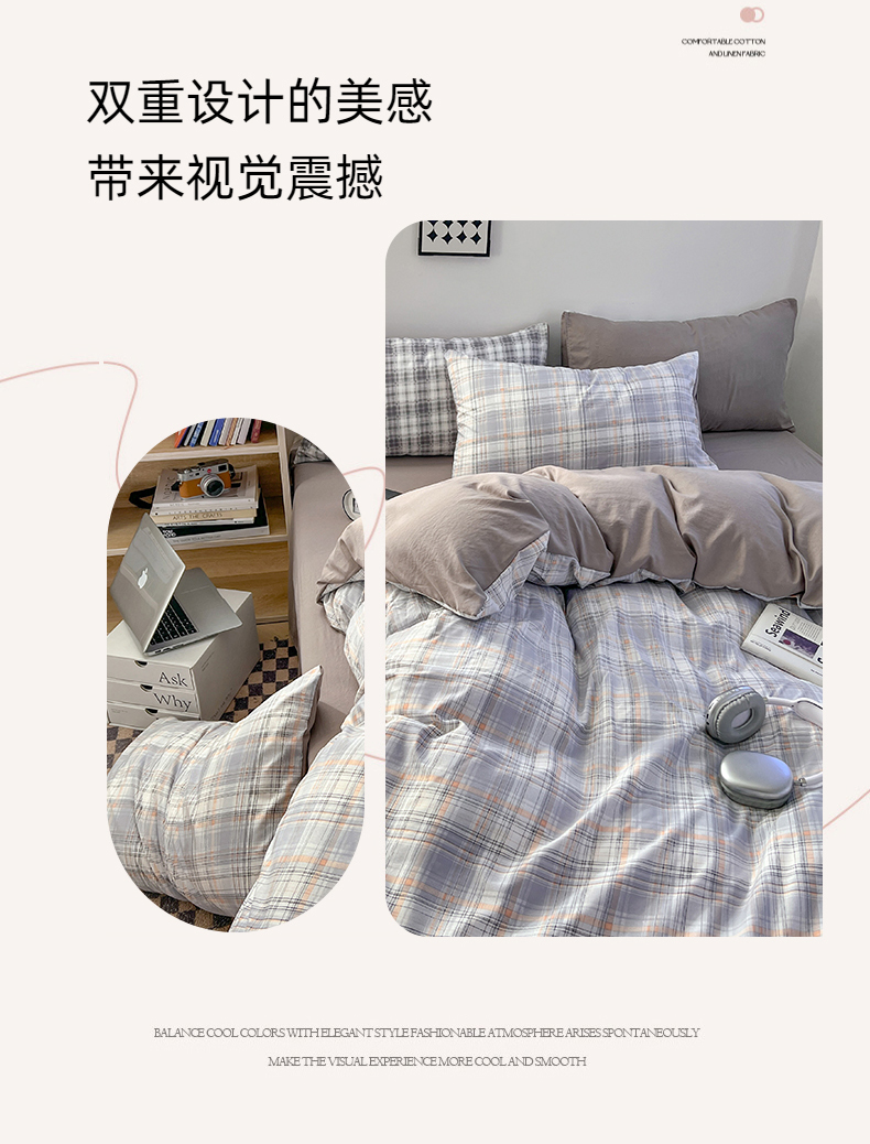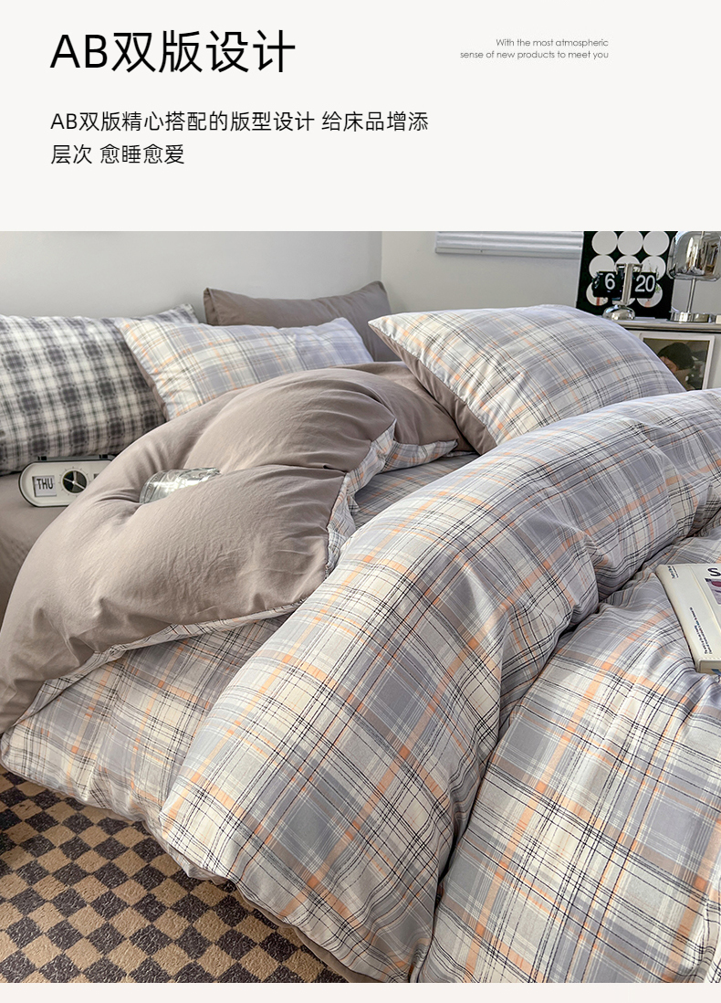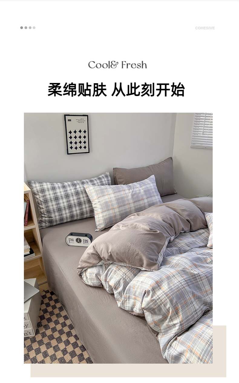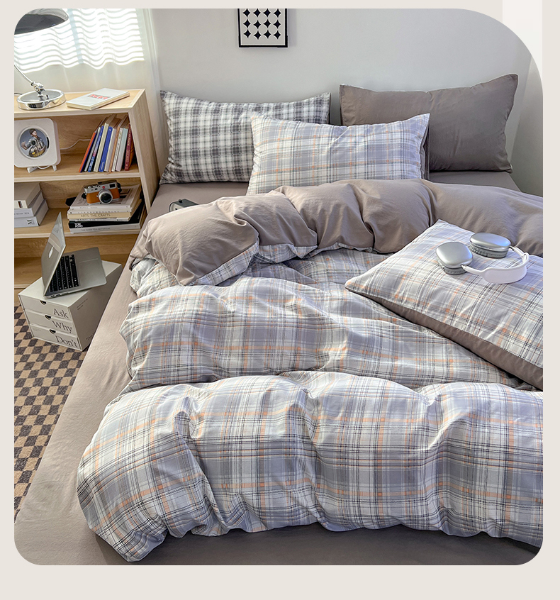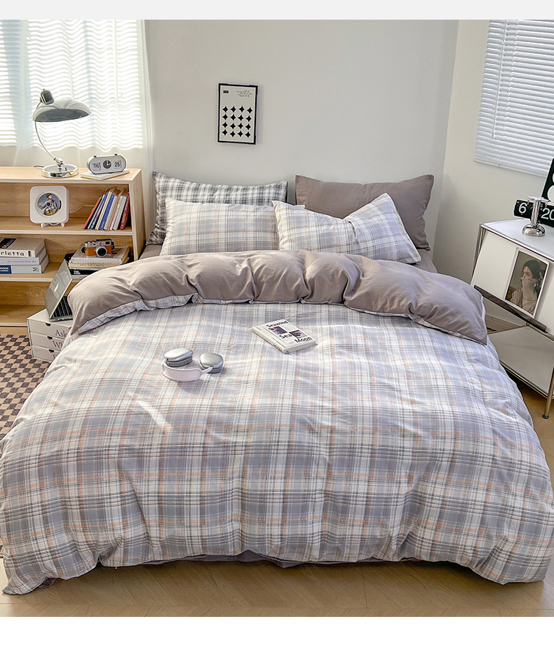 商品名称:贝拉梦家纺 2024新款日式简约格子系水洗棉床单款床笠款套件系列-单被套 乔南