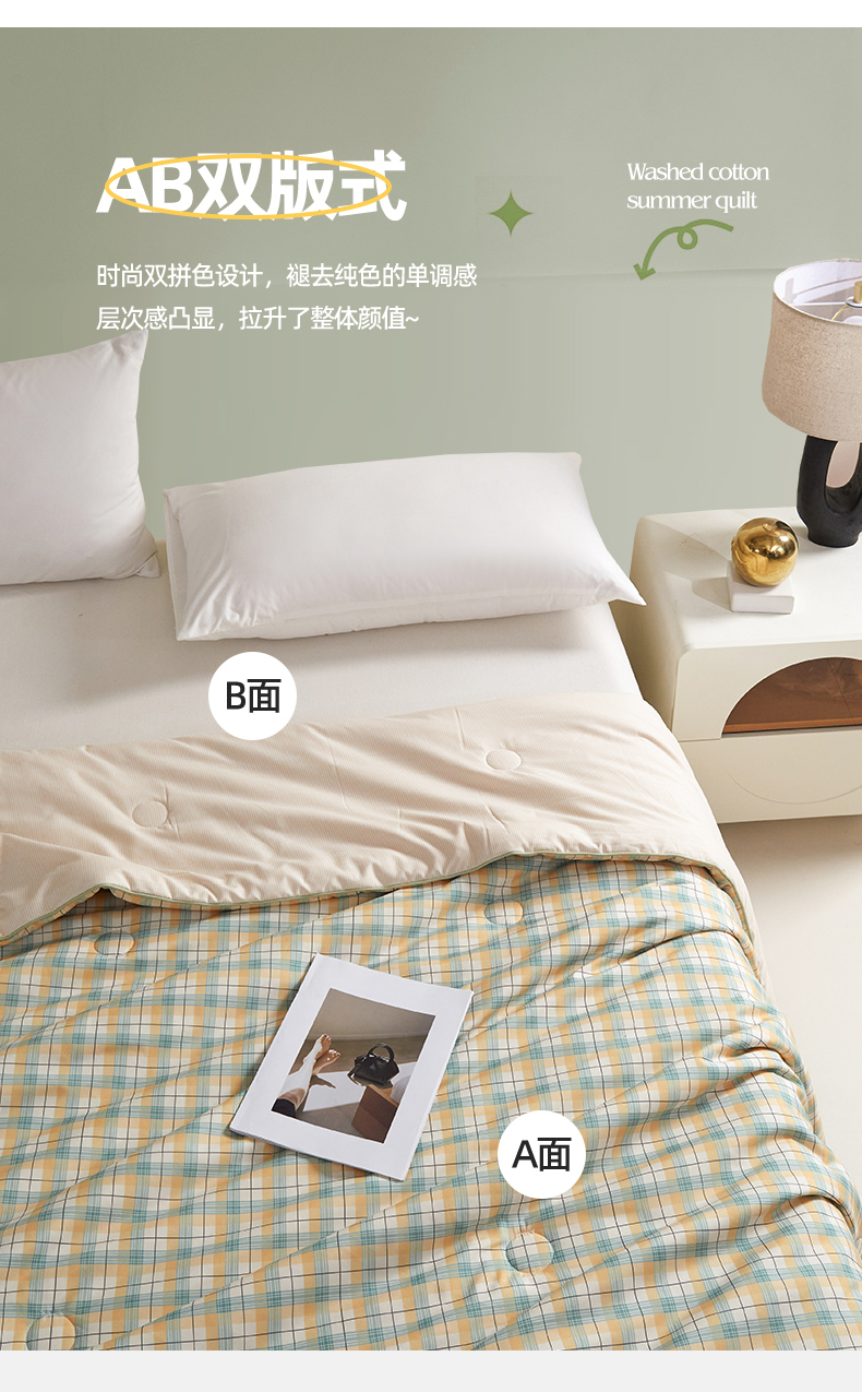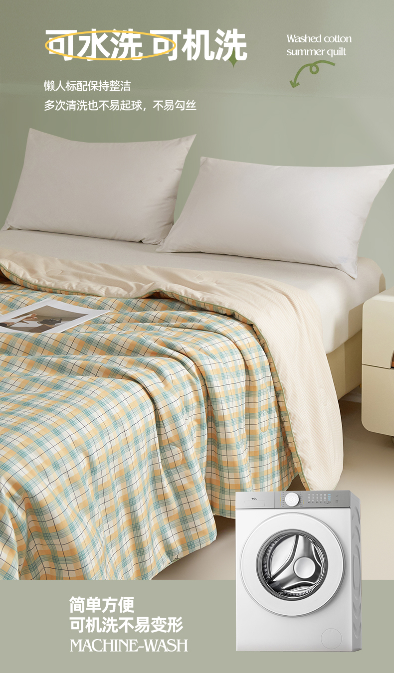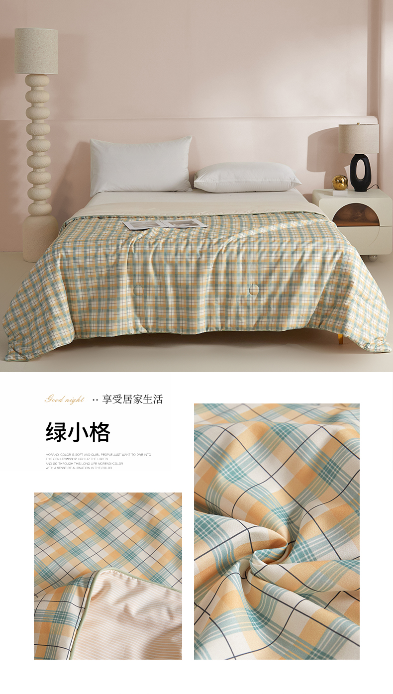 商品名称:换种生活 2024新款双拼亲肤水洗棉单夏被 绿小格