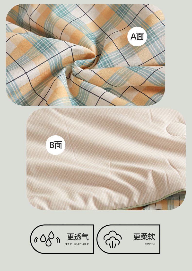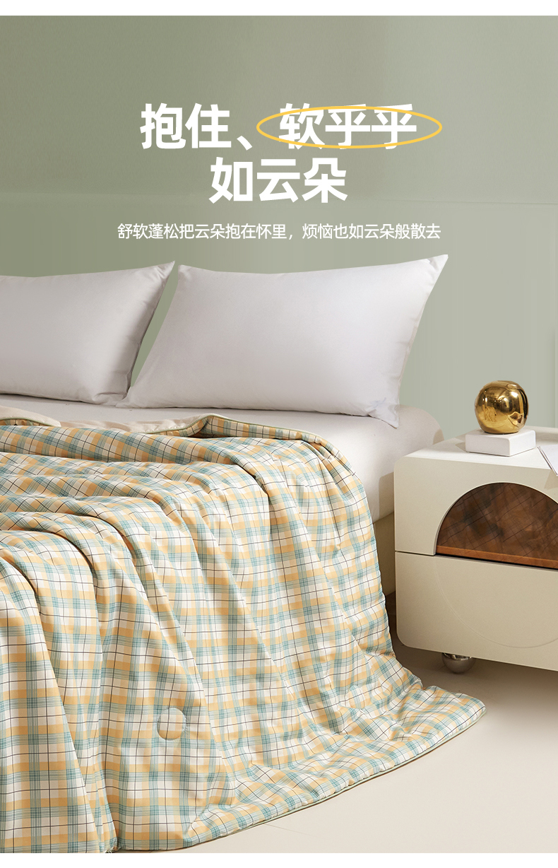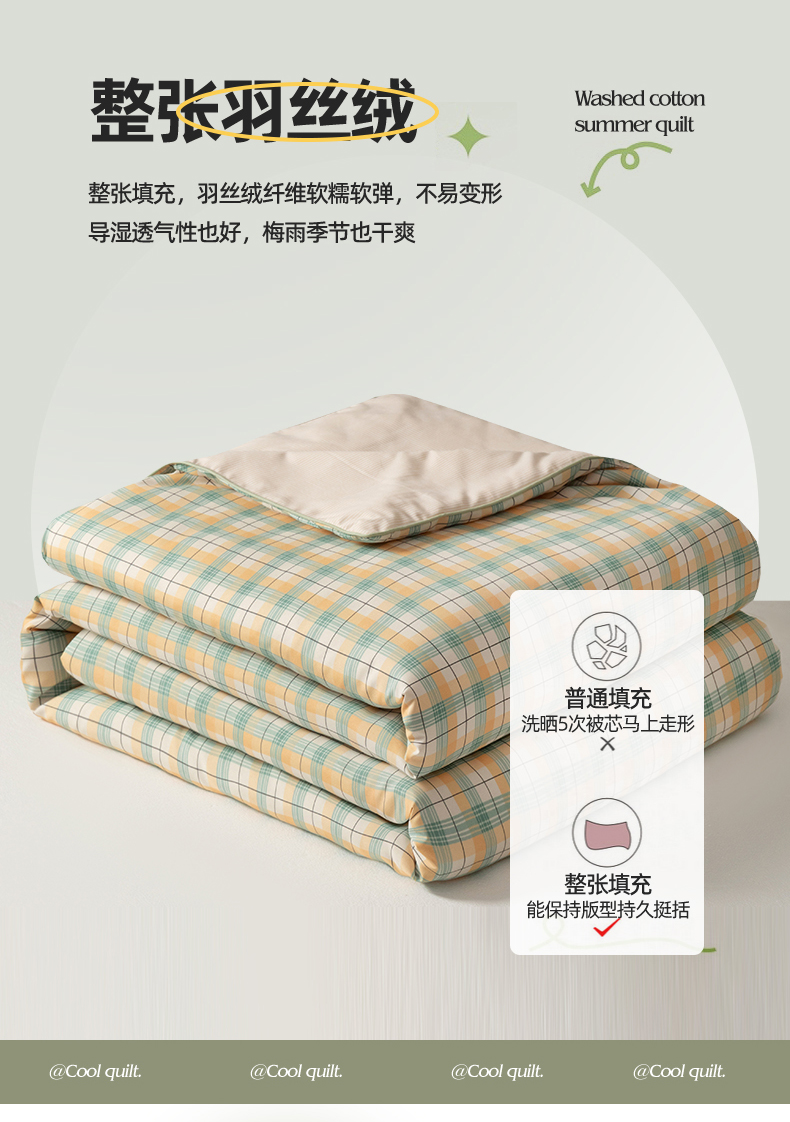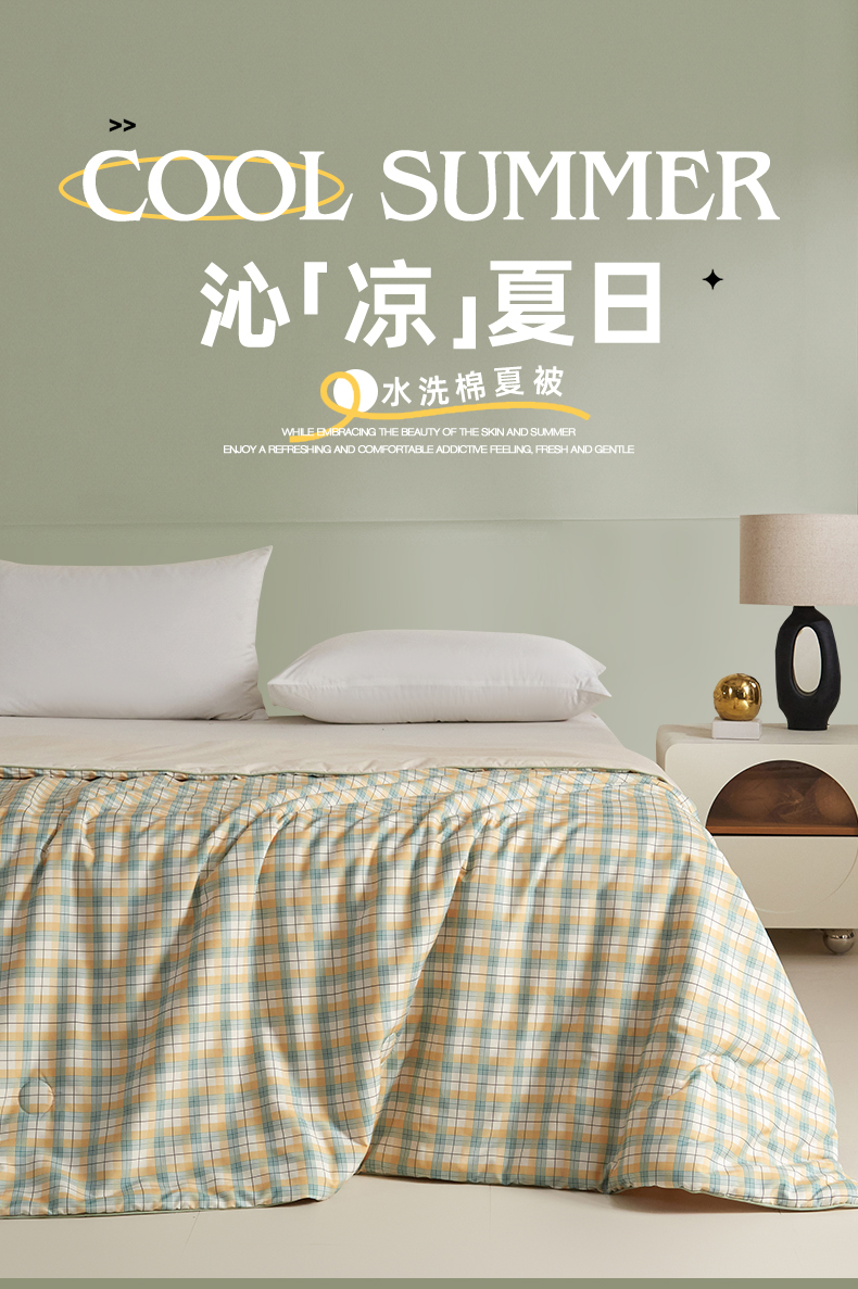 商品名称:换种生活 2024新款双拼亲肤水洗棉单夏被 绿小格