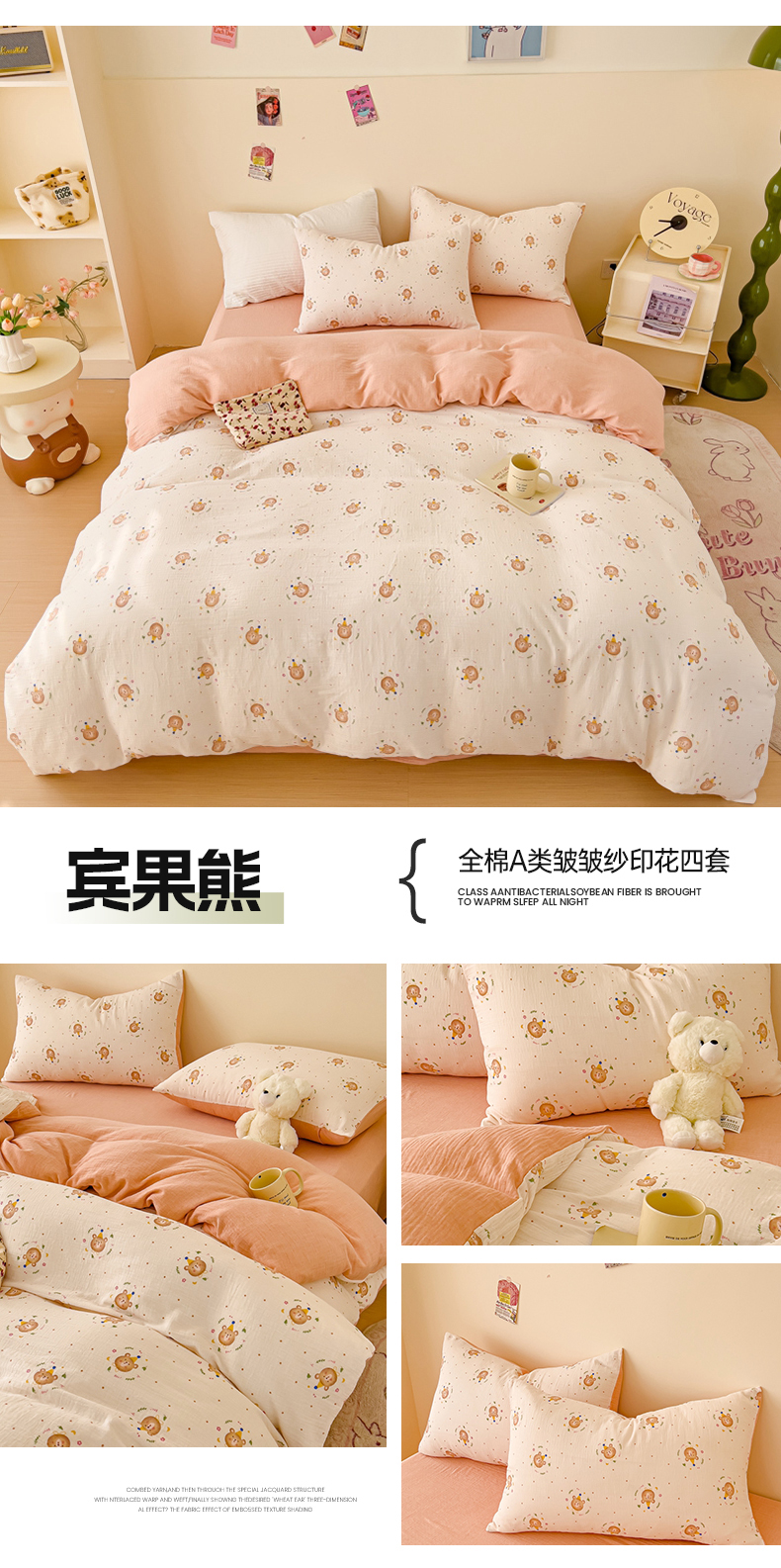 商品名称:木楌 2025新款全棉A类皱皱纱印花四件套 宾果熊
